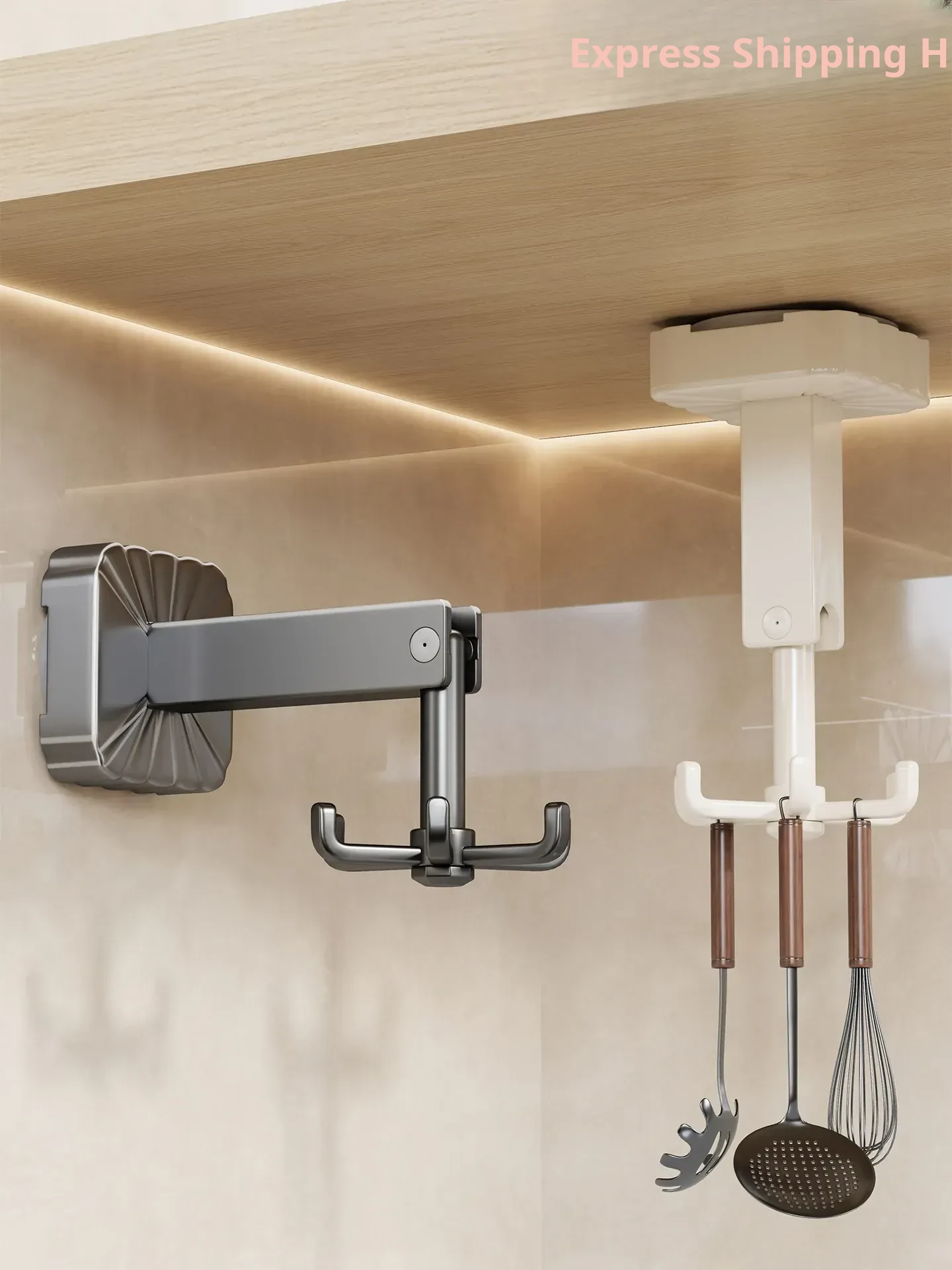 Rotating Suction Hook Wall-Mounted Kitchen Storage Rack - No Drill Organizer for Ladles and Spatulas, Ideal for Space-Saving and Easy Access!