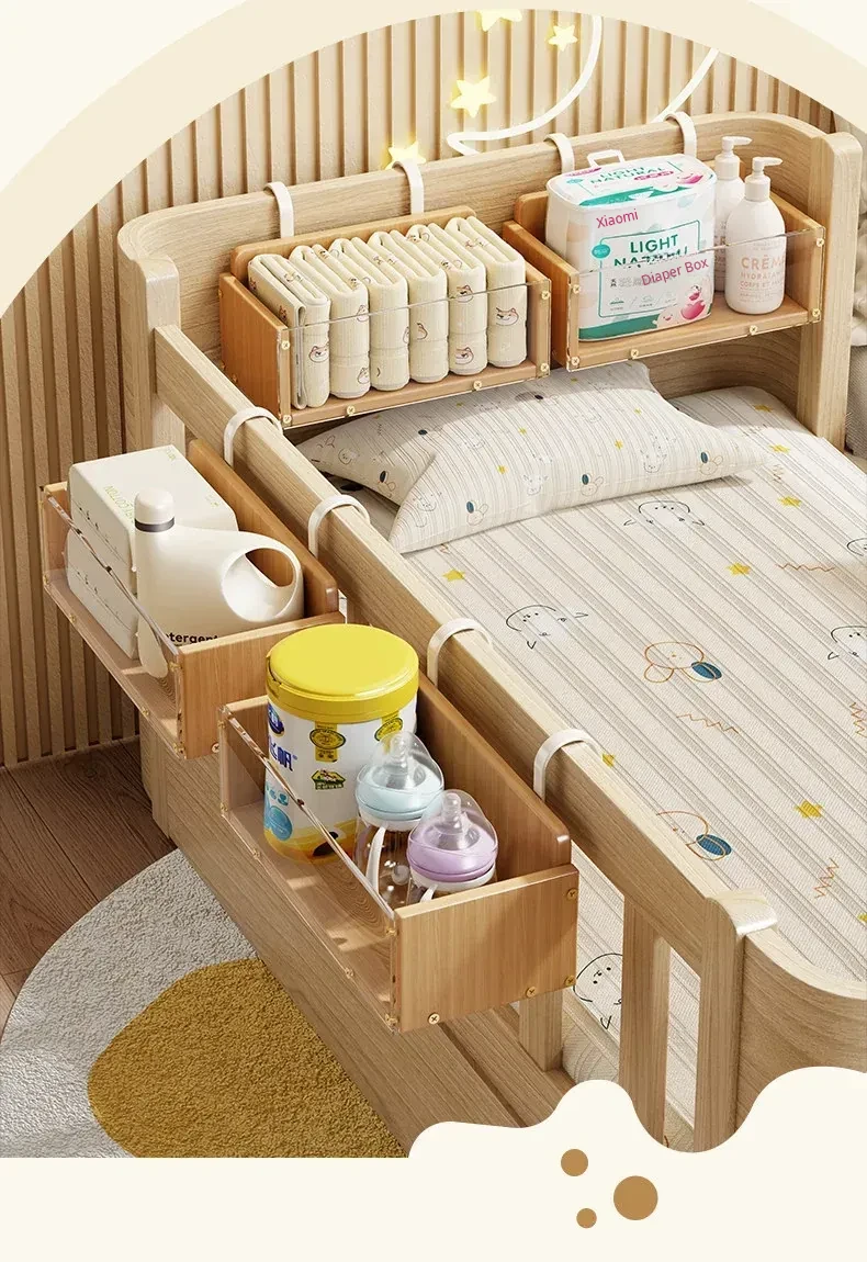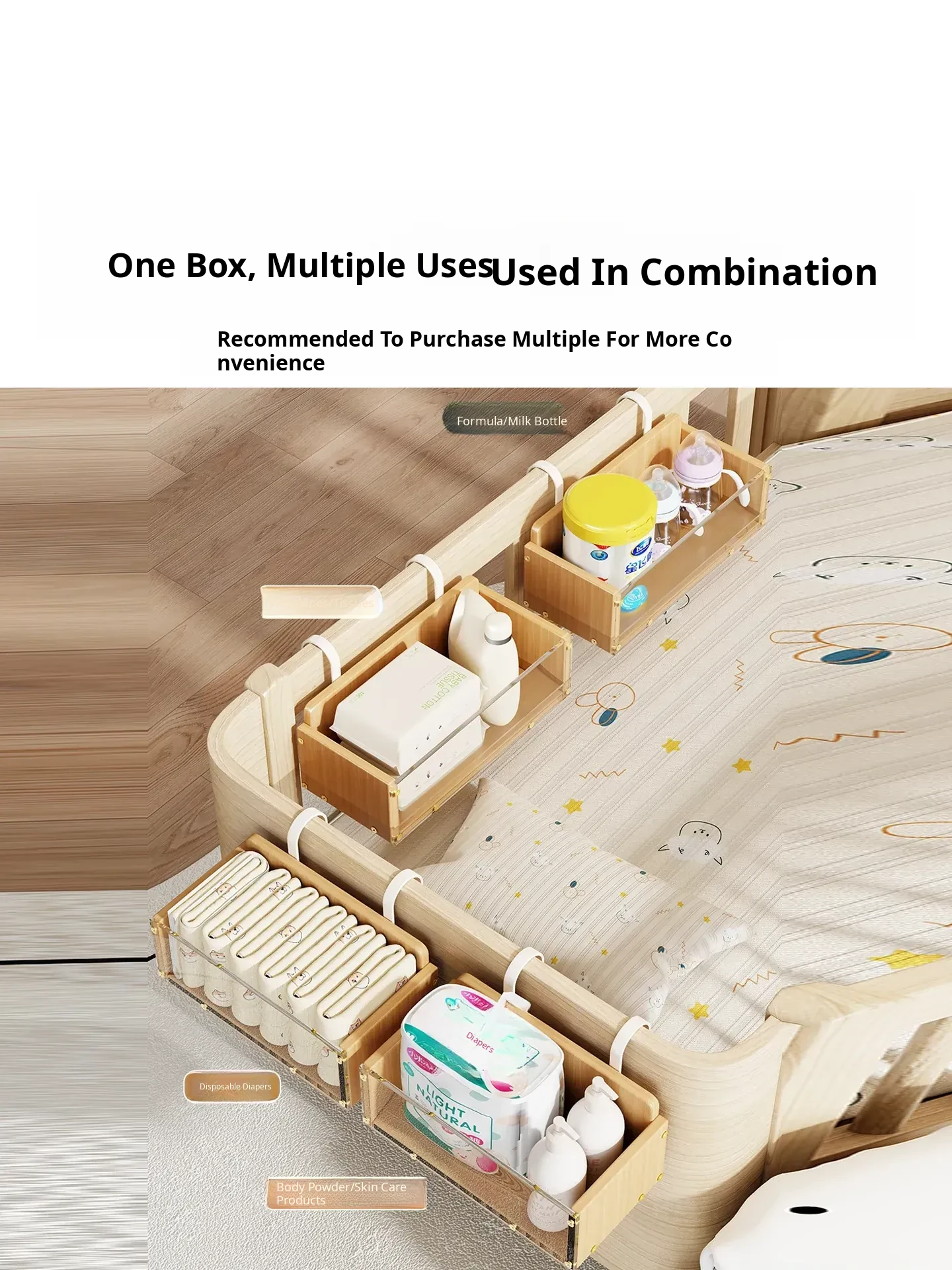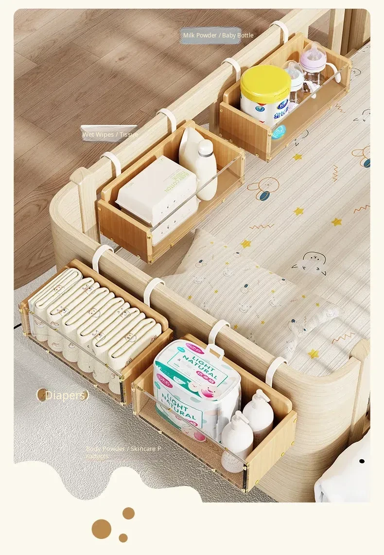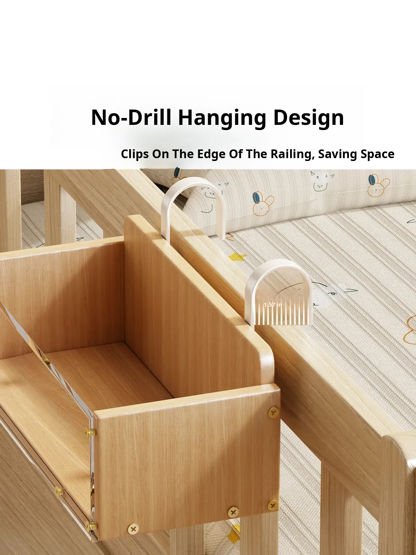 Baby Bedside Storage Organizer - Diaper Holder, Bottle Hanger, and Side Shelf for Crib - Keeps Essentials Within Reach and Keeps Nursery Tidy!