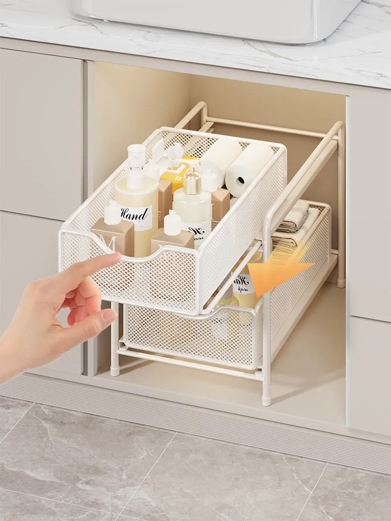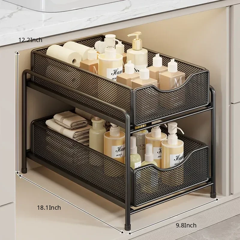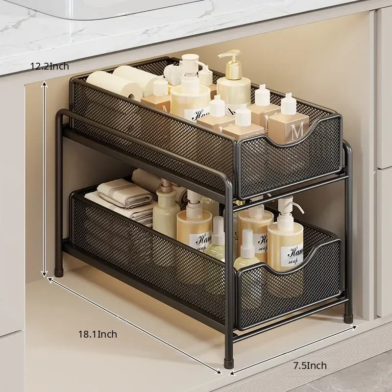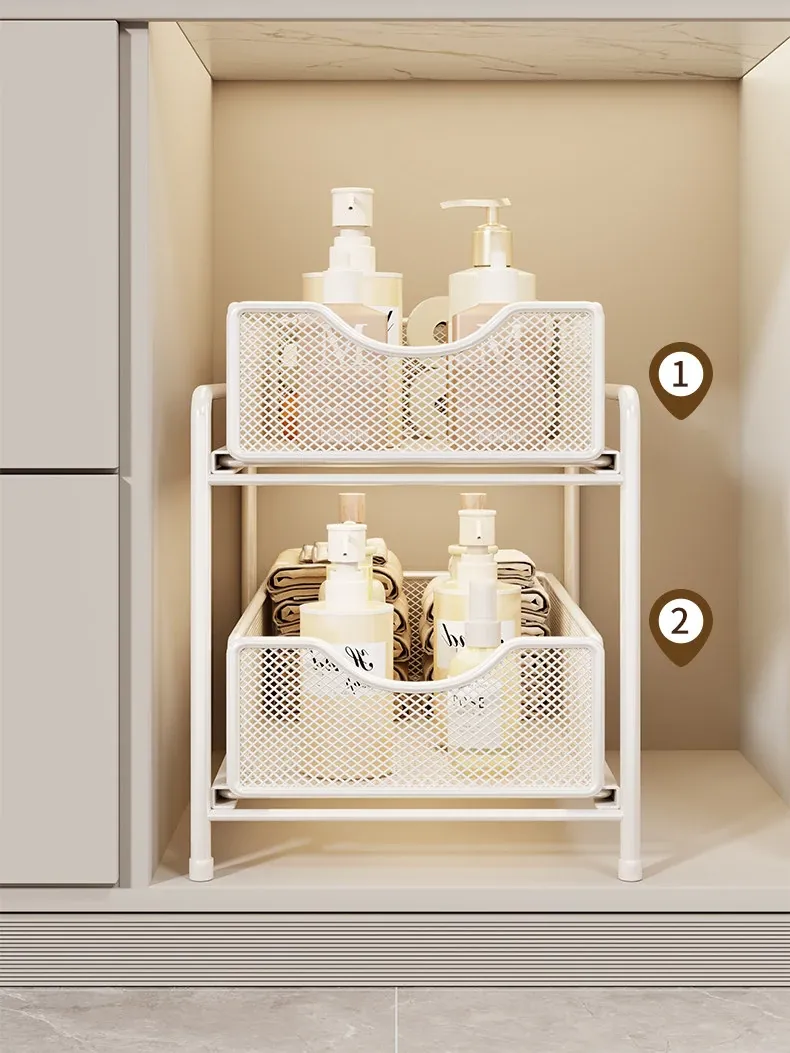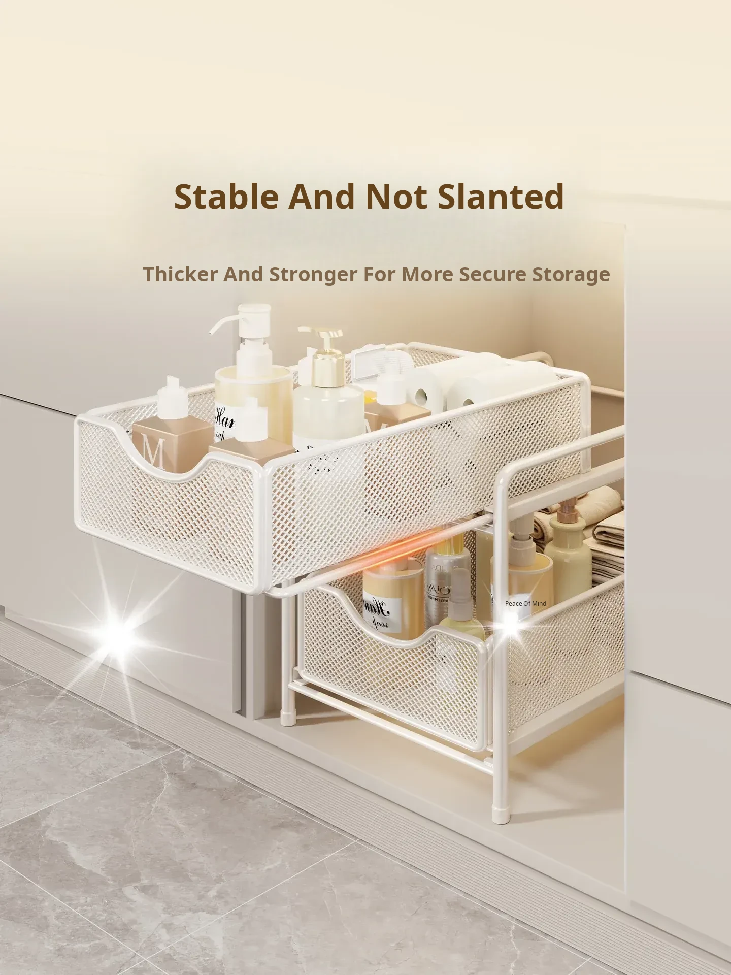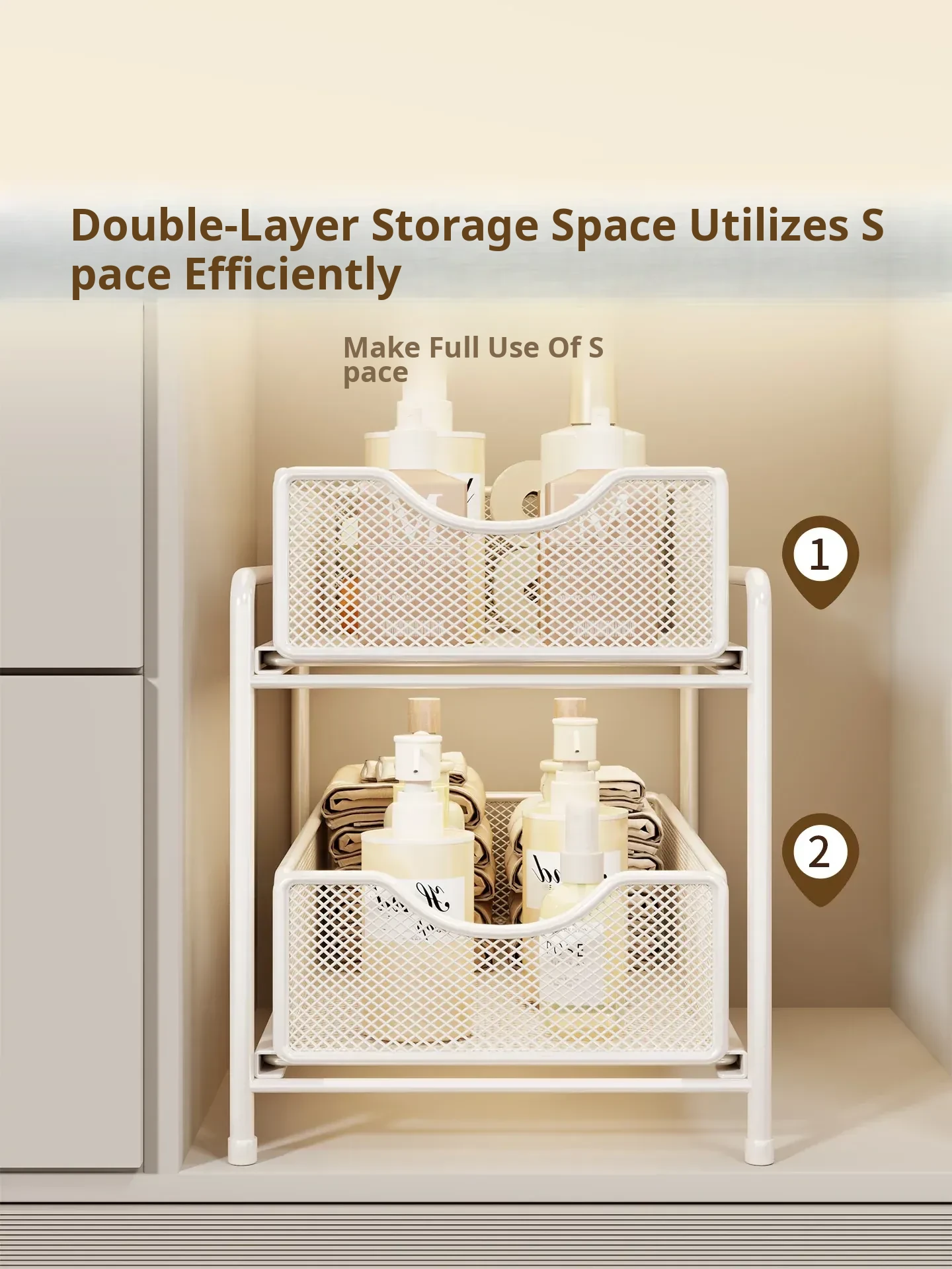 Bathroom Pull-Out Storage Rack - Under-Sink Drawer Organizer for Toiletries & Kitchen Tiered Storage Solution - Maximize Space and Keep Essentials Neat and Accessible!