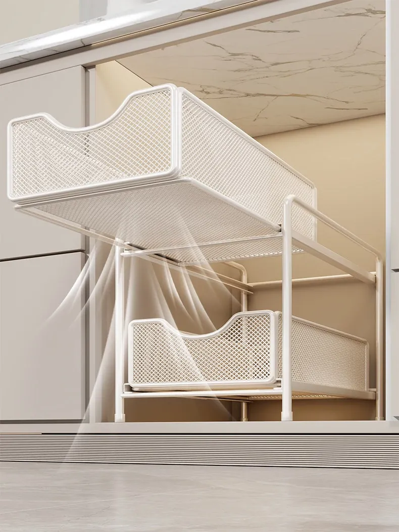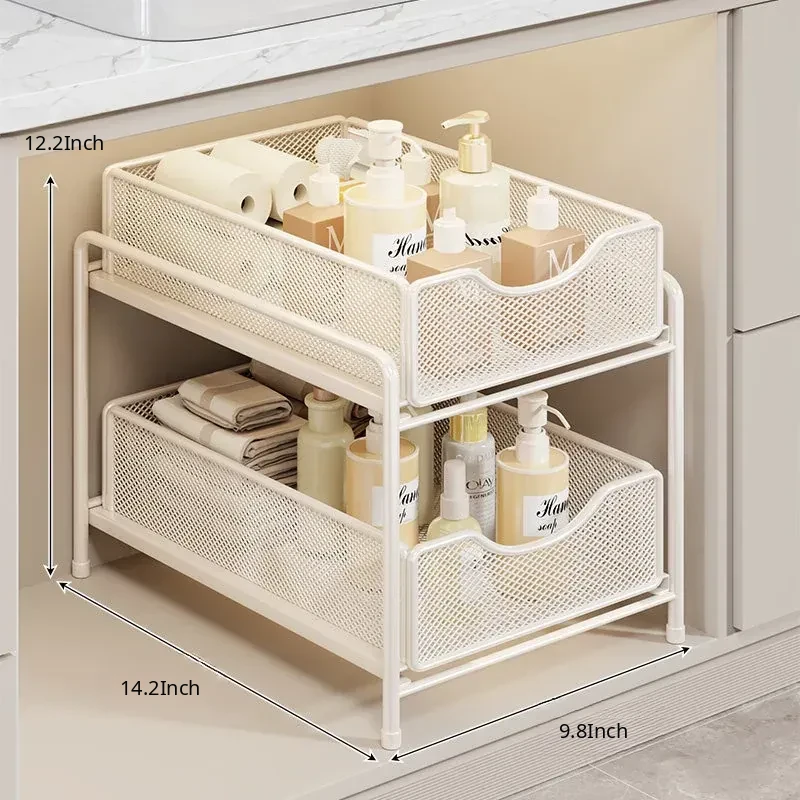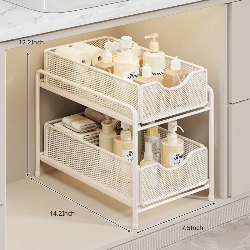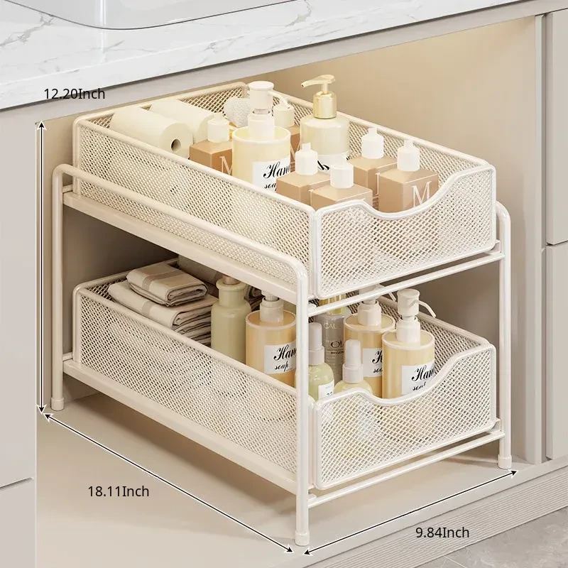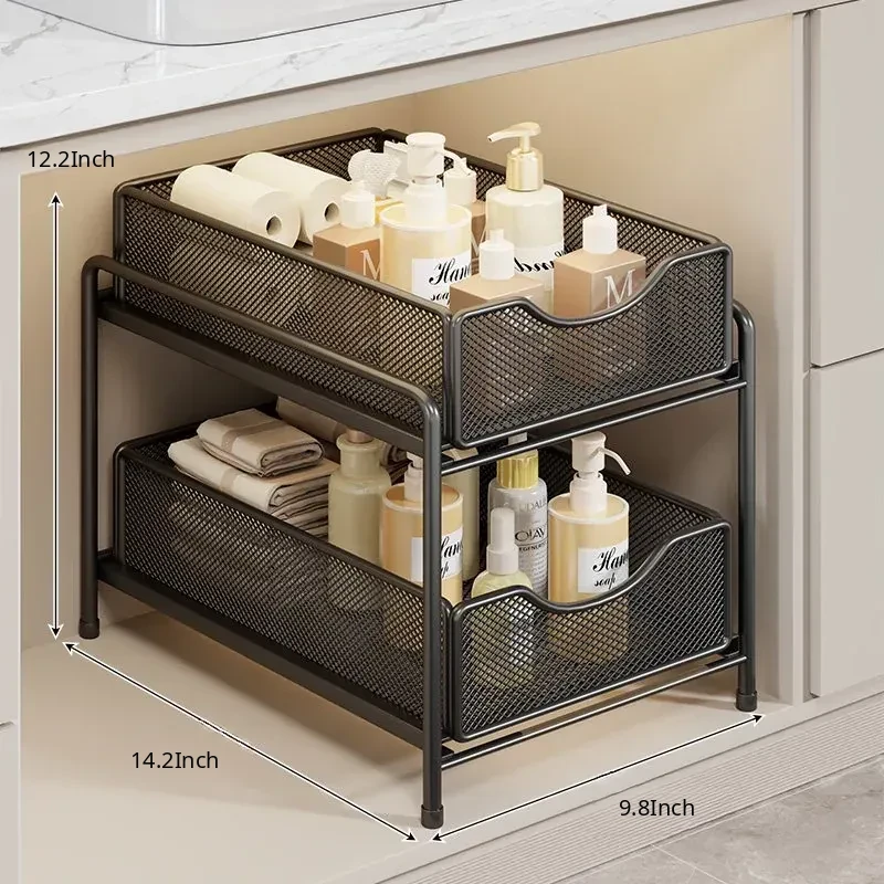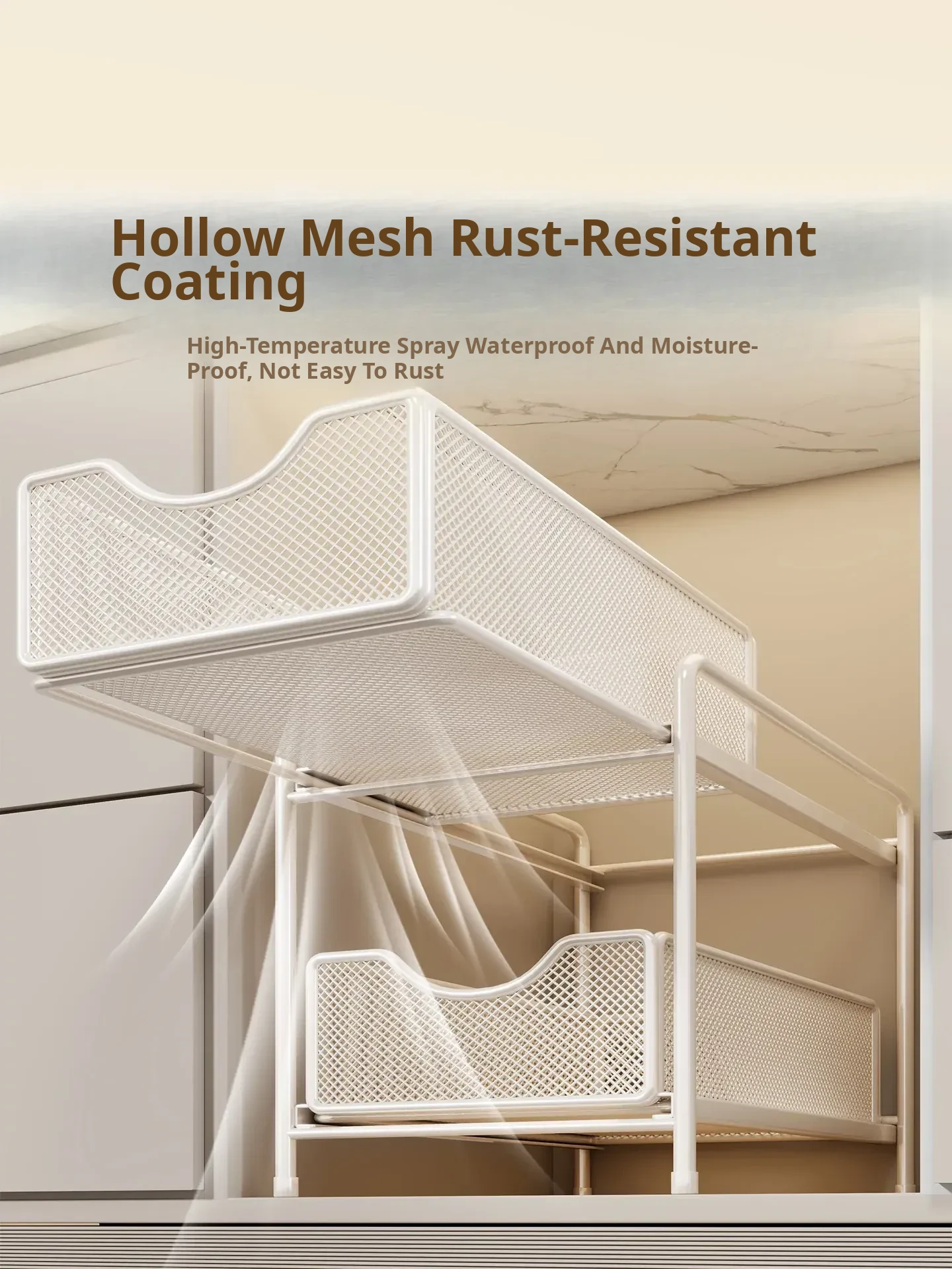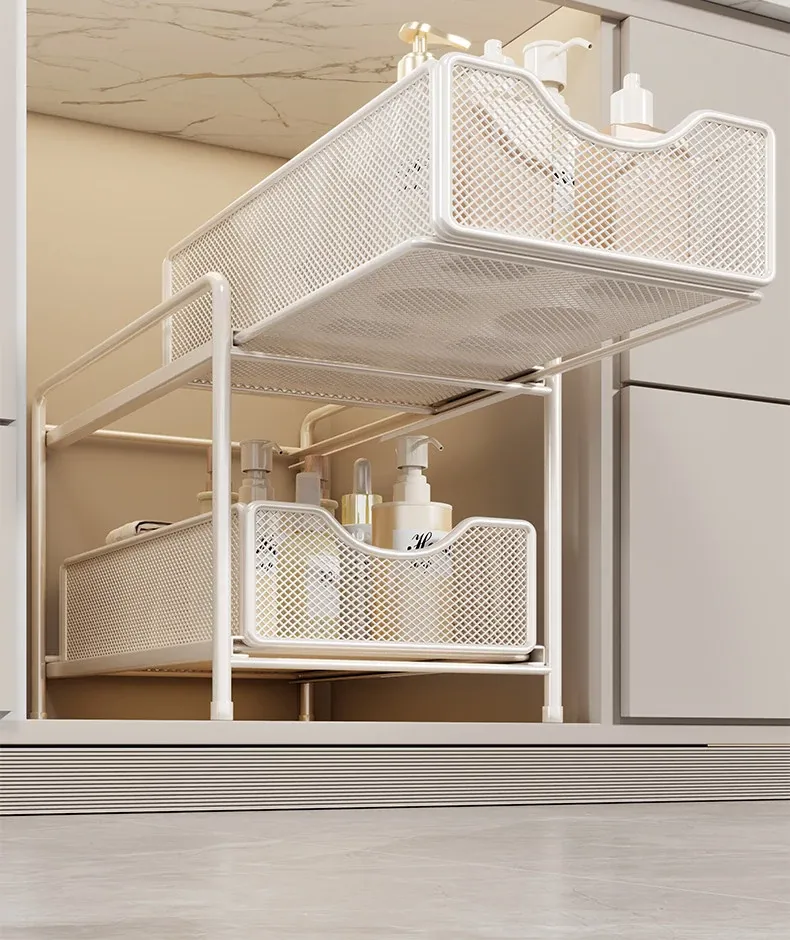 Bathroom Pull-Out Storage Rack - Under-Sink Drawer Organizer for Toiletries & Kitchen Tiered Storage Solution - Maximize Space and Keep Essentials Neat and Accessible!
