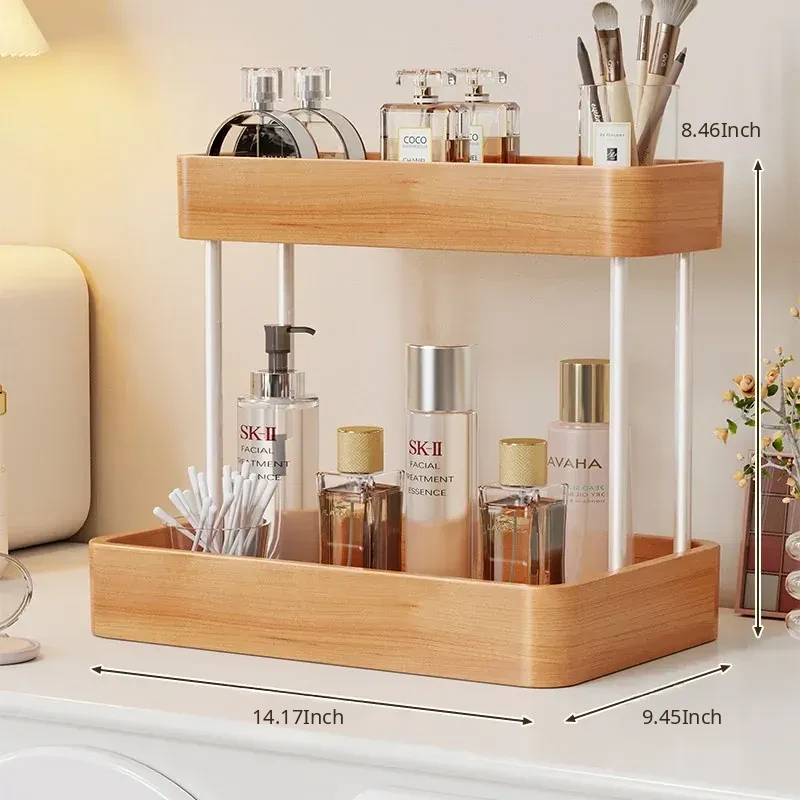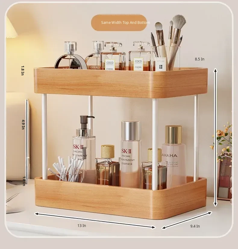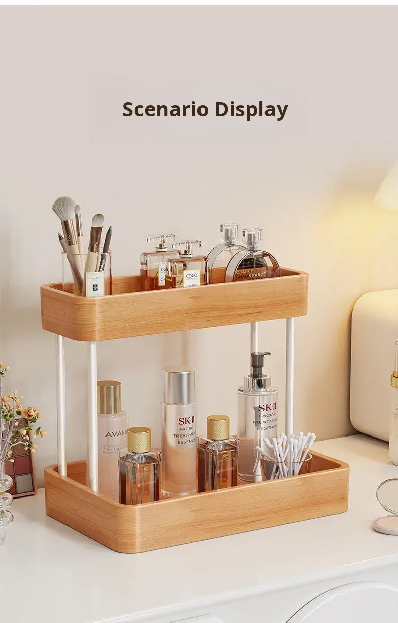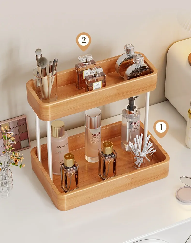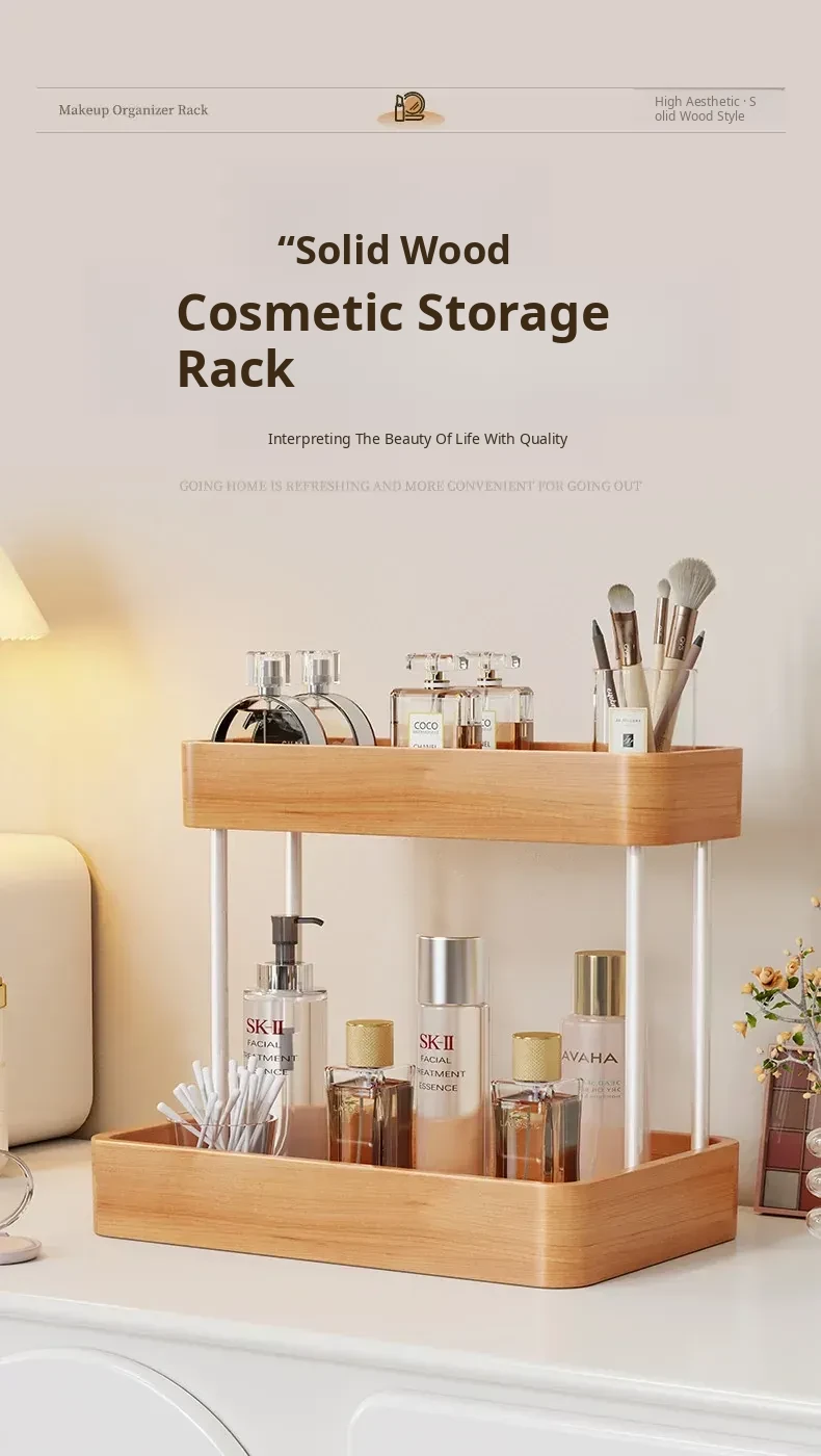 Elegant Solid Wood Makeup Organizer - Multi-Tier Display Shelf for Cosmetics and Skincare, Perfect for Dressing Tables and Bathrooms. Stylish Storage Solution for Your Beauty Essentials!