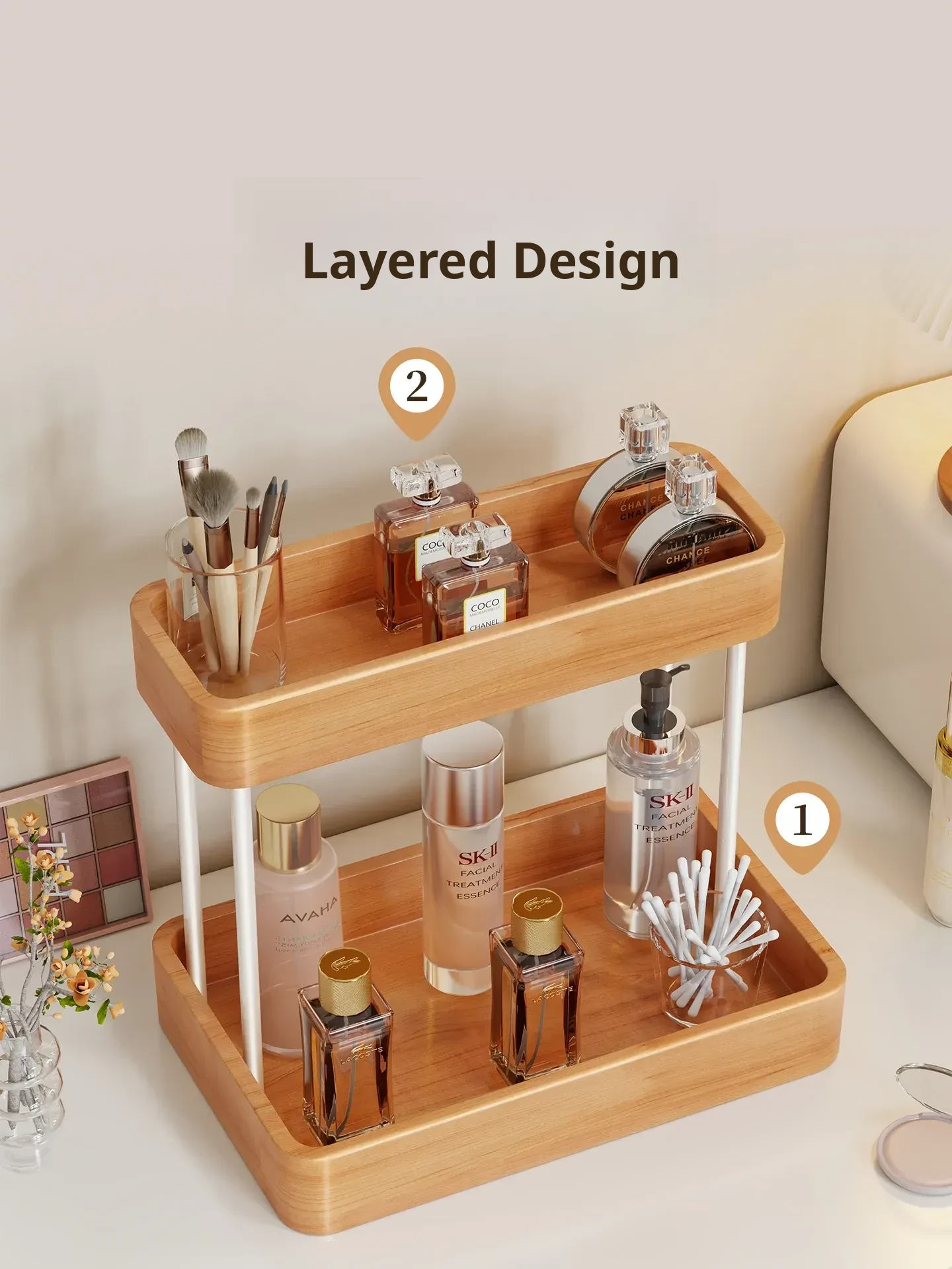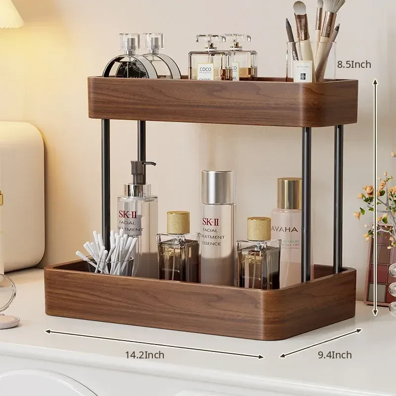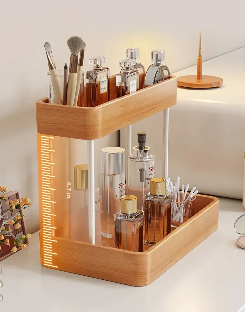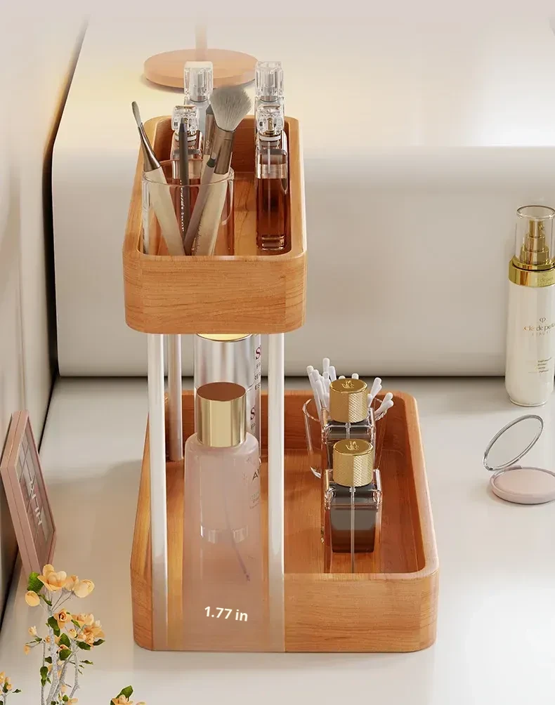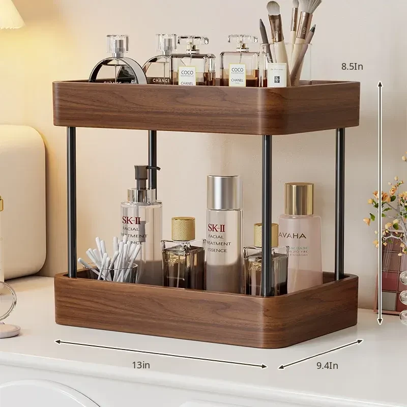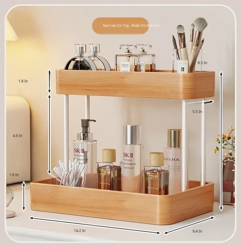 Elegant Solid Wood Makeup Organizer - Multi-Tier Display Shelf for Cosmetics and Skincare, Perfect for Dressing Tables and Bathrooms. Stylish Storage Solution for Your Beauty Essentials!
