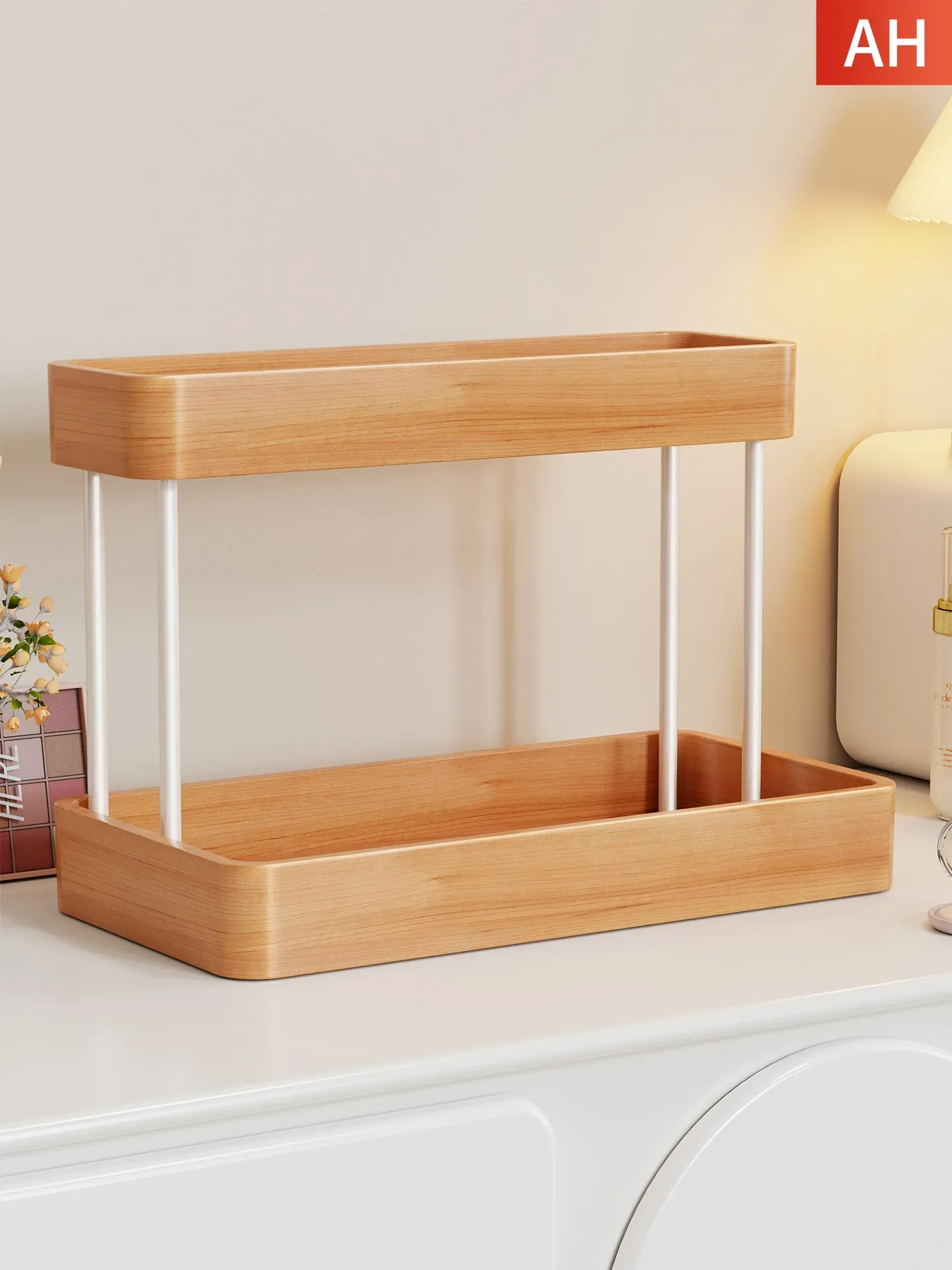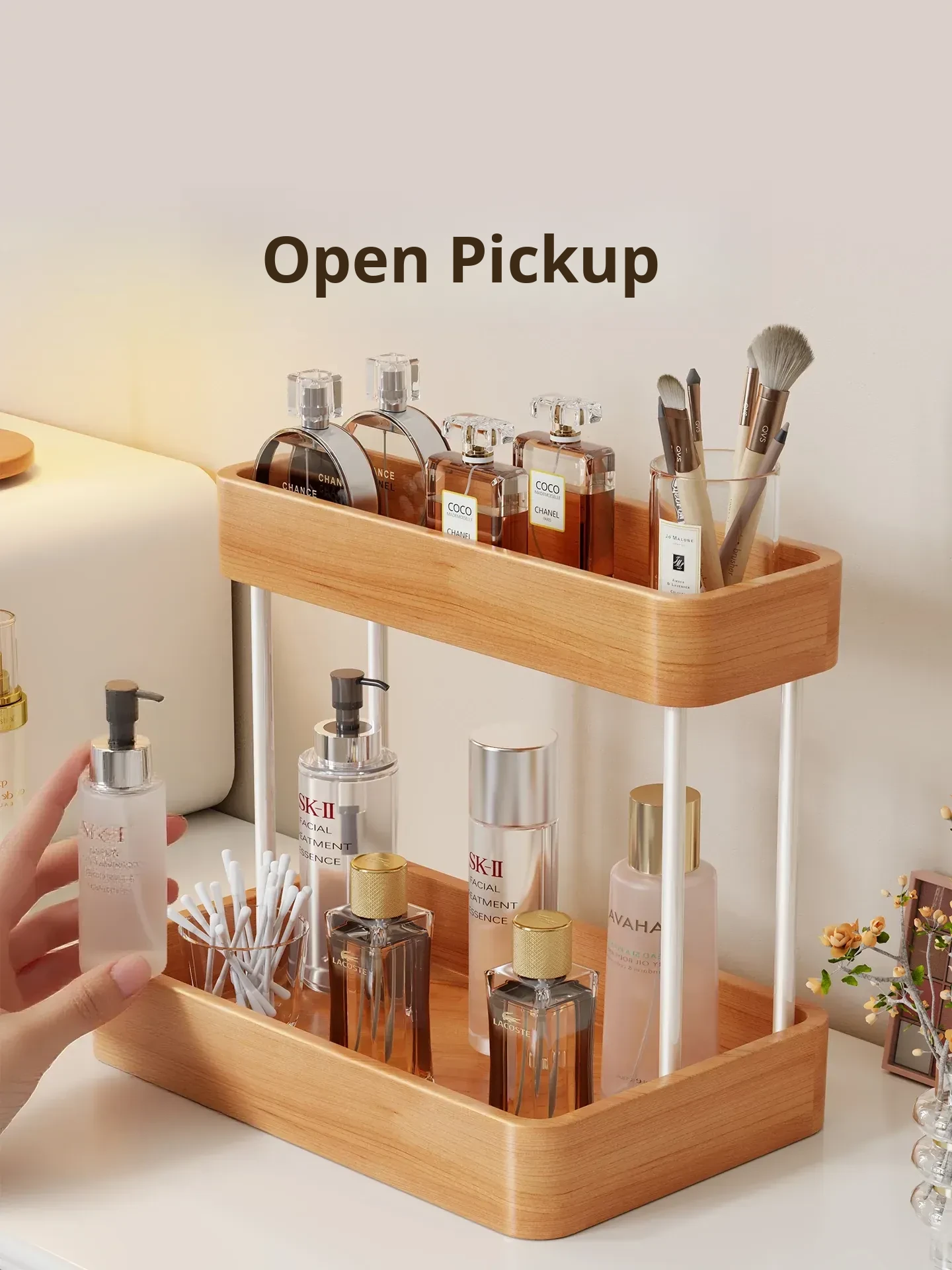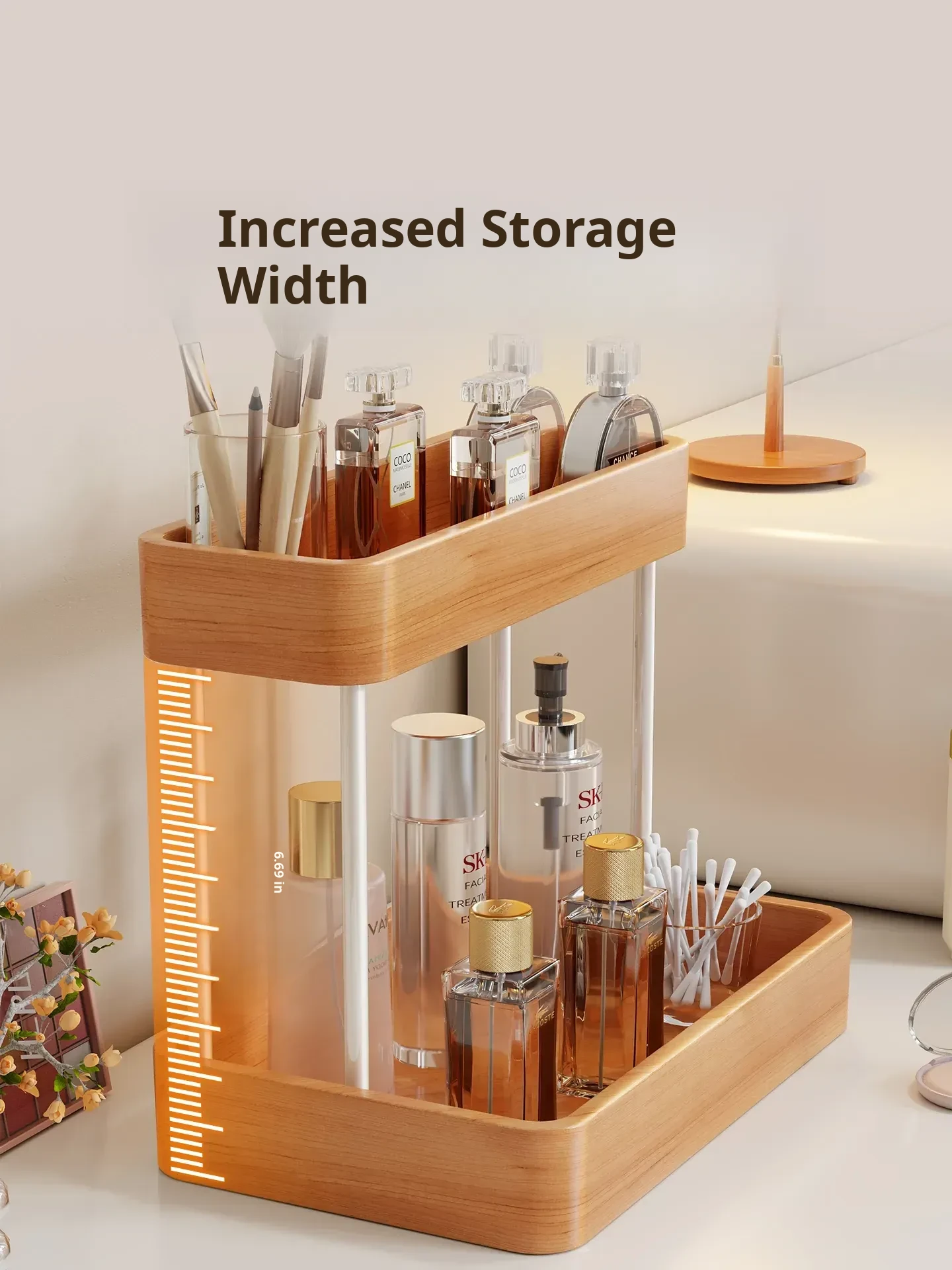 Elegant Solid Wood Makeup Organizer - Multi-Tier Display Shelf for Cosmetics and Skincare, Perfect for Dressing Tables and Bathrooms. Stylish Storage Solution for Your Beauty Essentials!