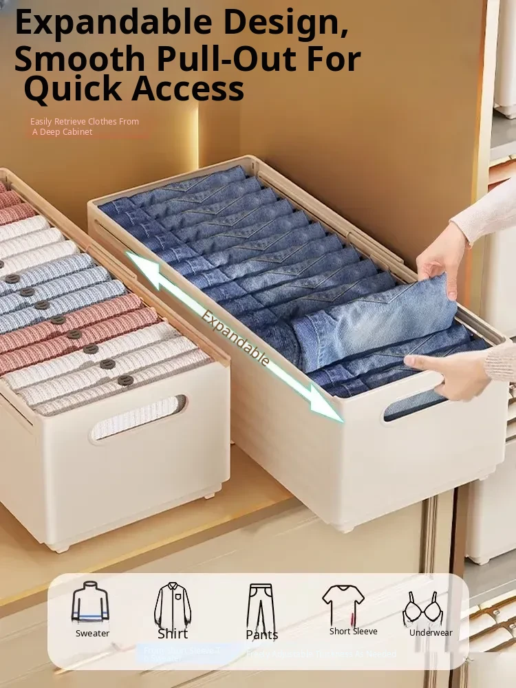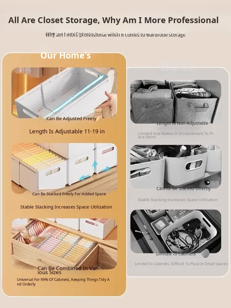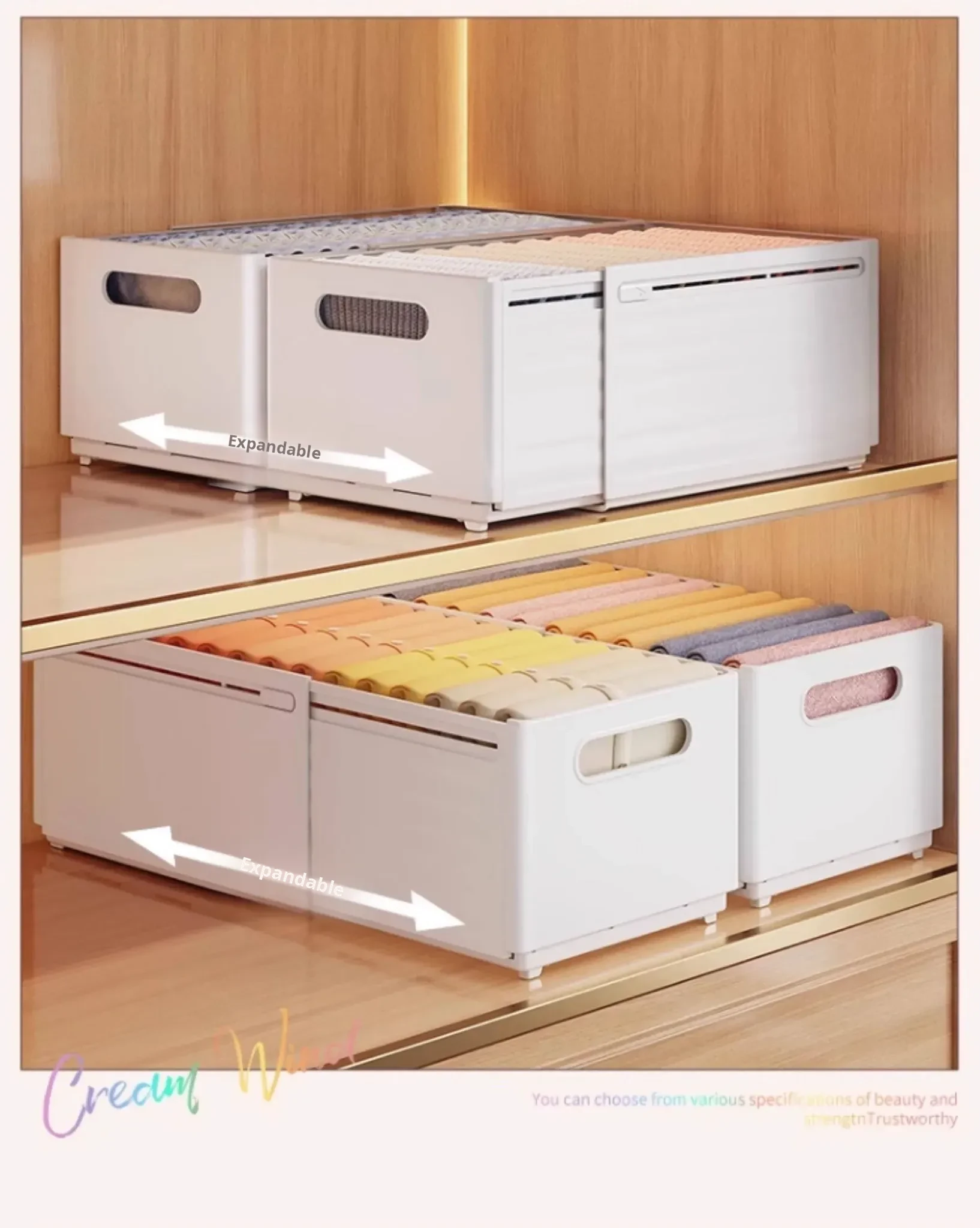 Expandable Storage Box for Kitchen Cabinets - Drawer-Style Pull-Out Basket for Organizing Socks, Underwear, and Small Items - Slim and Space-Saving Design