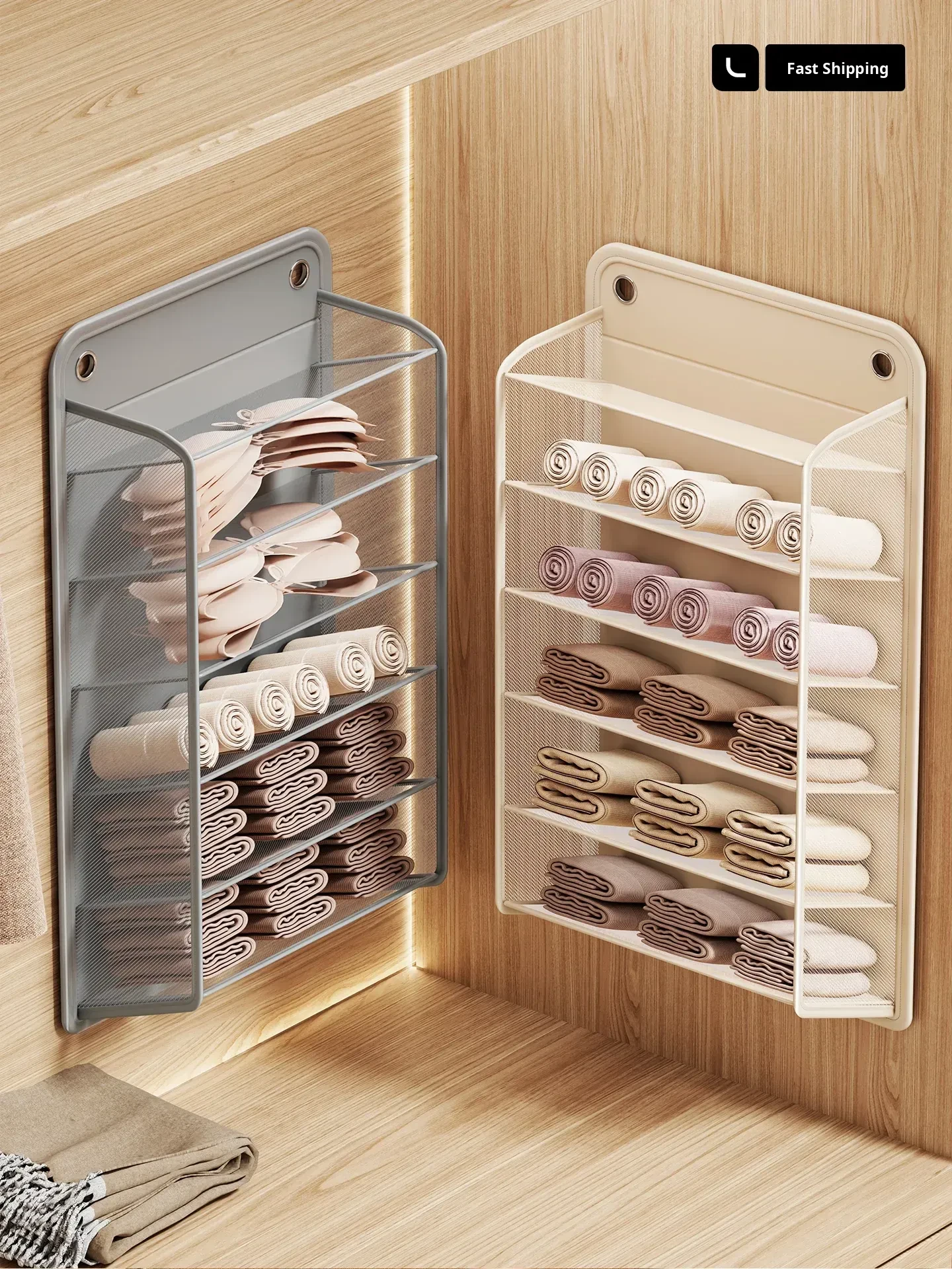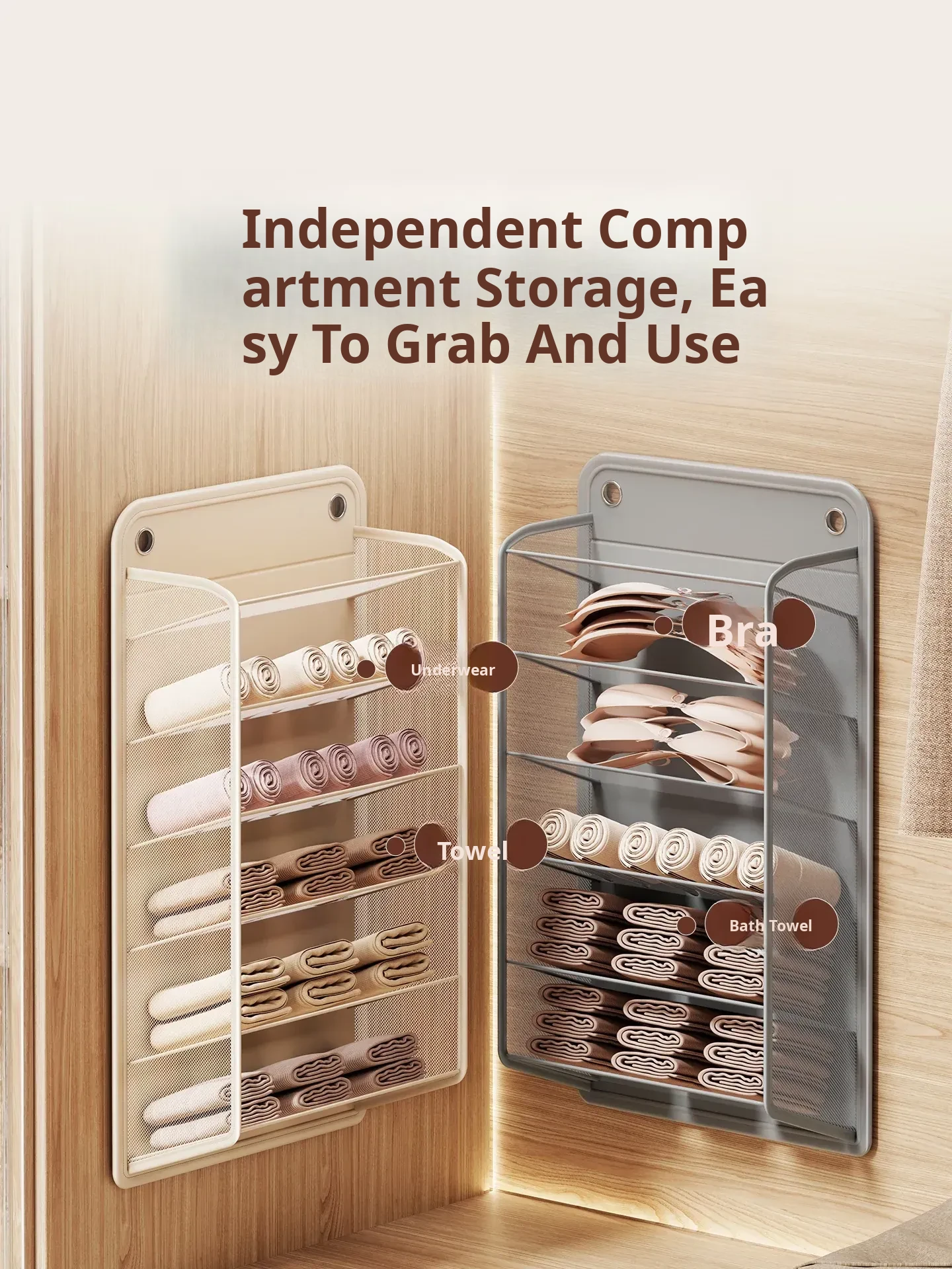 Beige - 5 Compartments [Can Hold Bras and Base Layers]