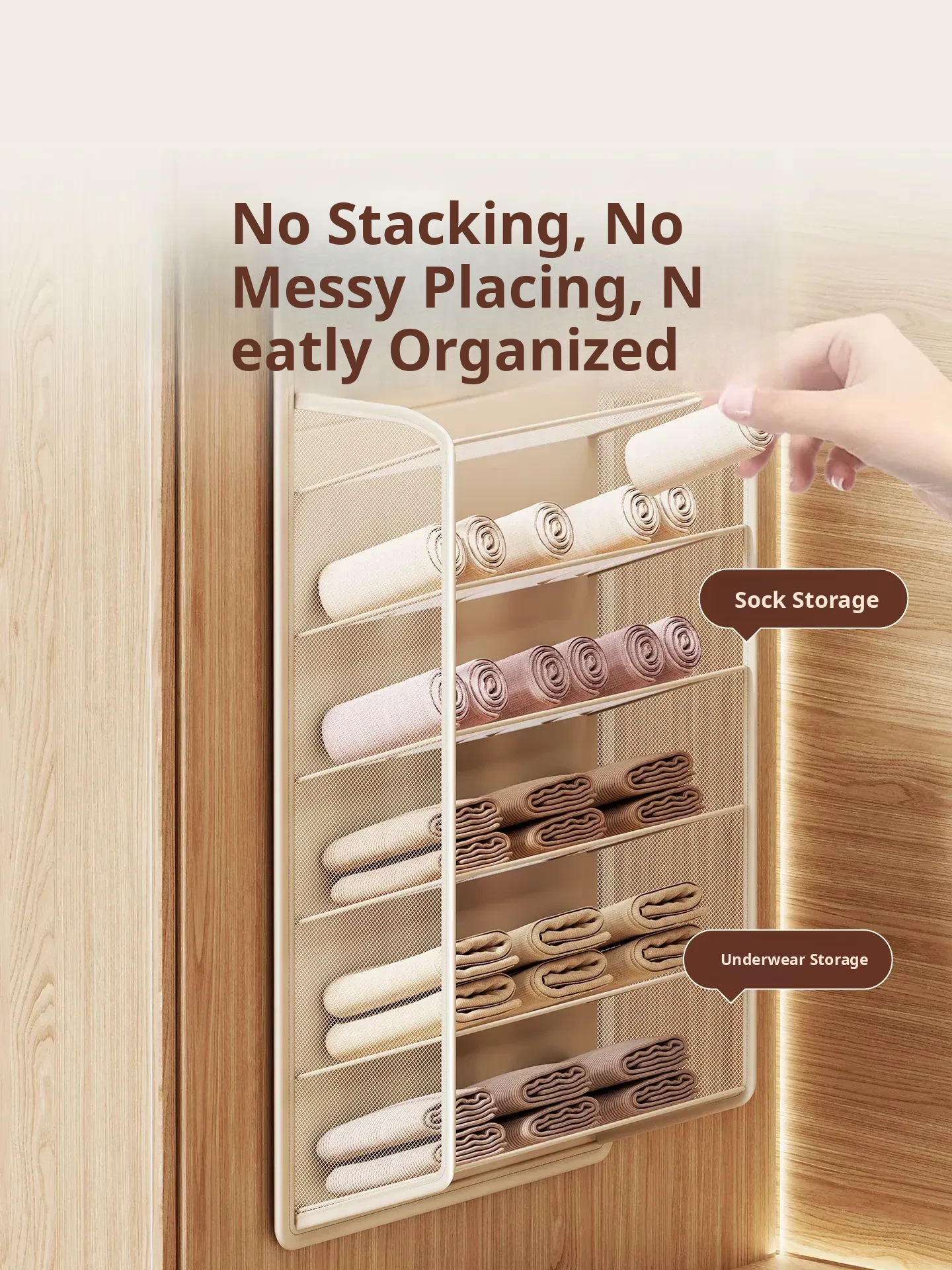 Beige-15 Compartments [Can Hold Underwear and Socks]