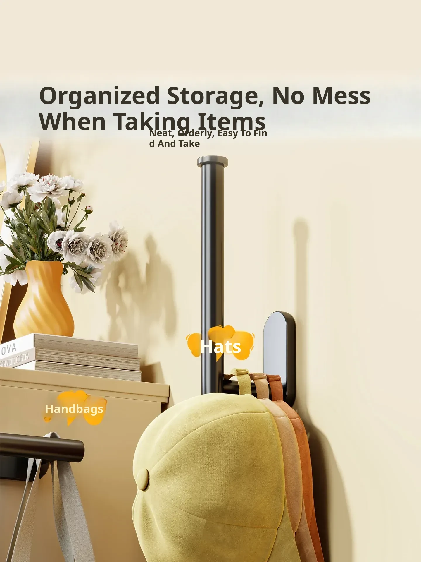 Hat Storage Magic: Suction Cup Hooks for No-Drill Wall-Mounted Organization - Perfect for Closet Doors & Entryways - Ideal for Baseball Caps & Flat Brim Hats!