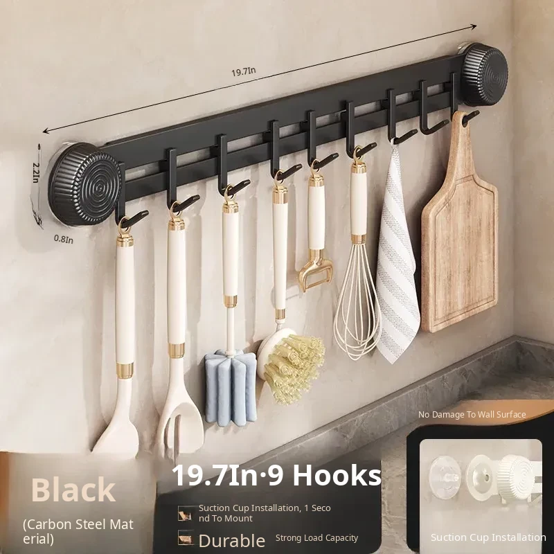 19.69in (9 Hooks, Removable) Suction Cup - Matte Black