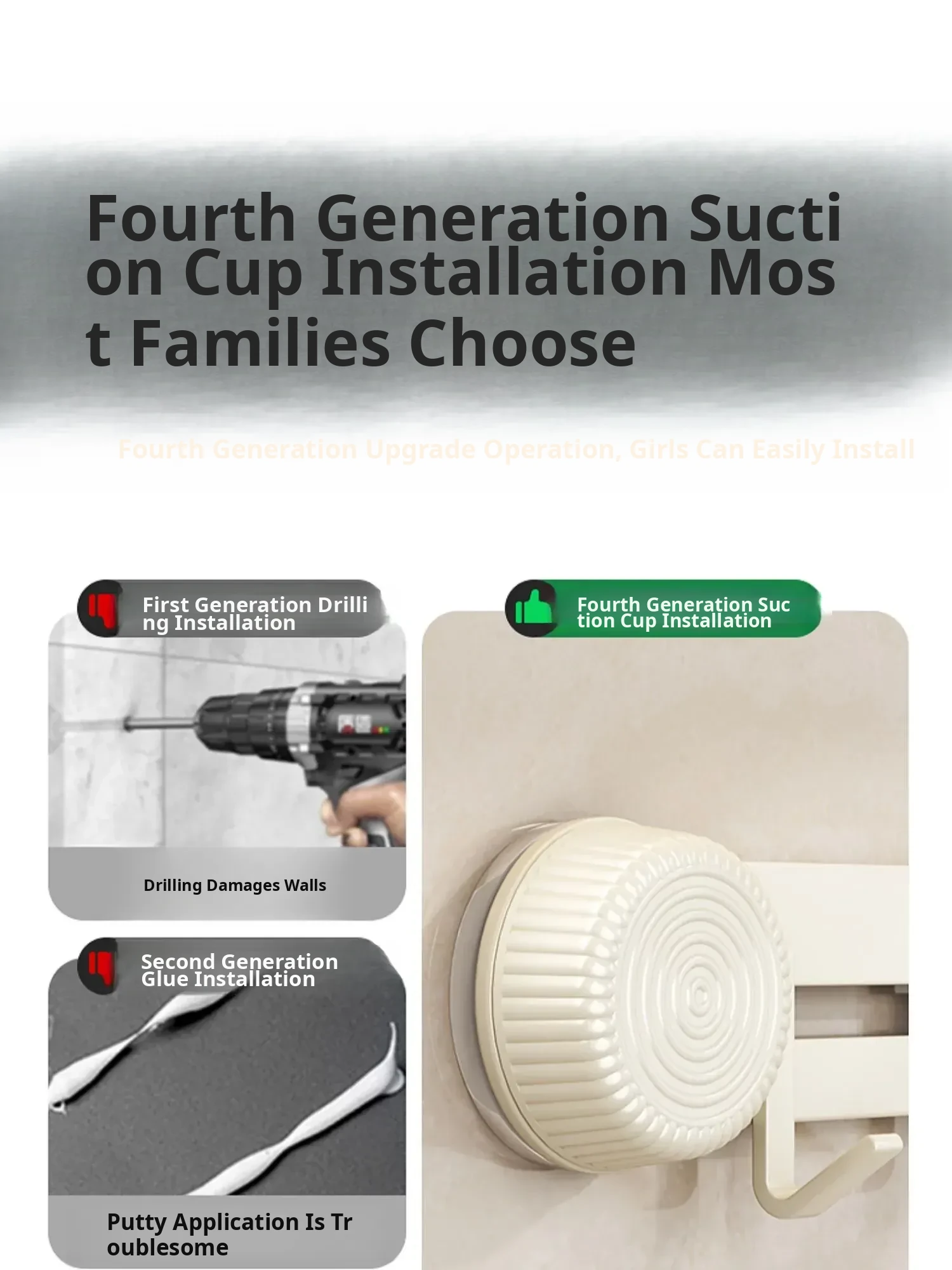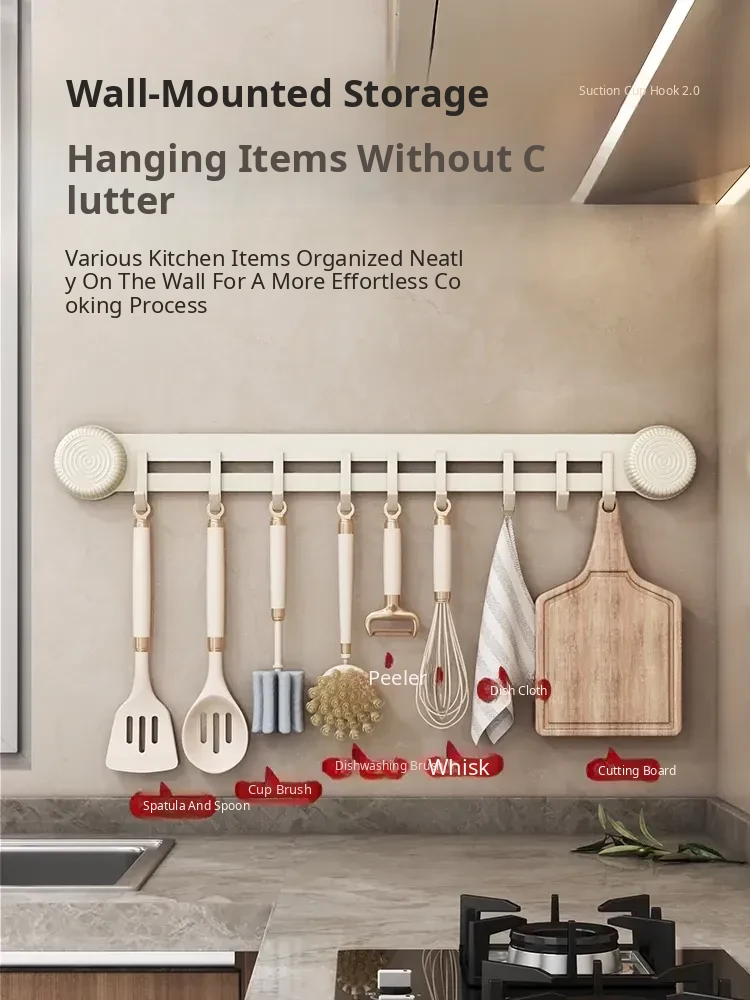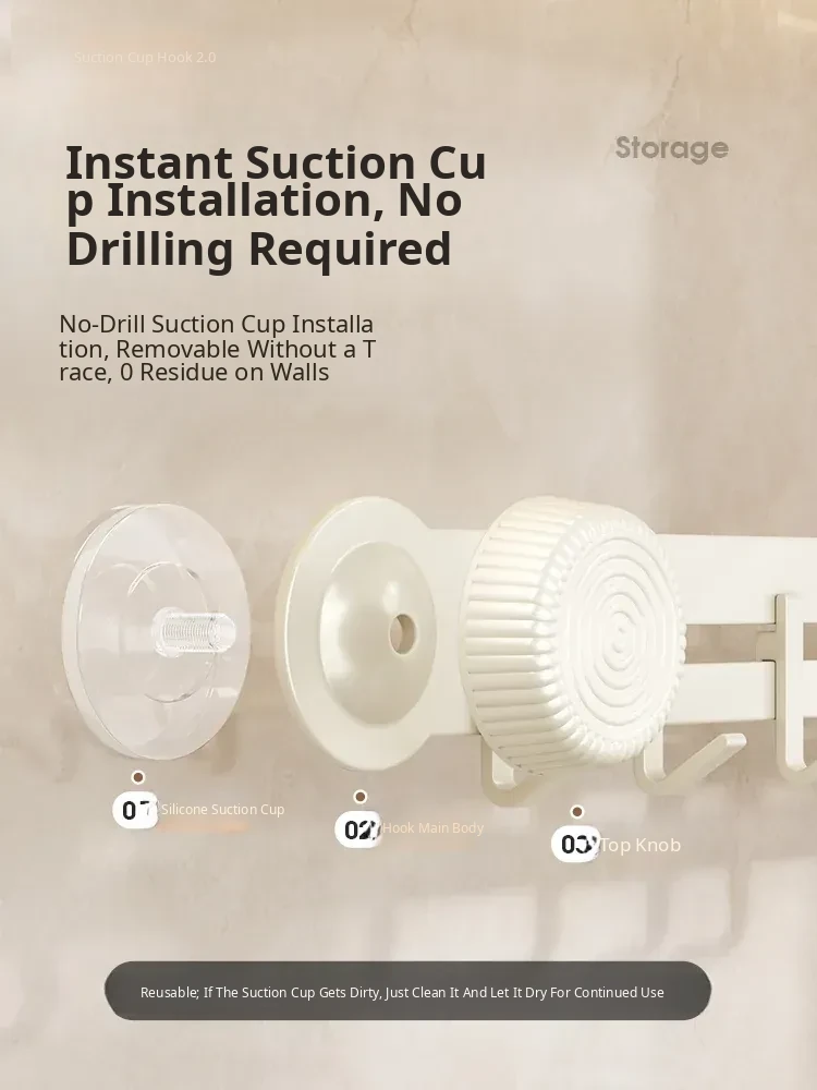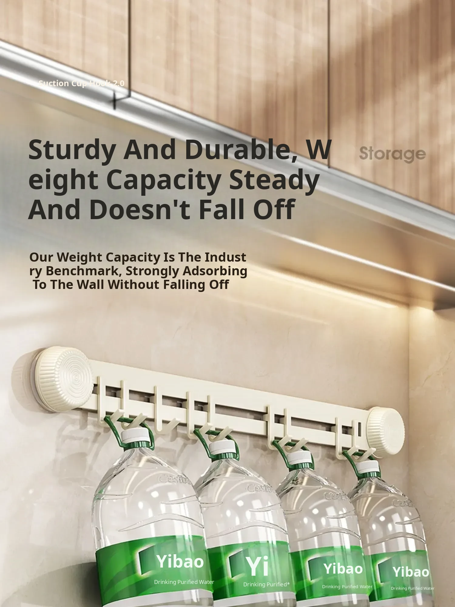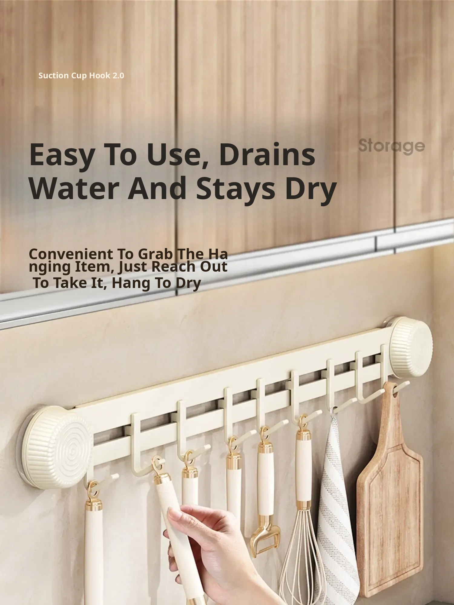 Heavy-Duty No-Drill Suction Cup Hooks for Bathroom and Kitchen - Effortlessly Hang Towels, Utensils, and More with Strong Adhesion and Sliding Rail Design!