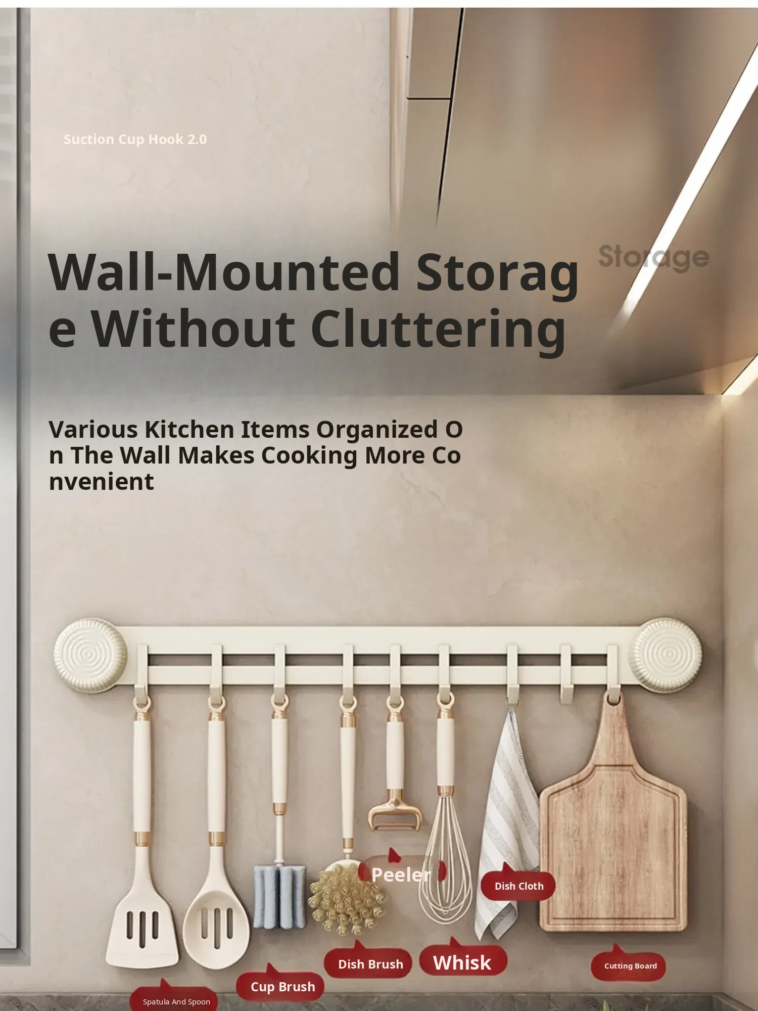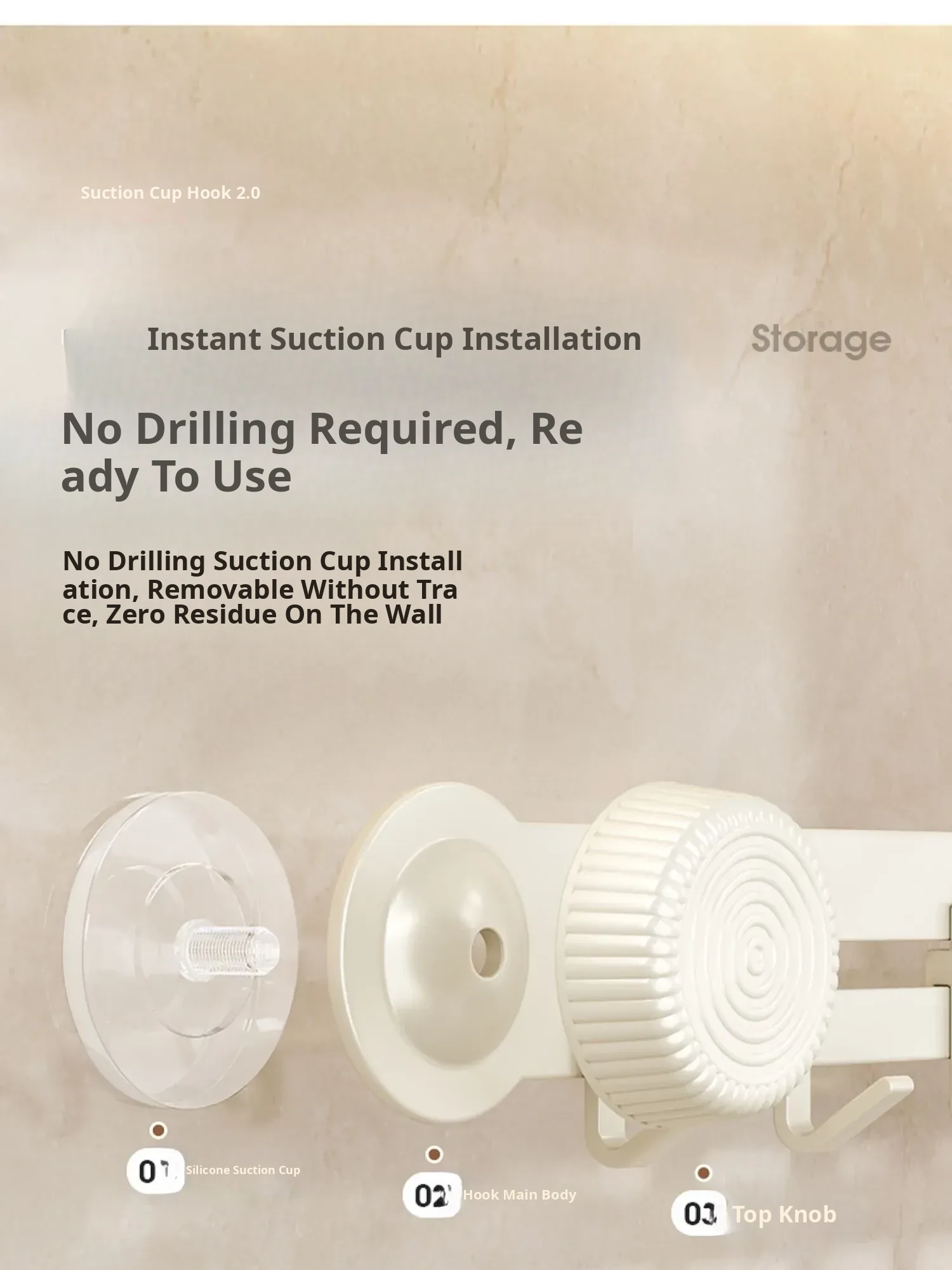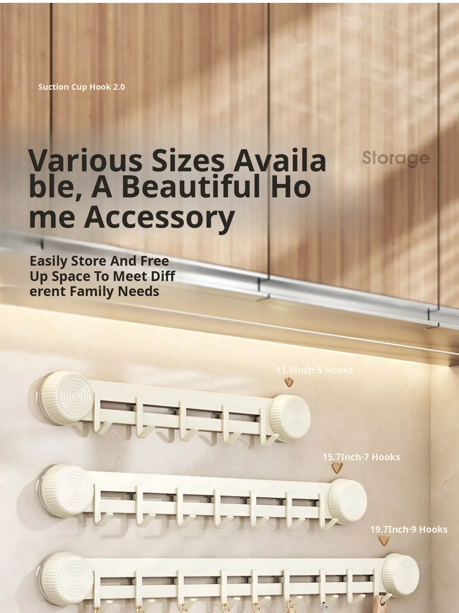 19.69in (9 Hooks, Removable) Suction Cup - Creamy White
