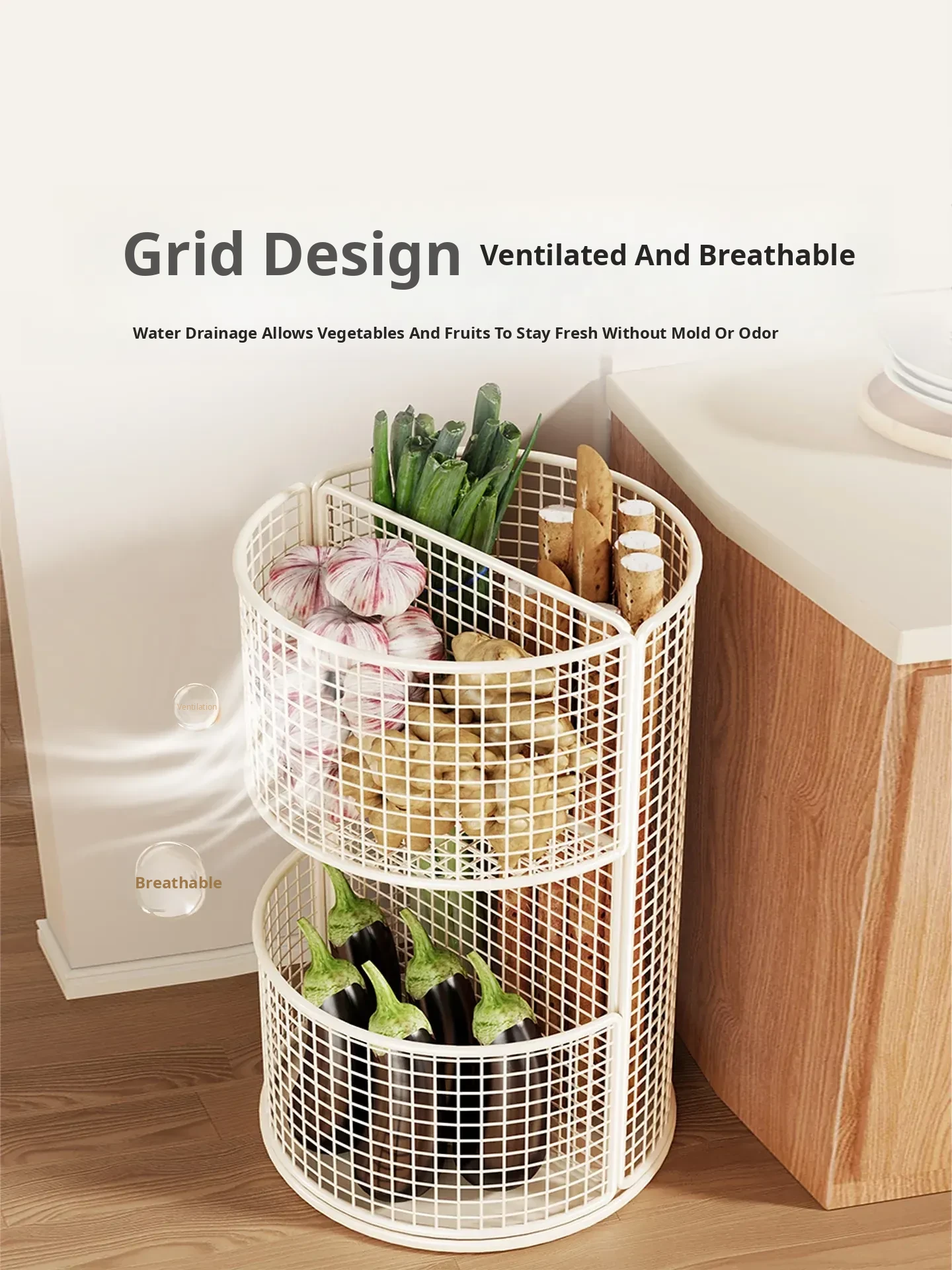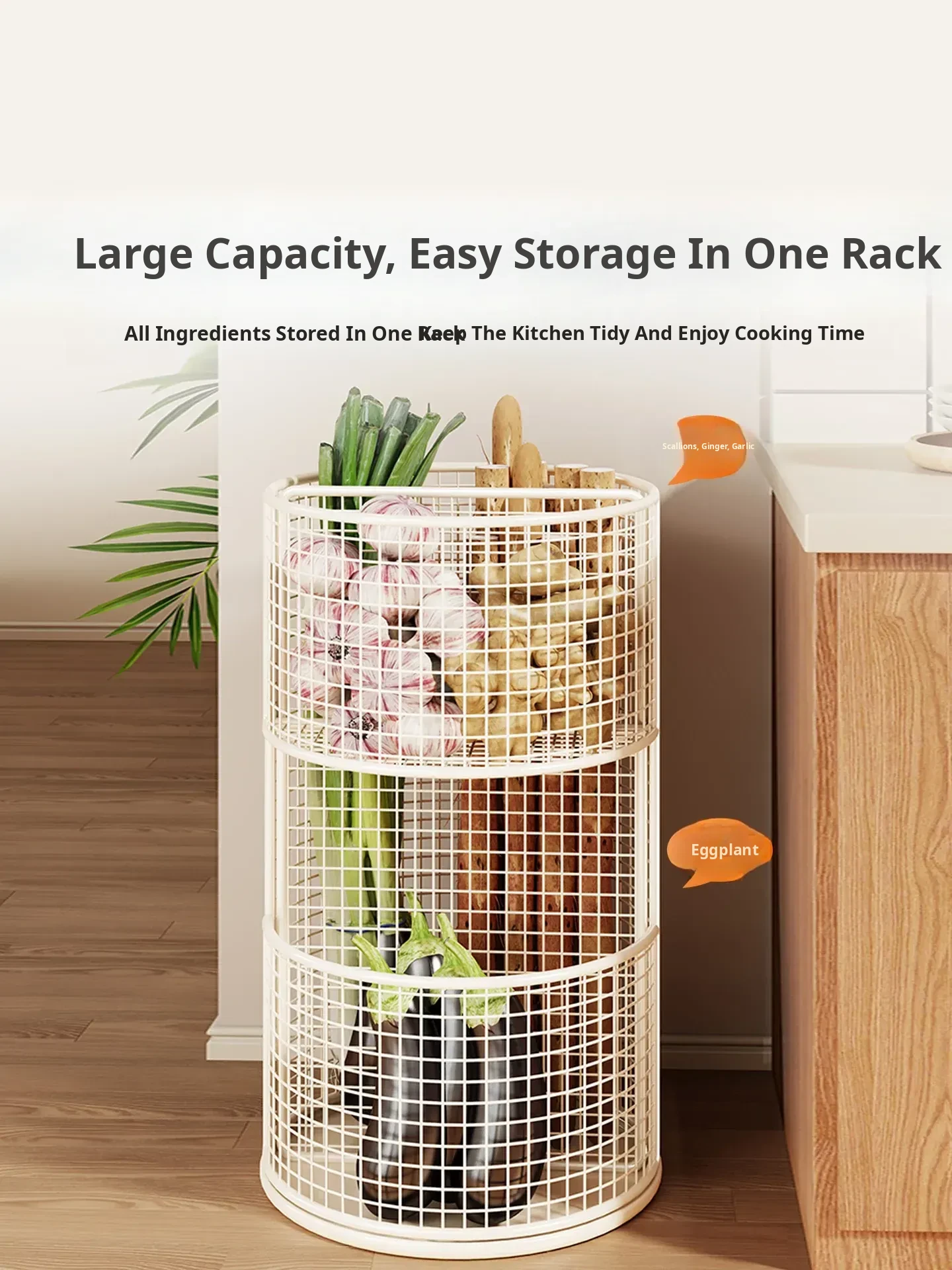 Kitchen Onion Storage Organizer - Large Capacity Multi-Functional Rack for Vegetables, Yams, Green Onions, Ginger, and Garlic. Perfect for Home Use!