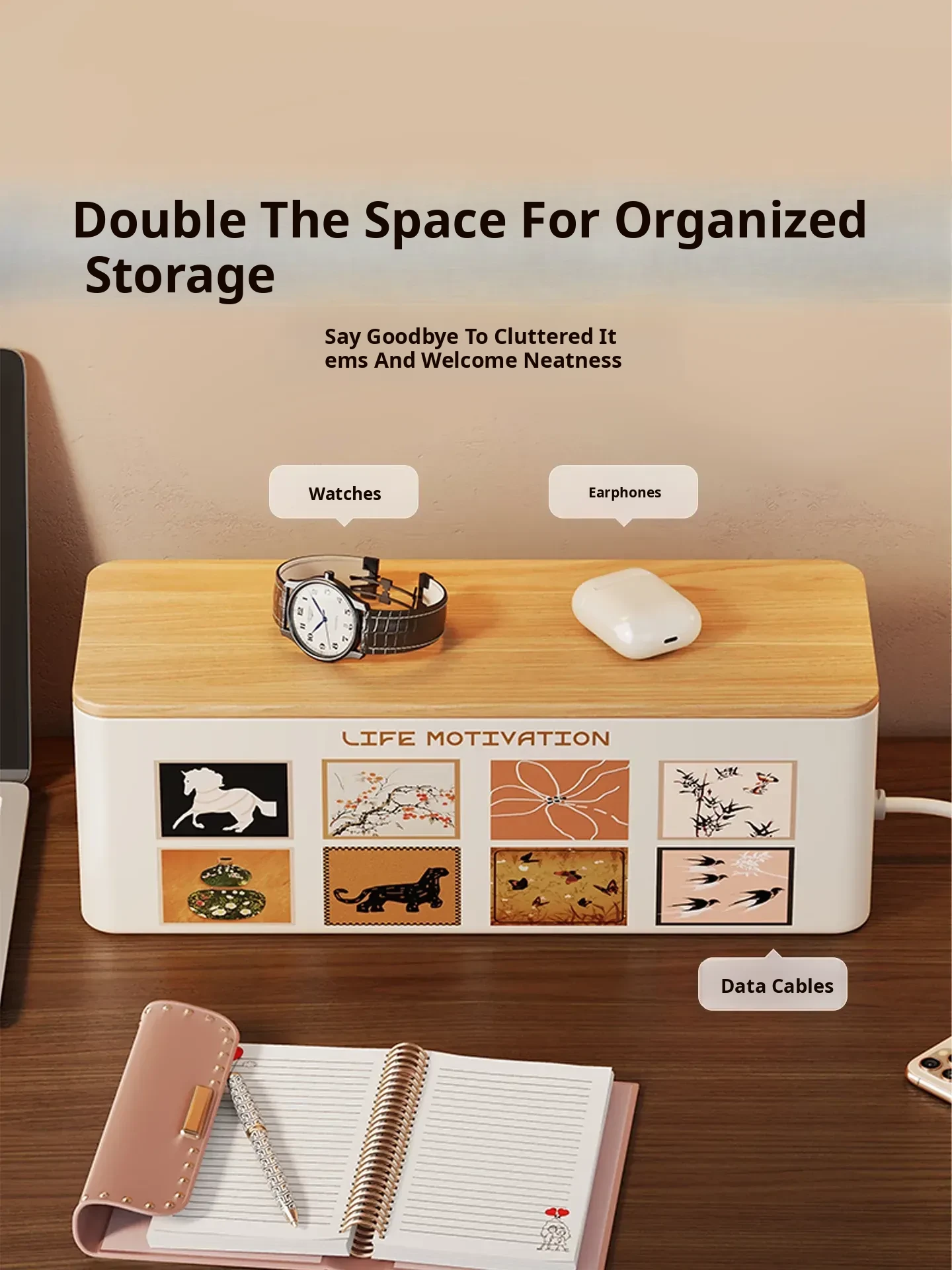 Large Capacity Data Cable Organizer Box - Desktop Phone Charger Power Cord Management Solution for Home, Tidy Up Your Space with This Essential Cable Separator and Storage Hero!