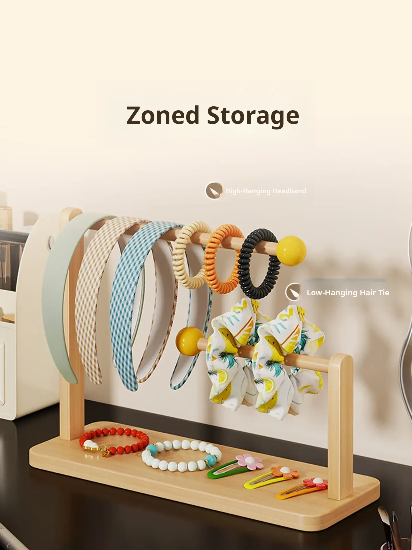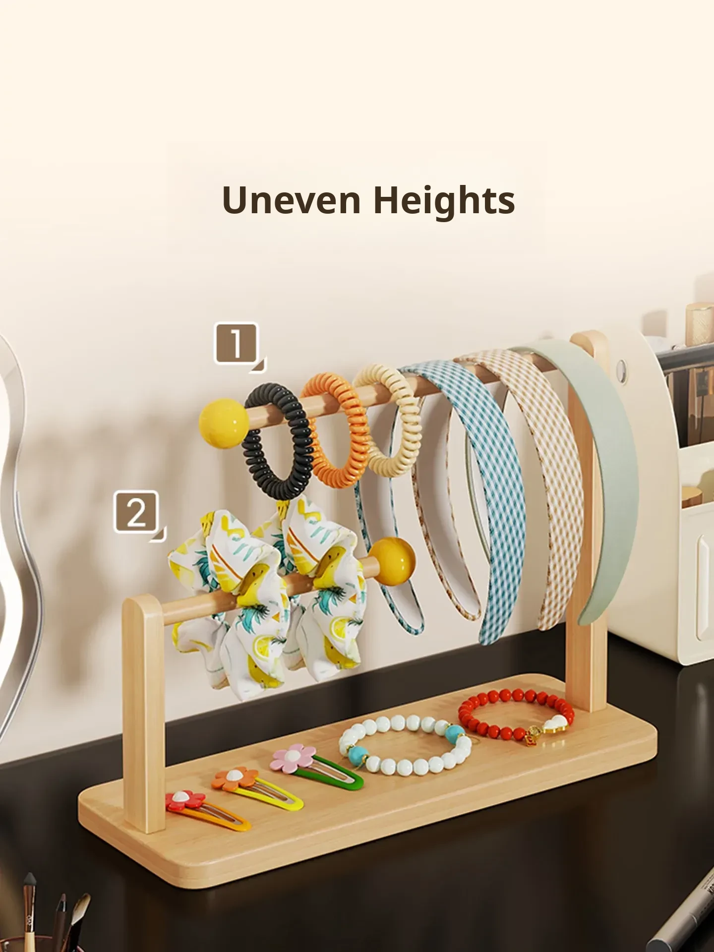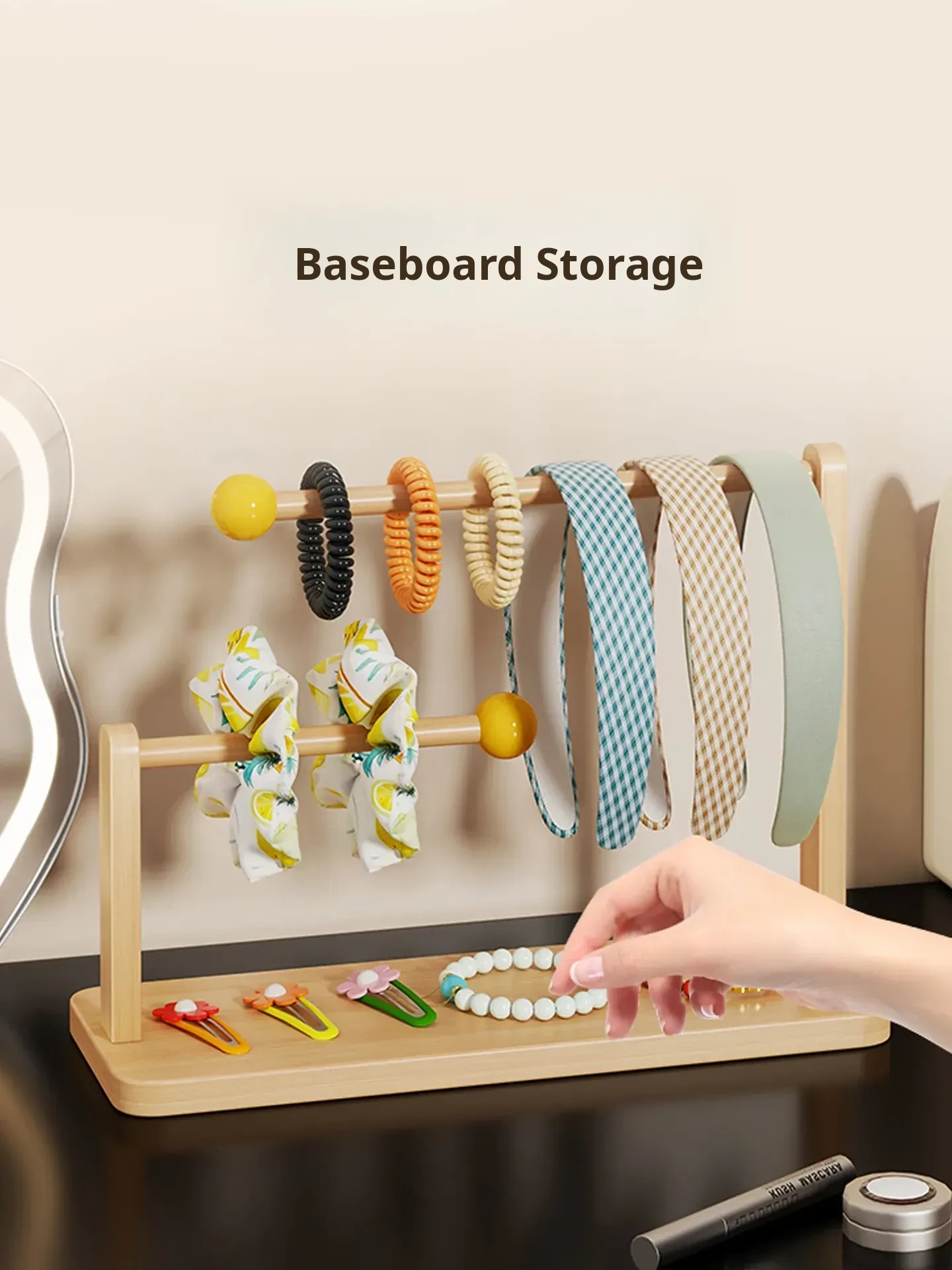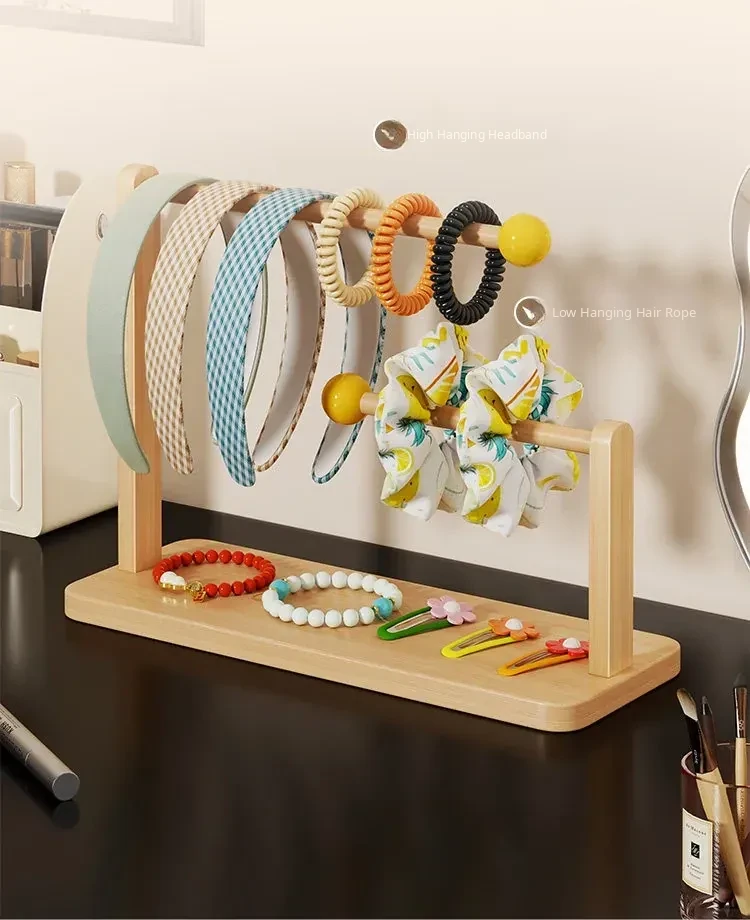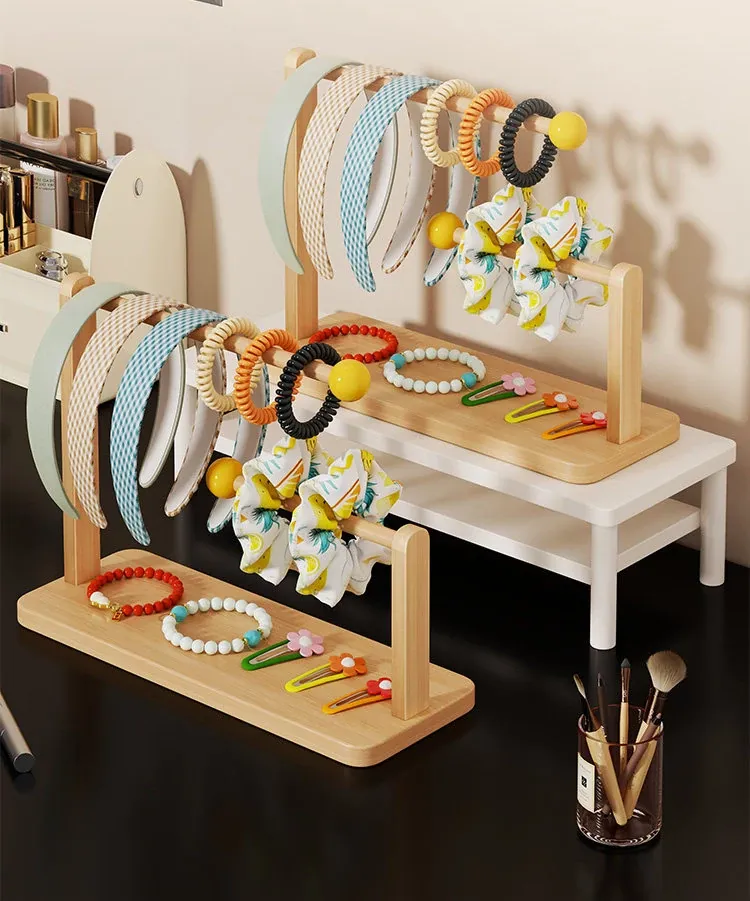 Large Capacity Desktop Hair Accessories Organizer - Wooden Headband and Hair Tie Display Rack for Hair Clips and Bracelets - Perfect for Keeping Your Space Tidy and Stylish!