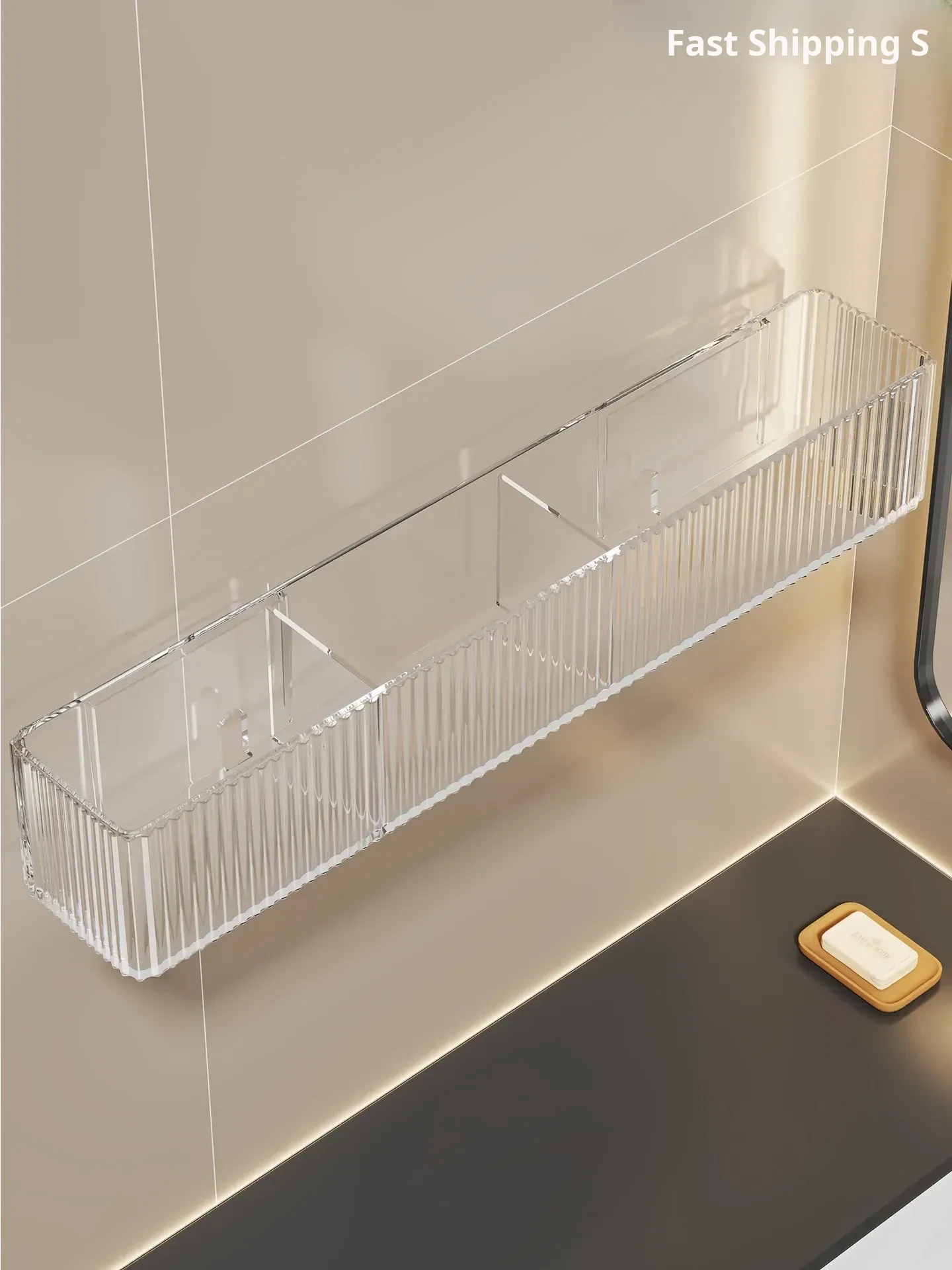 Large Capacity Wall-Mounted Bathroom Storage Rack - Transparent Organizer for Face Masks and Skincare Products, Perfect for Keeping Your Bathroom Tidy!