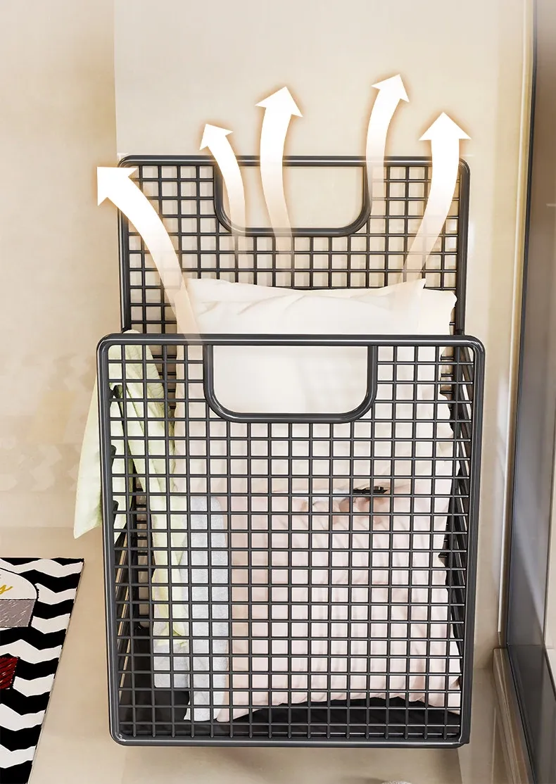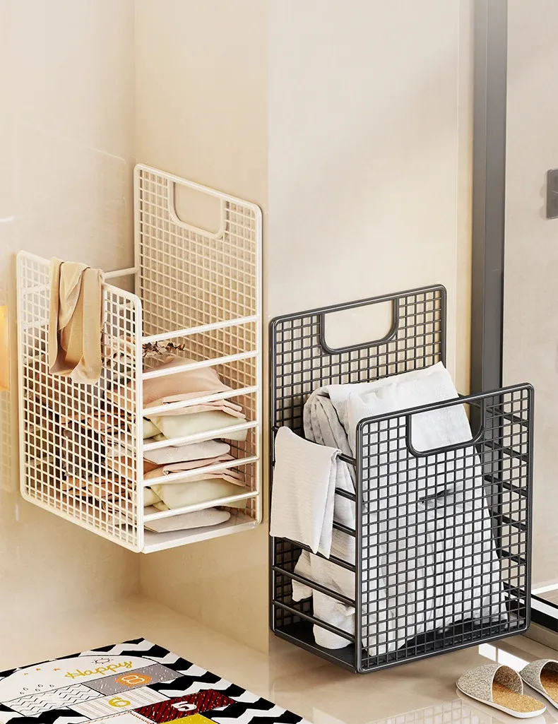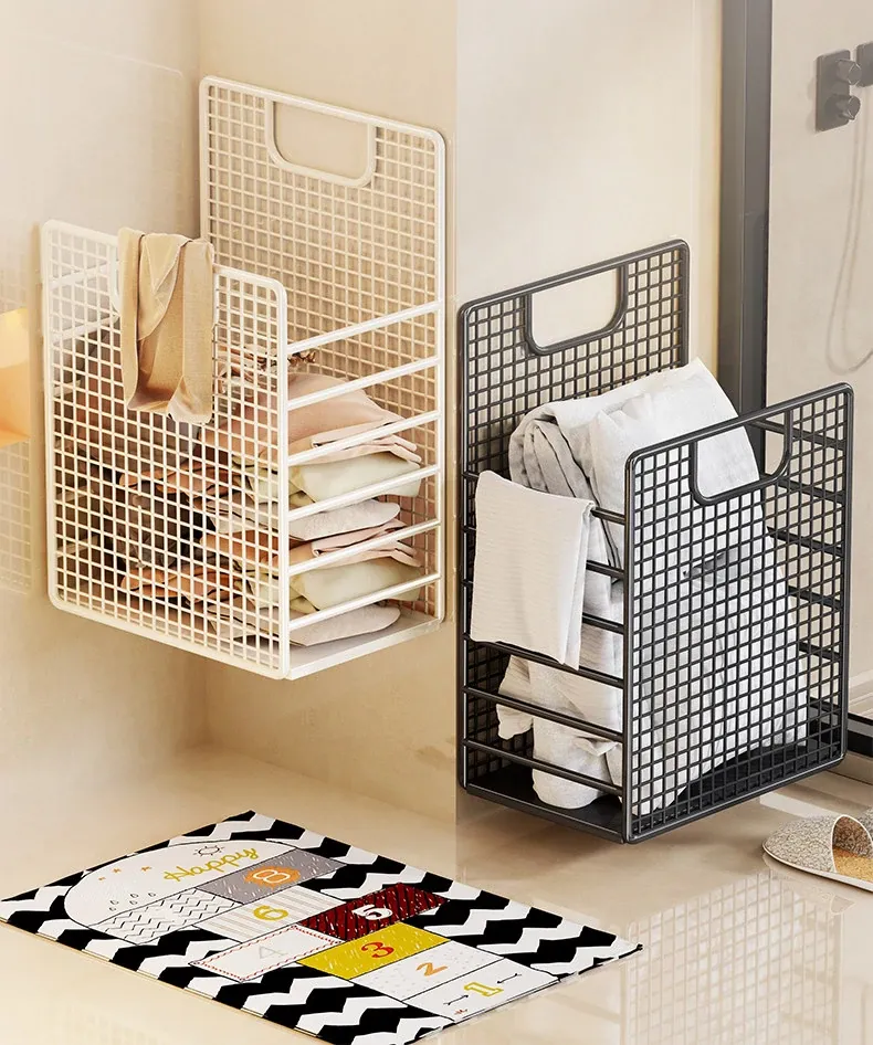 Large Capacity Wall-Mounted Laundry Basket - No Drill Required, Perfect for Storing Dirty Clothes in Bathroom or Shower. Ideal for Home Organization and Space Saving!