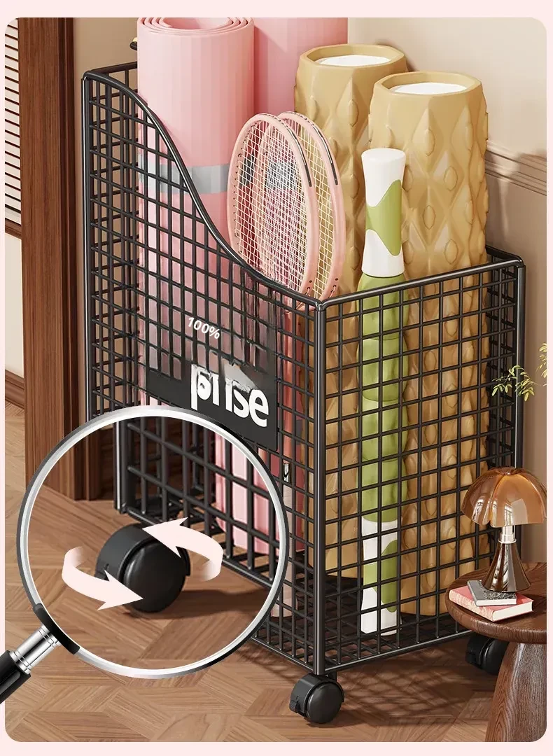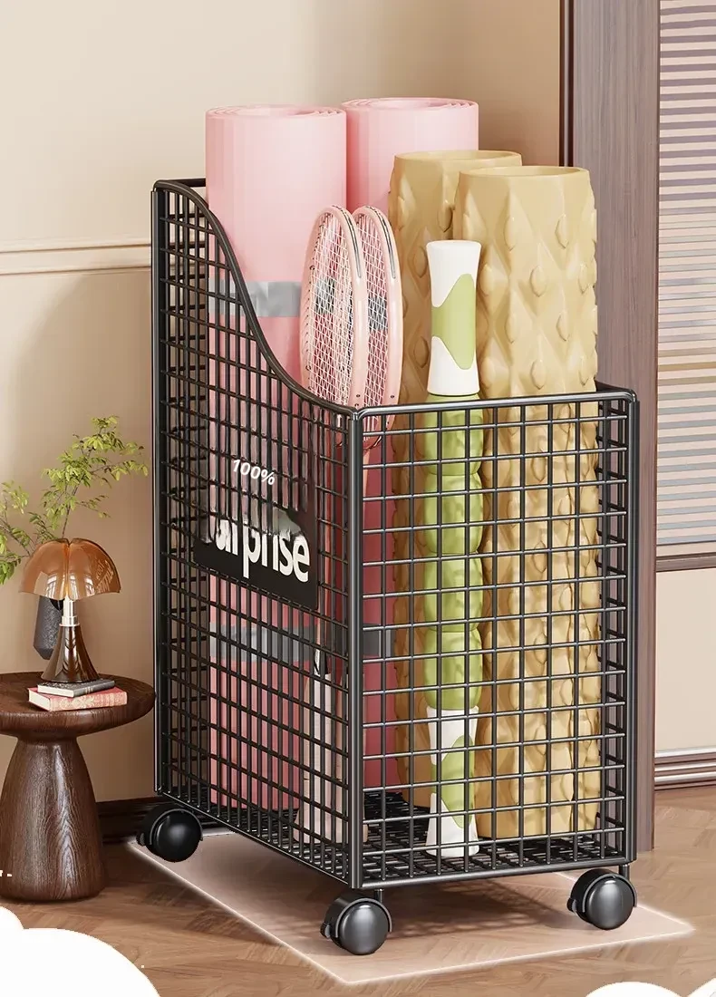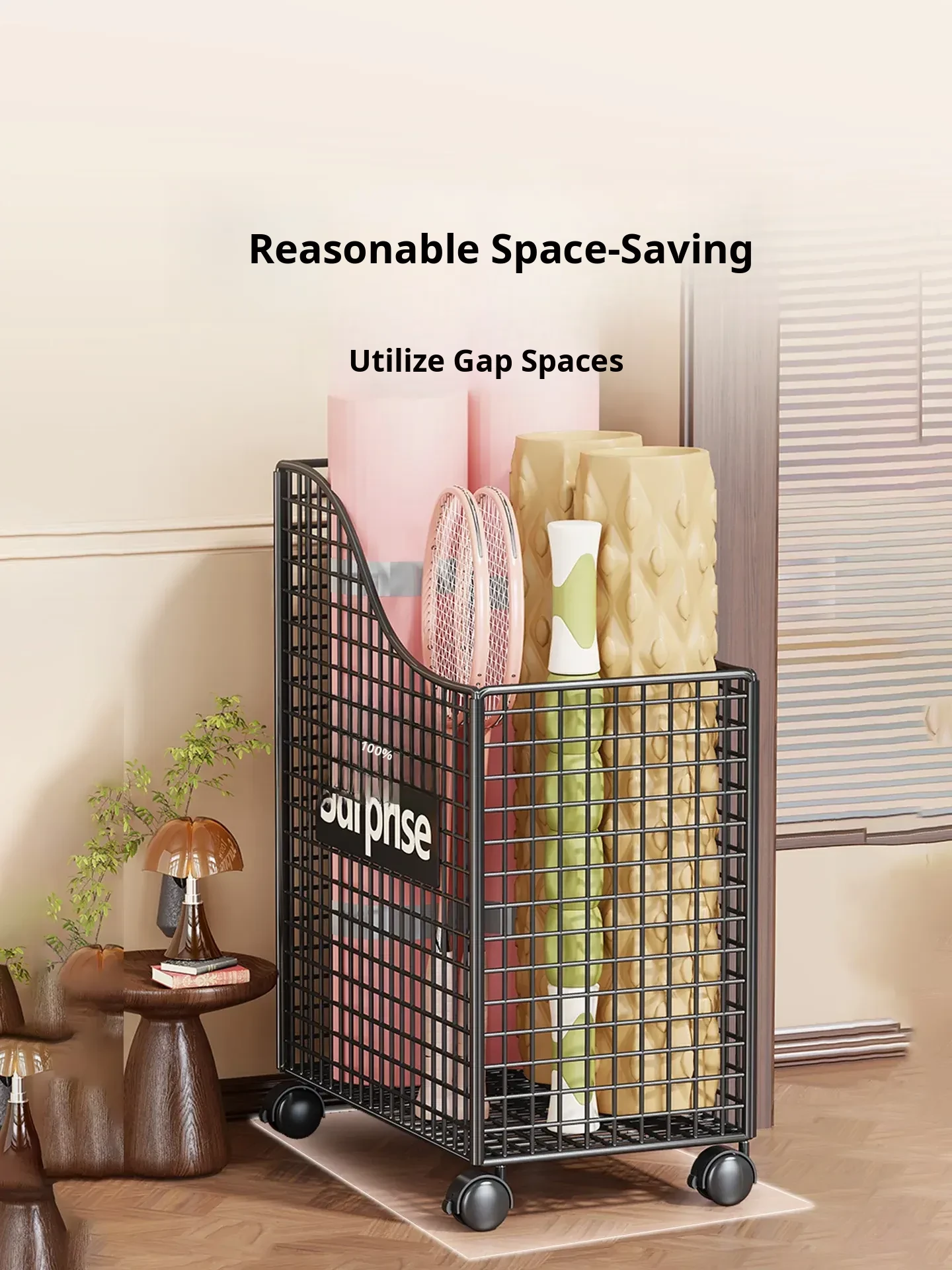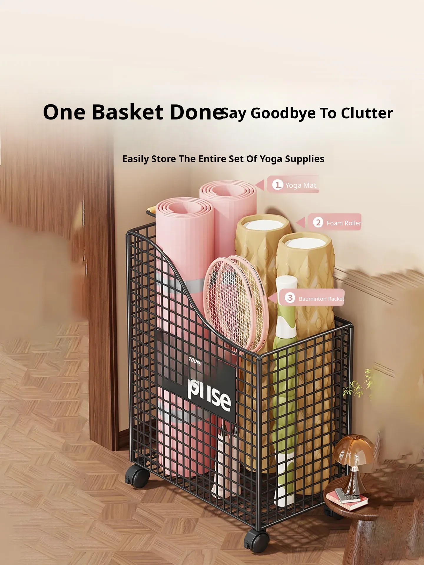 Large Capacity Yoga Mat Storage Basket with Wheels - Portable Foam Roller Organizer for Home Gym Equipment, Perfect for Narrow Spaces!
