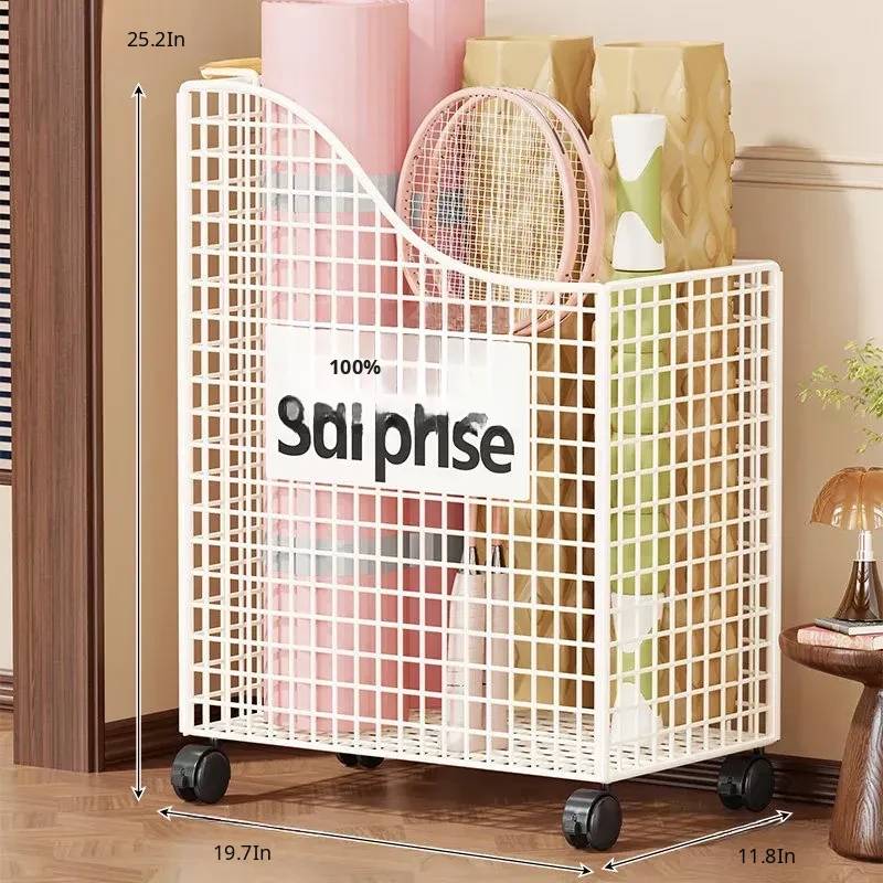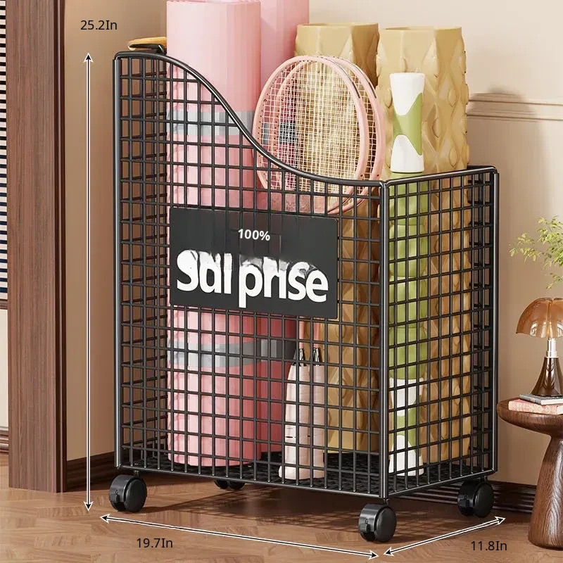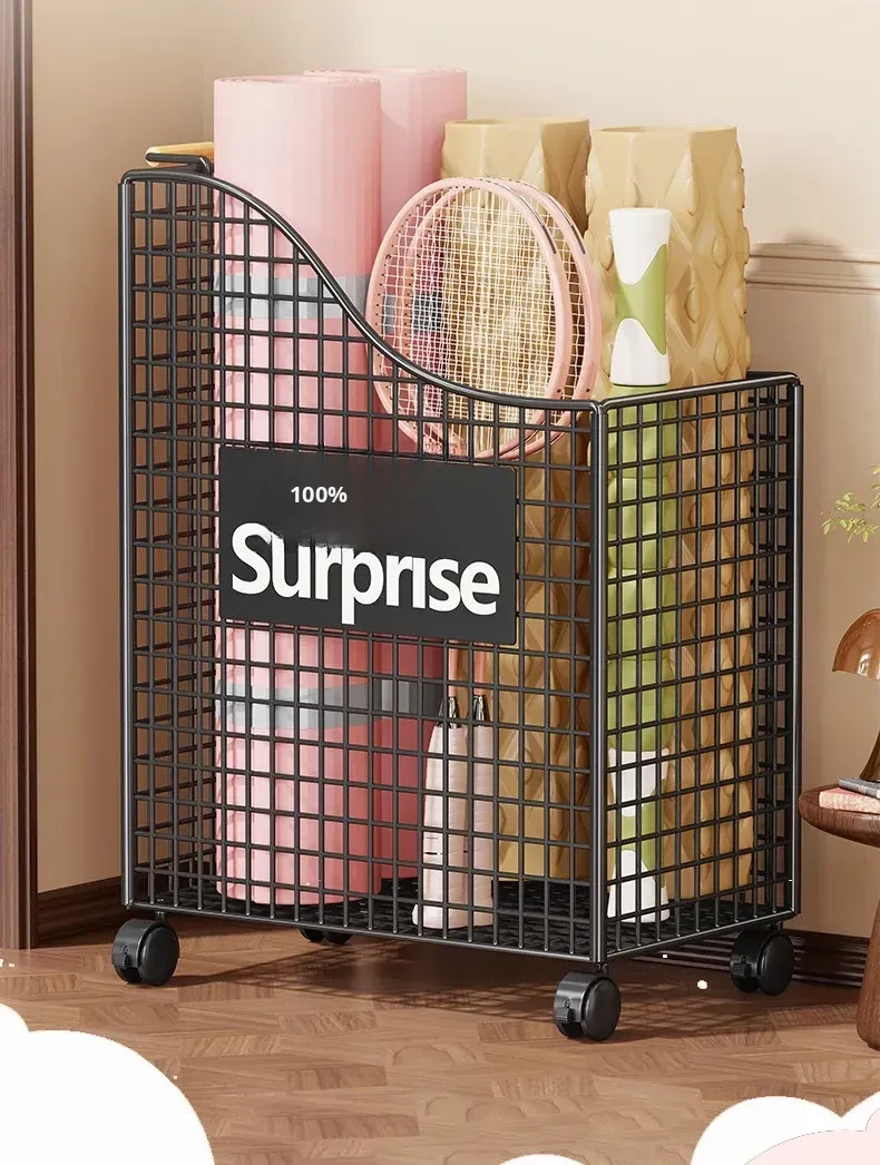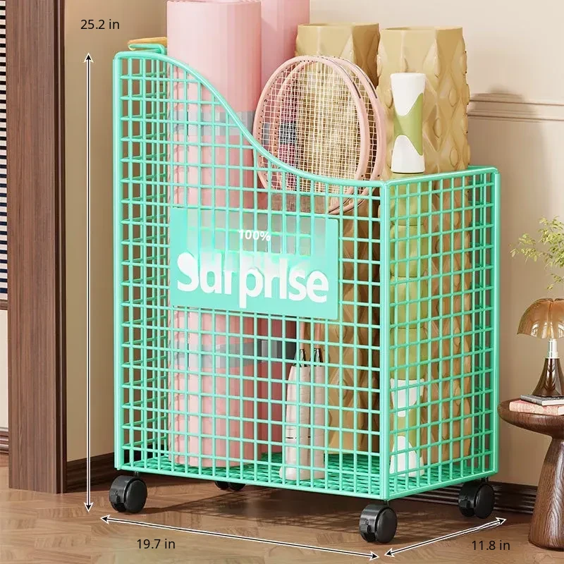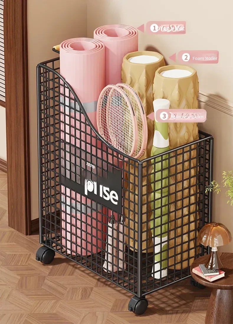 Large Capacity Yoga Mat Storage Basket with Wheels - Portable Foam Roller Organizer for Home Gym Equipment, Perfect for Narrow Spaces!