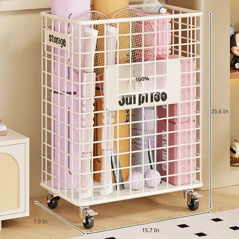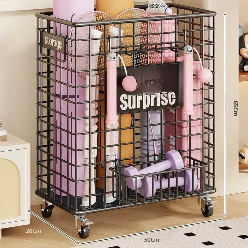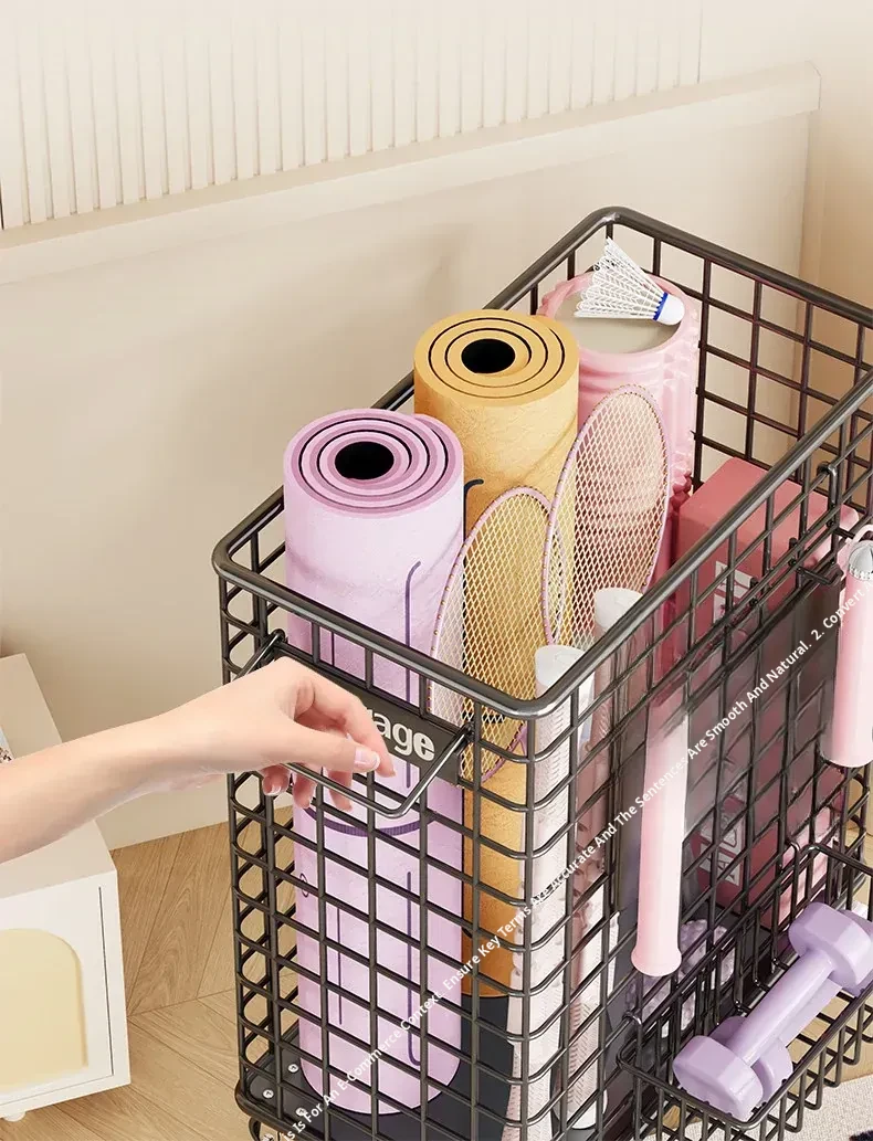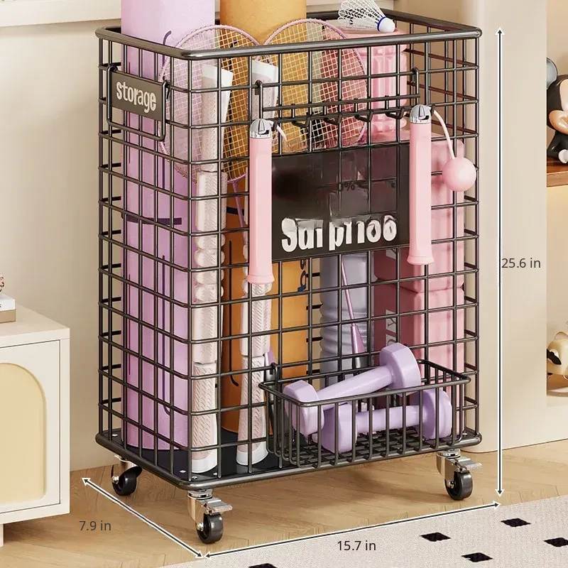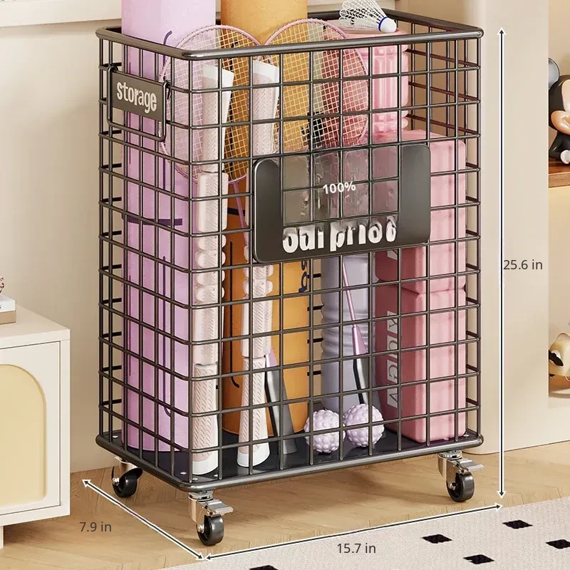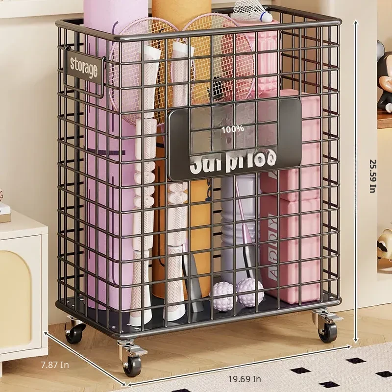 Large Yoga Mat Storage Basket with Wheels - Versatile Organizer for Badminton Rackets and Sports Equipment, Perfect for Home Gym Essentials