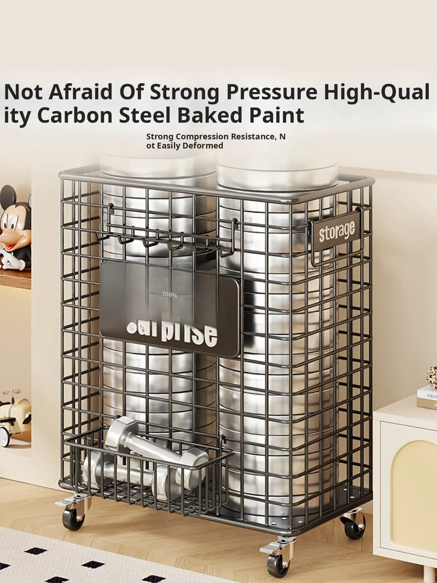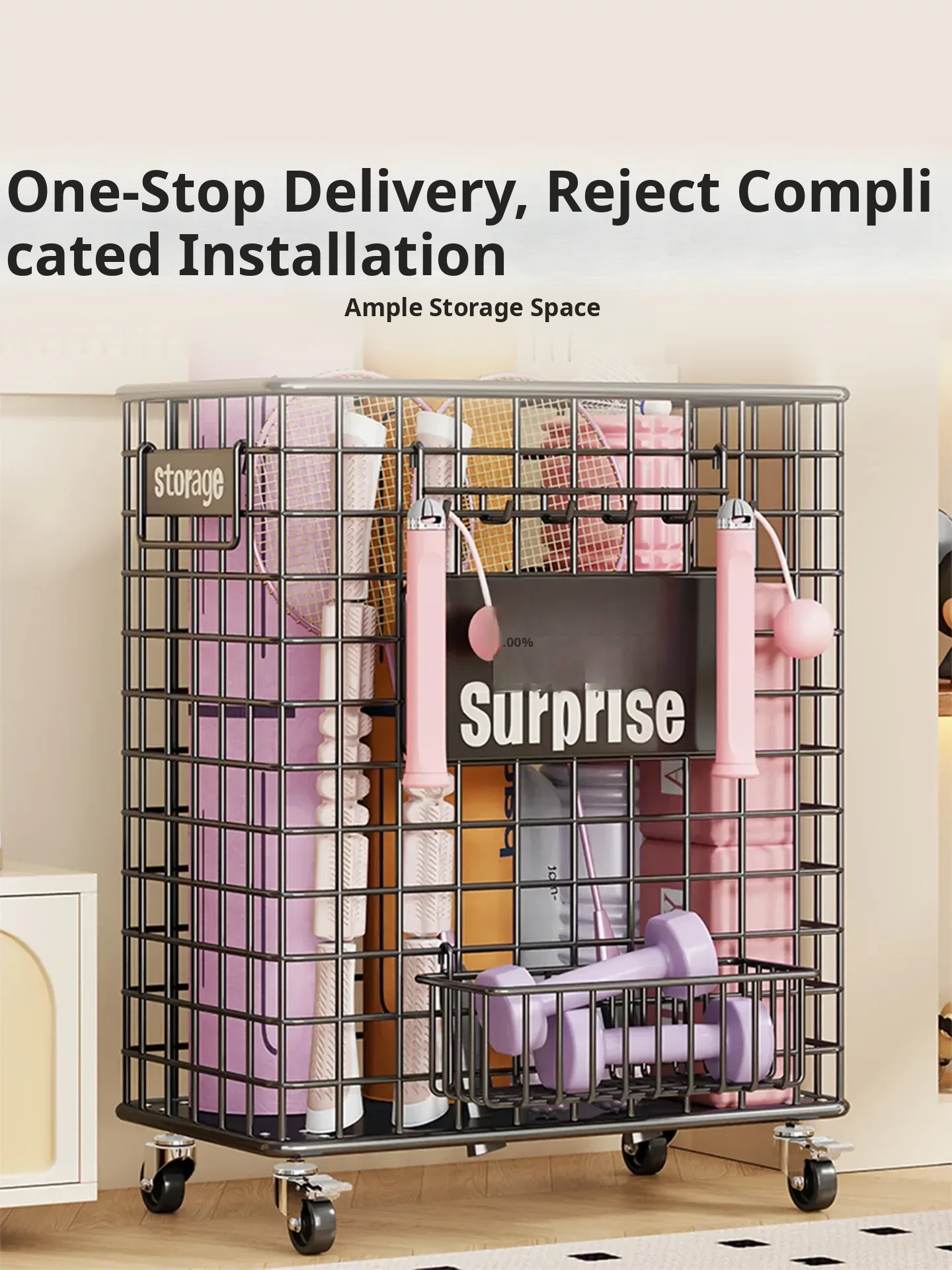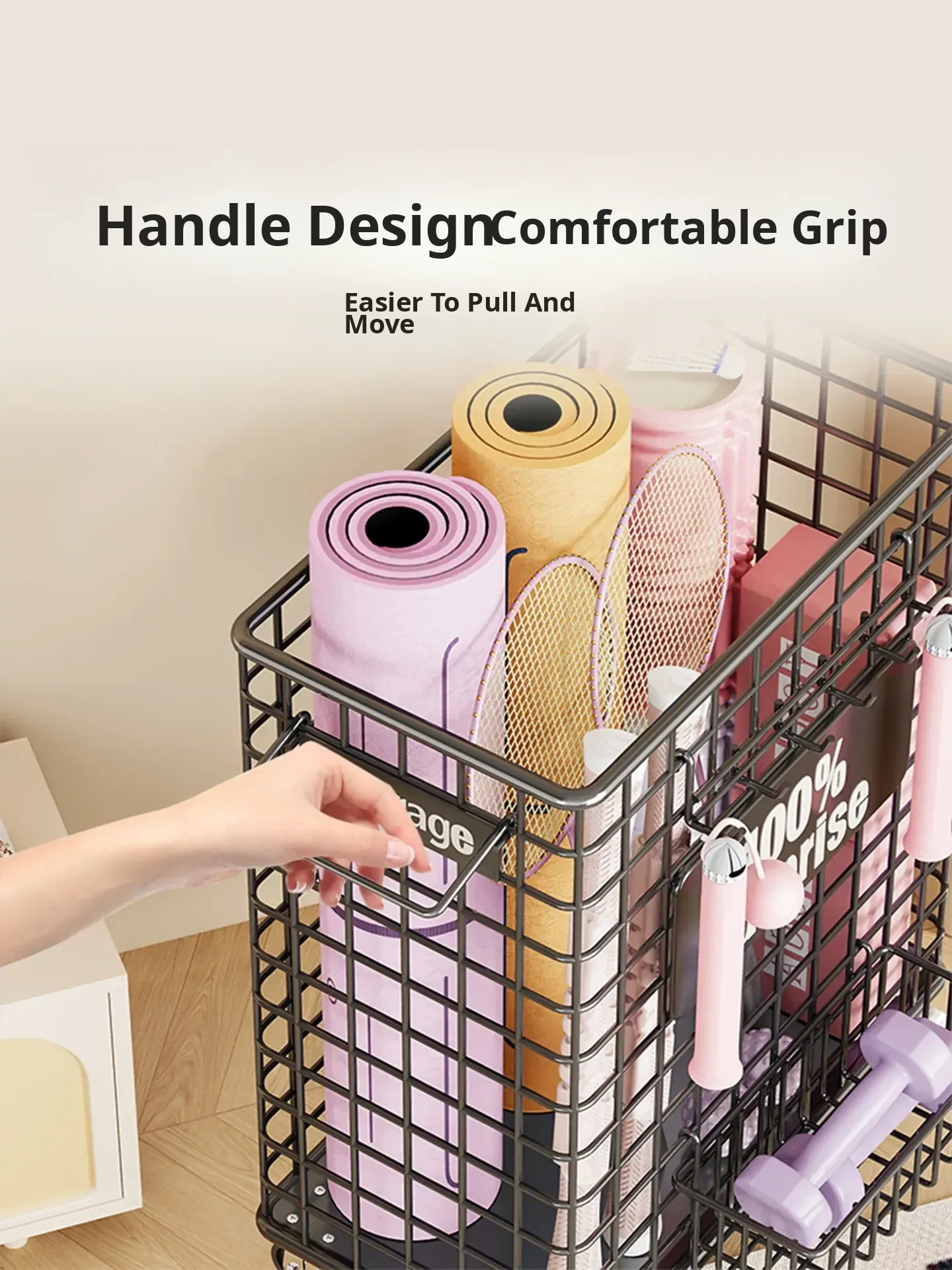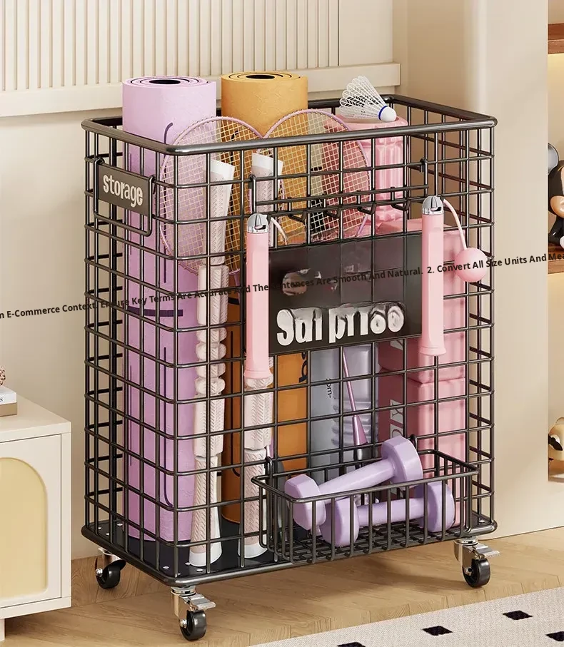 Large Yoga Mat Storage Basket with Wheels - Versatile Organizer for Badminton Rackets and Sports Equipment, Perfect for Home Gym Essentials