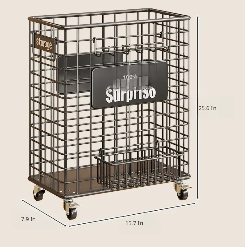 Black Small Size with Wheels + Hanging Basket and Hanging Hooks