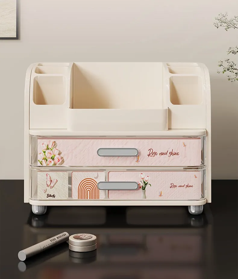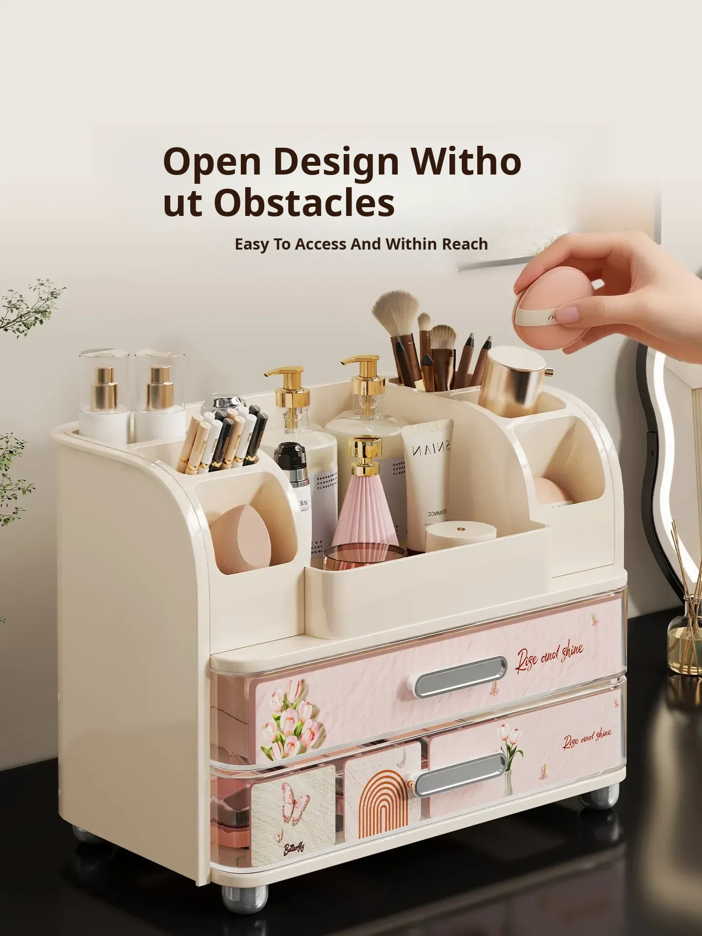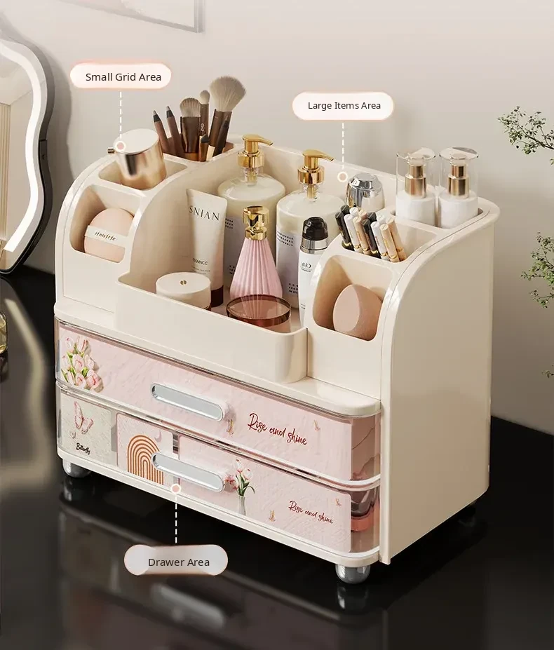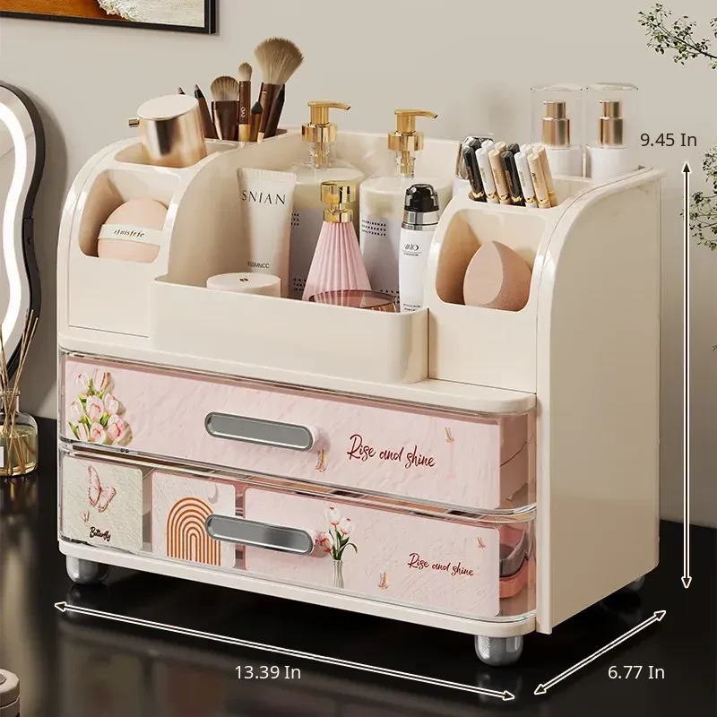 Luxury Dustproof Makeup Organizer with Multi-Layer Drawers - Elegant Vanity Storage for Skincare Products, Lipsticks, and Eyeliners - Perfect for a Stylish and Tidy Desktop!