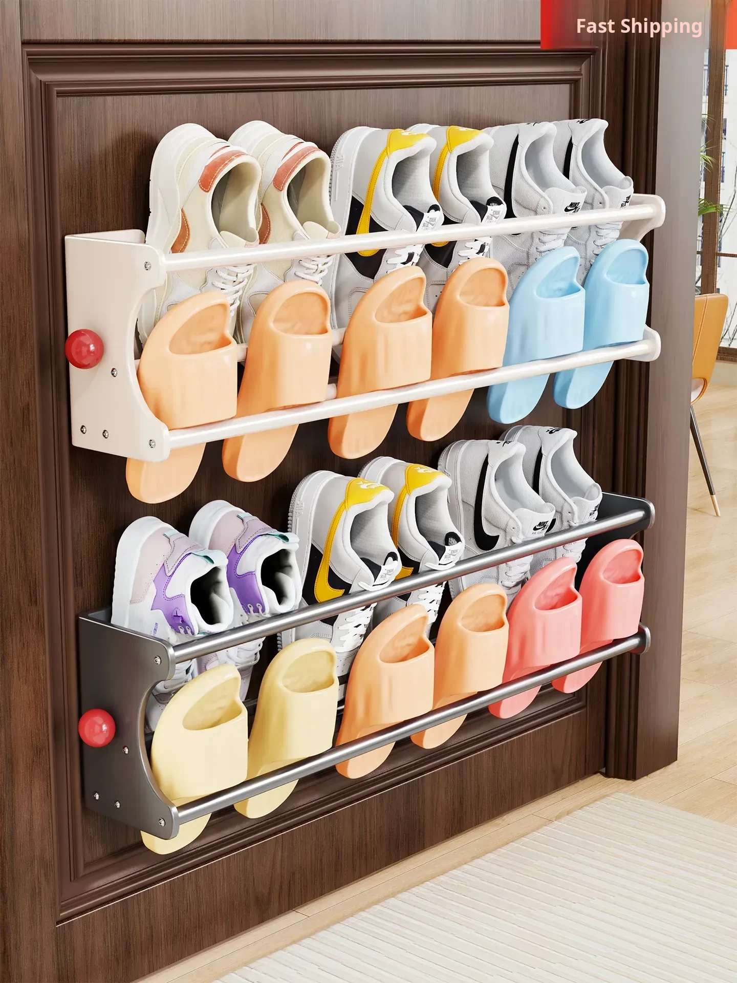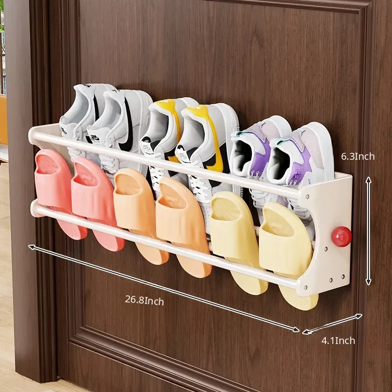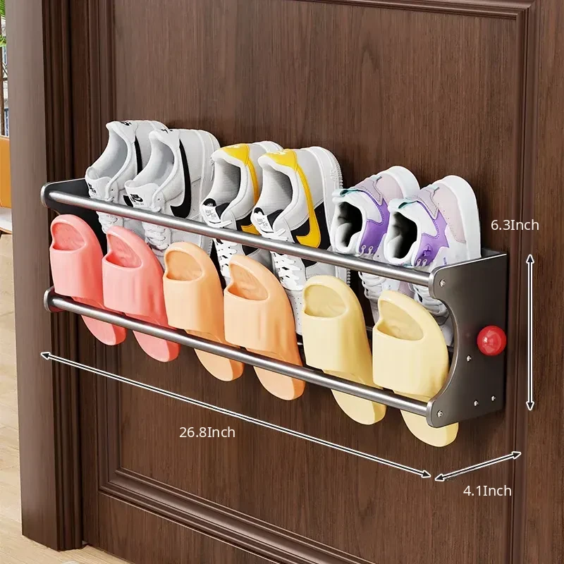 Magnetic Double-Layer Shoe Rack - No-Drill Bathroom Slipper Storage with Drainage Function, Versatile Home Organizer for Convenient Shoe Placement