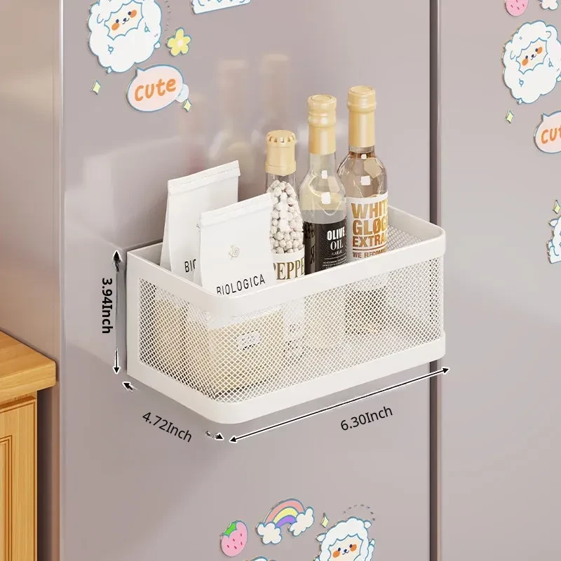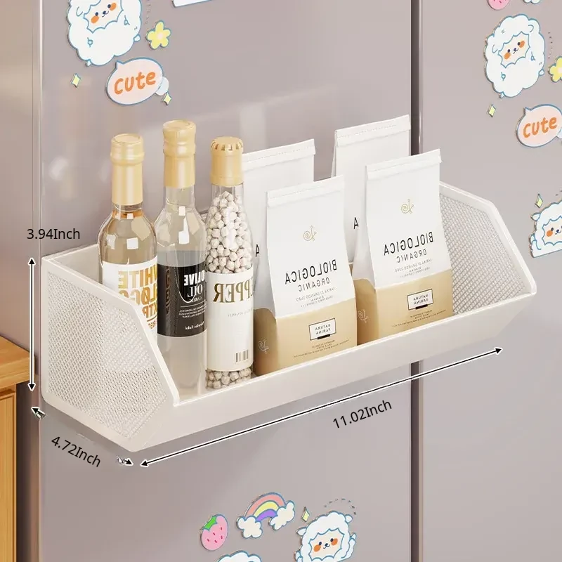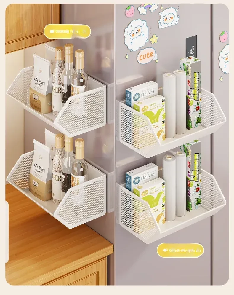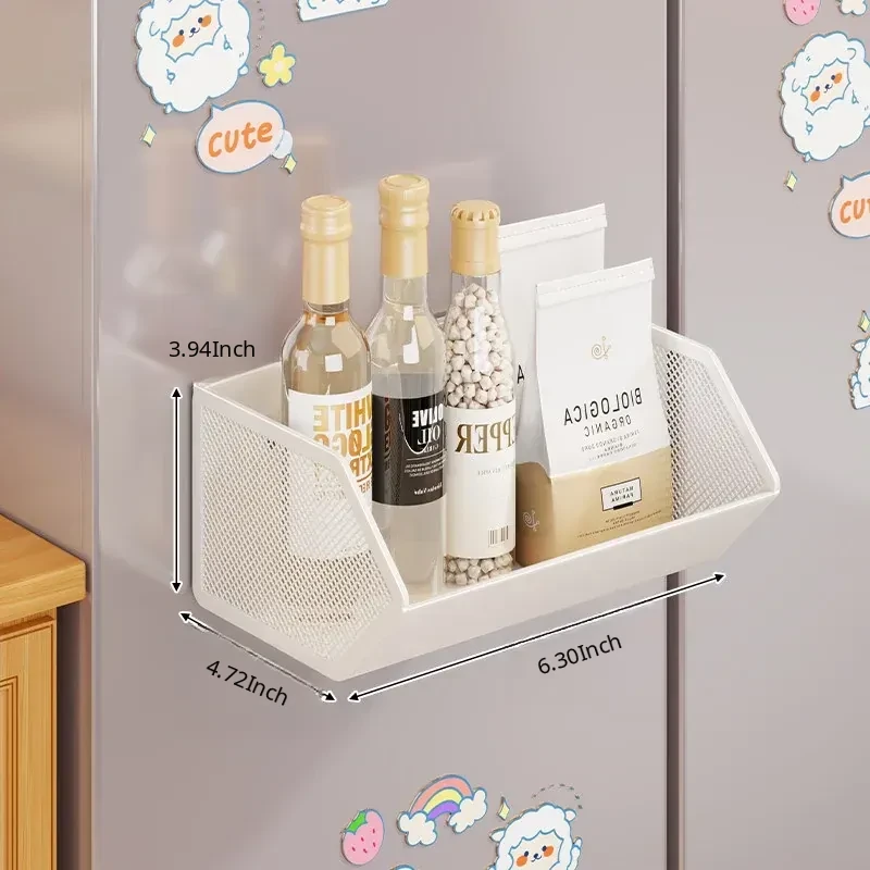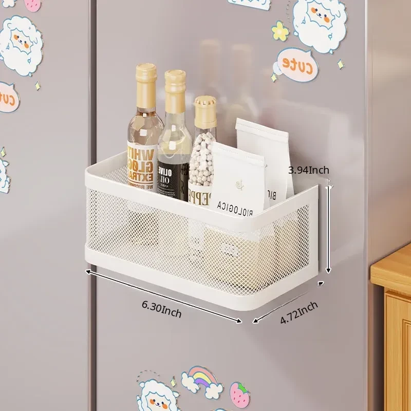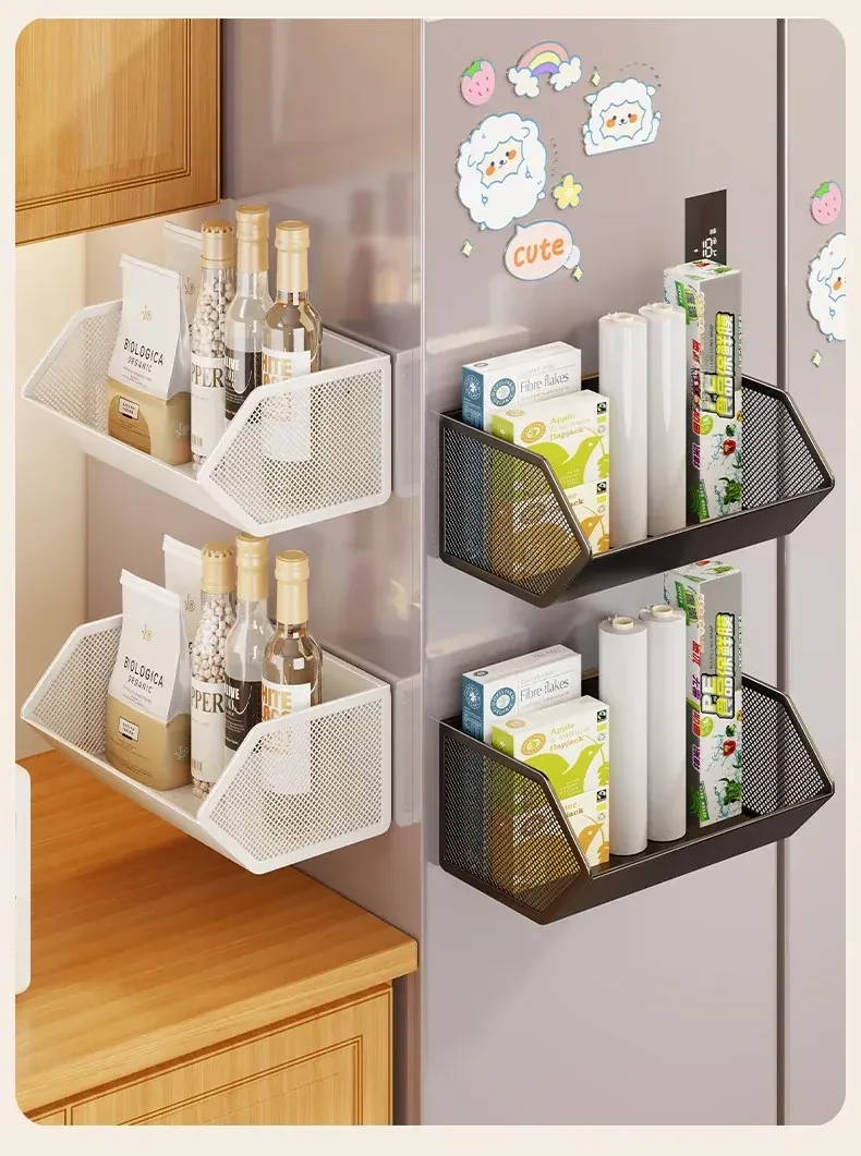 Magnetic Multifunctional Storage Basket for Kitchen – No Drill Wall-Mounted Side Shelf for Refrigerator, Perfect for Cling Film and Spice Organization, Space-Saving Solution for Home Use
