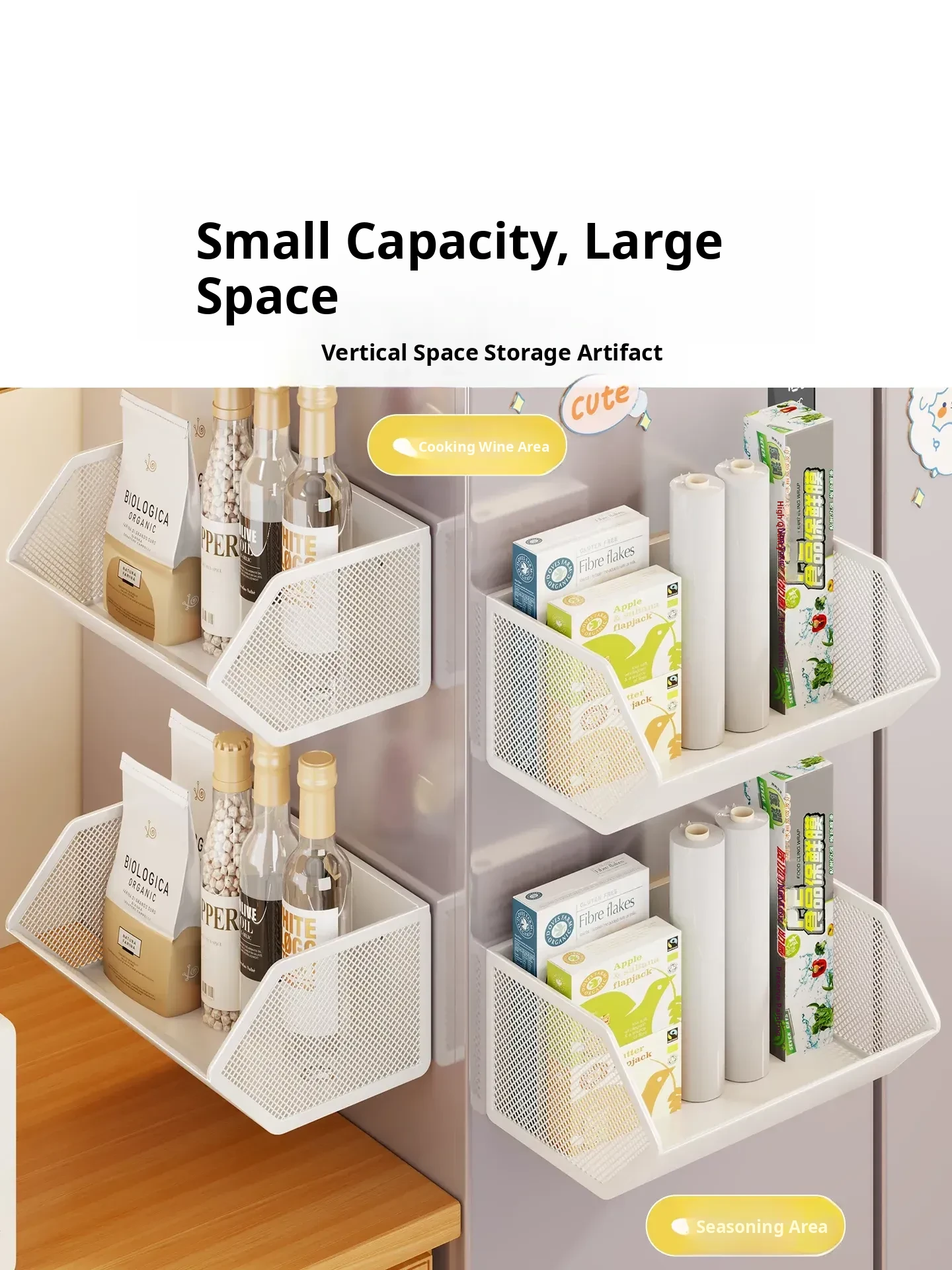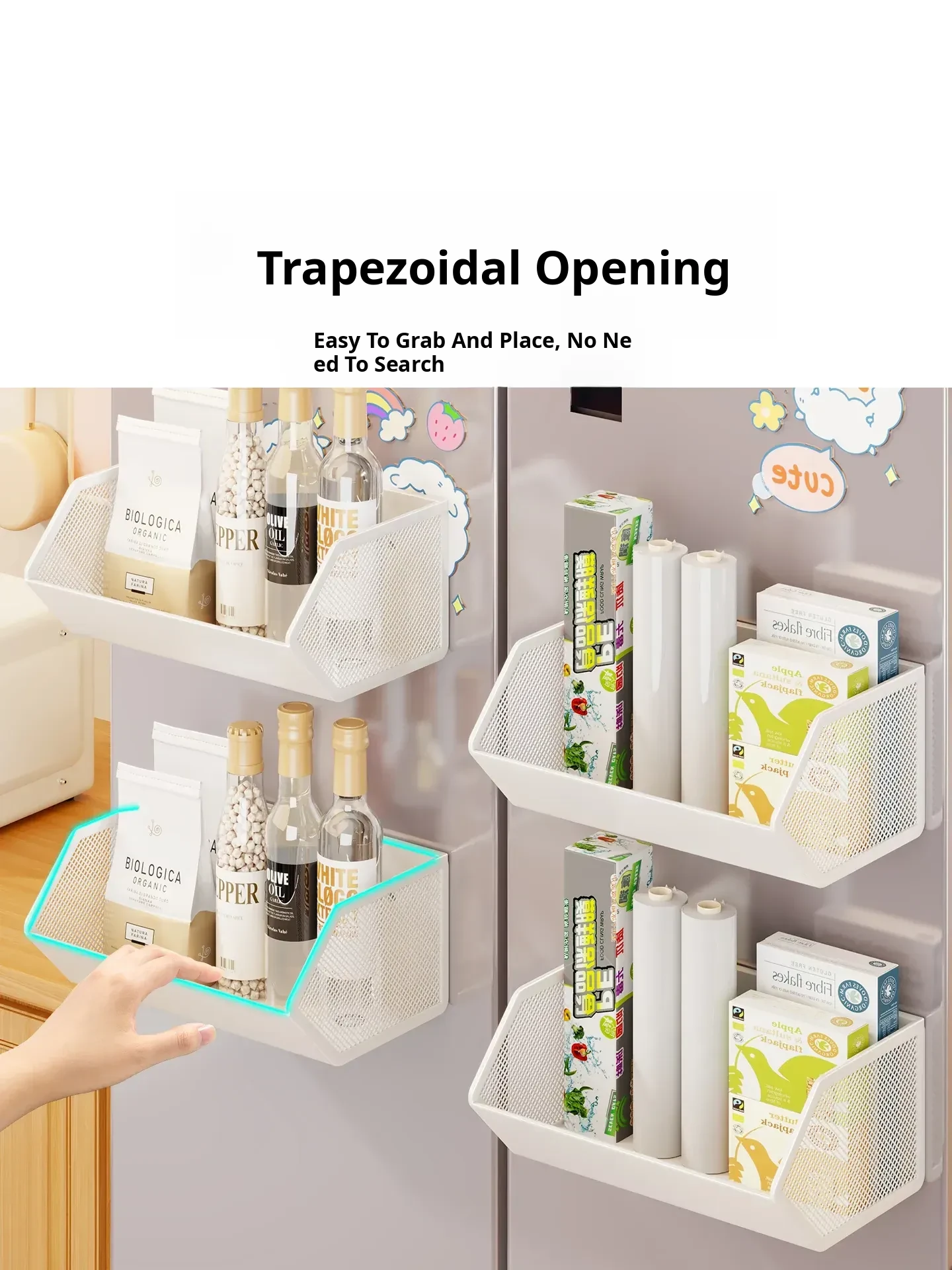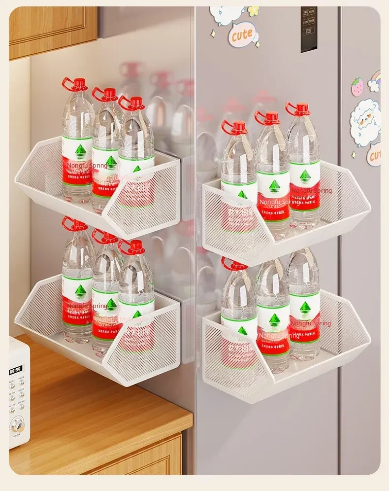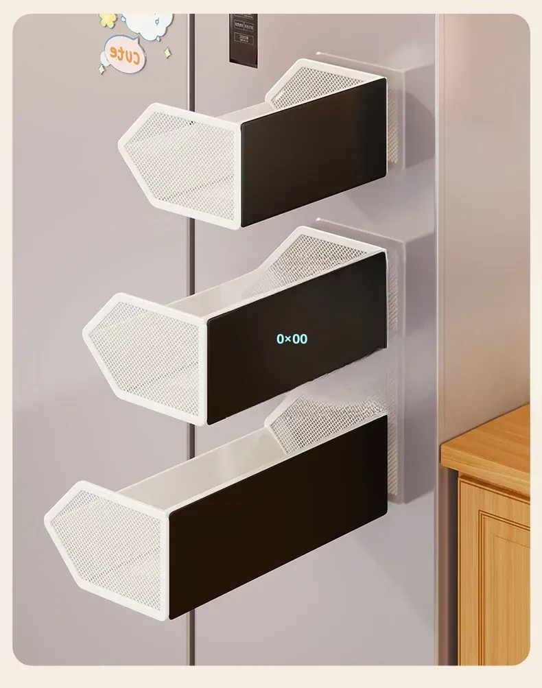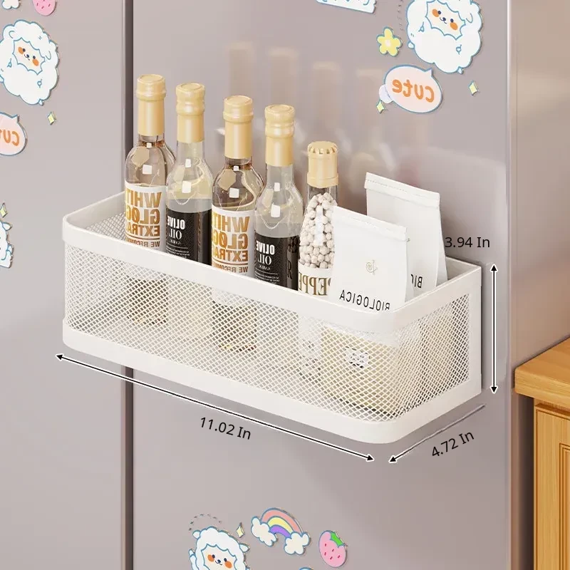 Magnetic Multifunctional Storage Basket for Kitchen – No Drill Wall-Mounted Side Shelf for Refrigerator, Perfect for Cling Film and Spice Organization, Space-Saving Solution for Home Use