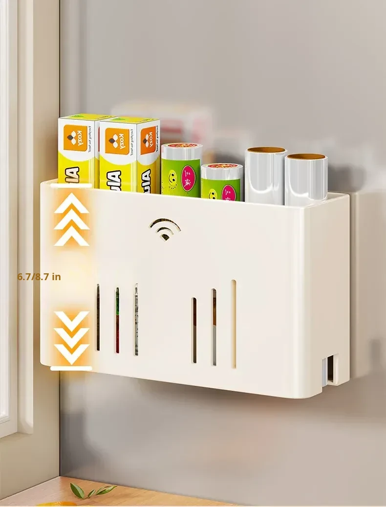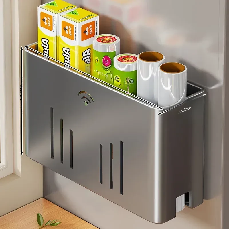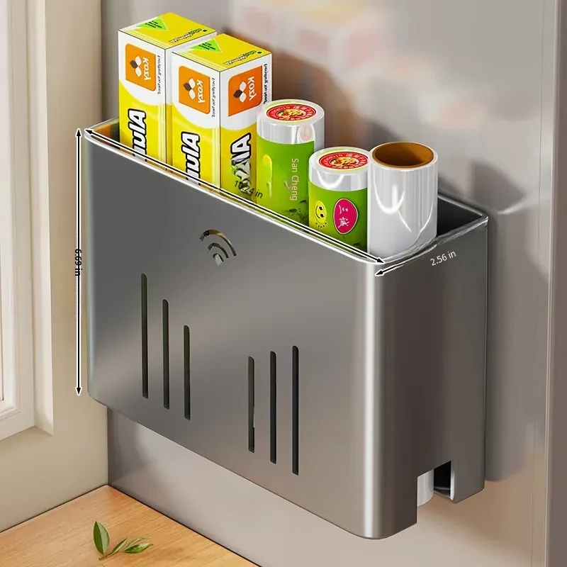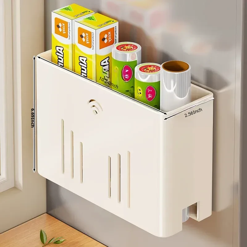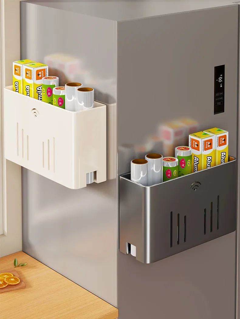 Magnetic Storage Rack for Kitchen: No-Drill Paper Towel Holder & Cling Film Organizer, Side-Mounted for Refrigerator - Convenient and Space-Saving Solution for Your Home!