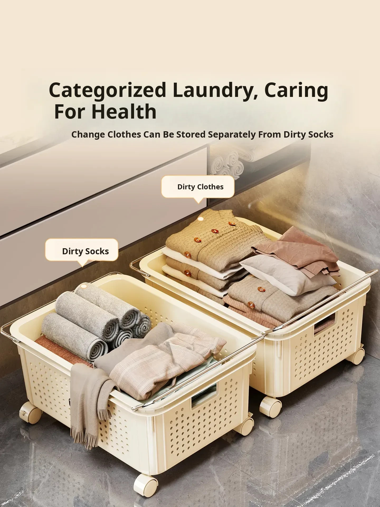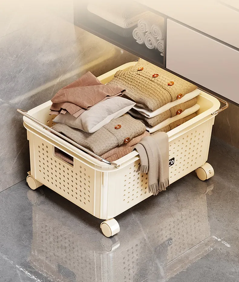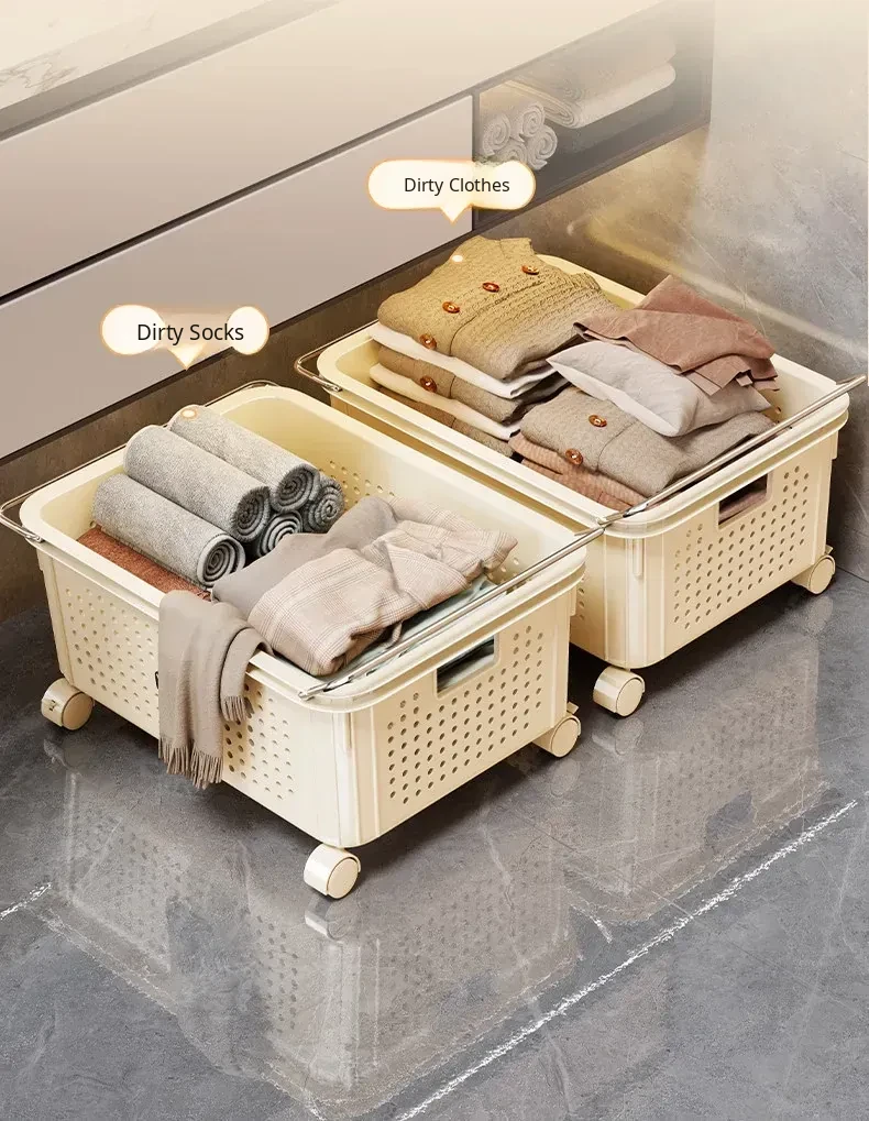 Multi-Functional Bathroom Storage Rack with Wheels - Under-Sink Organizer for Vanity, Laundry Basket, and Versatile Storage Solution for Your Bathroom