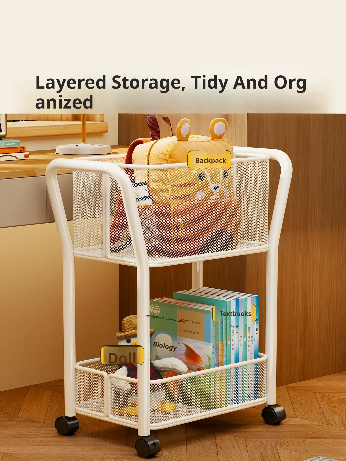 Multi-Functional Rolling Bookshelf with Storage Rack - Portable Book Cart for Home Use, Perfect for Organizing Books and More by Your Desk
