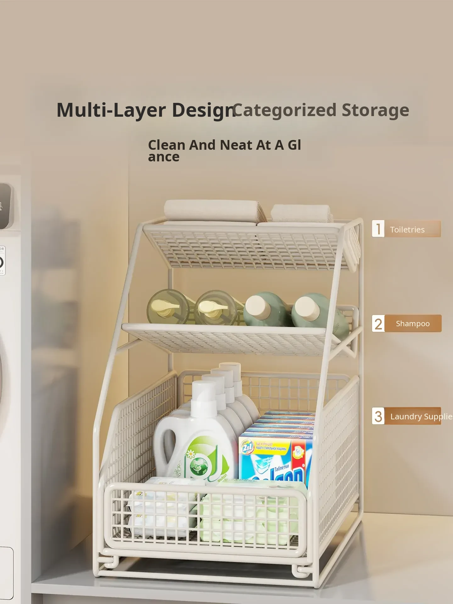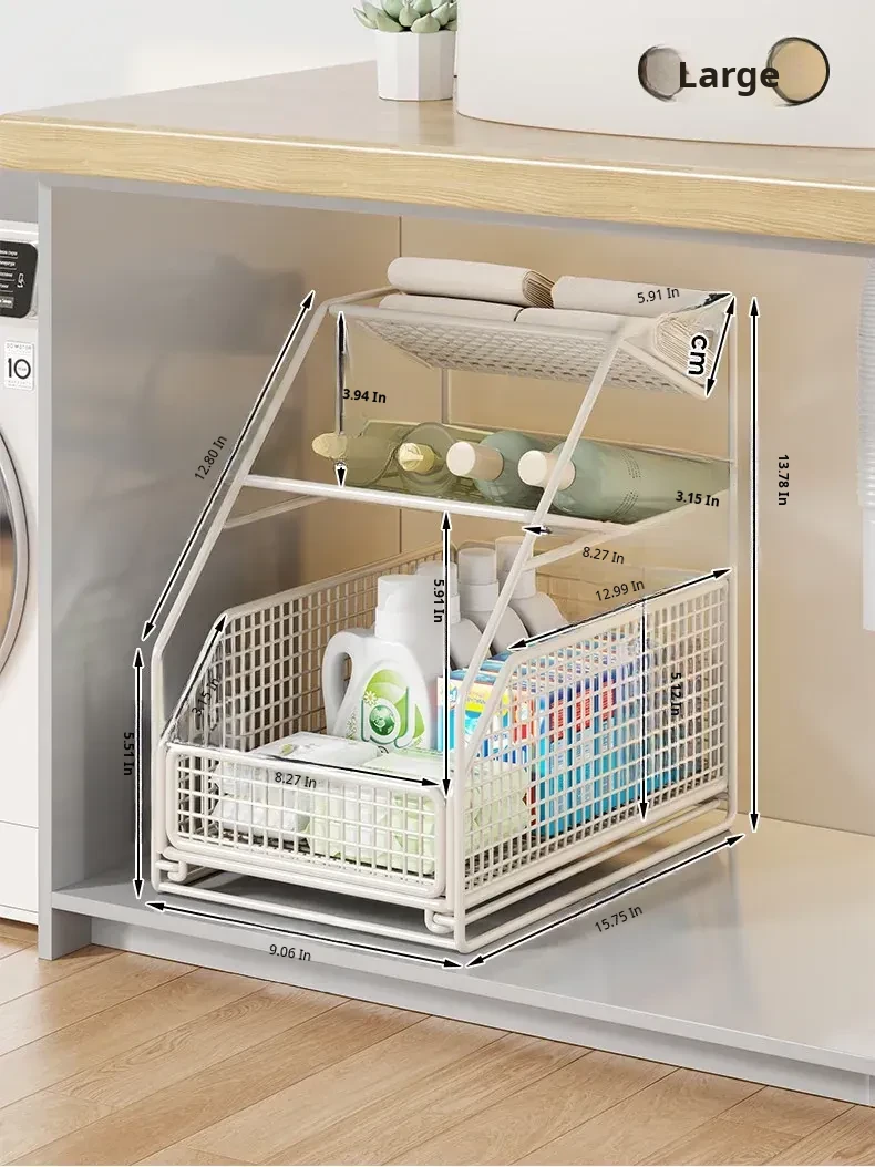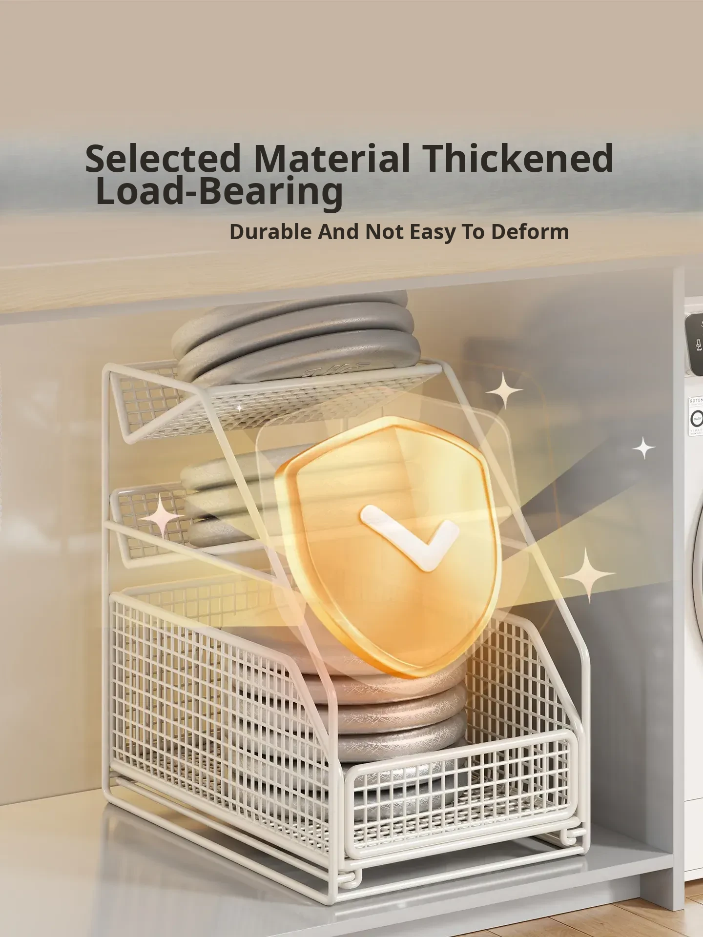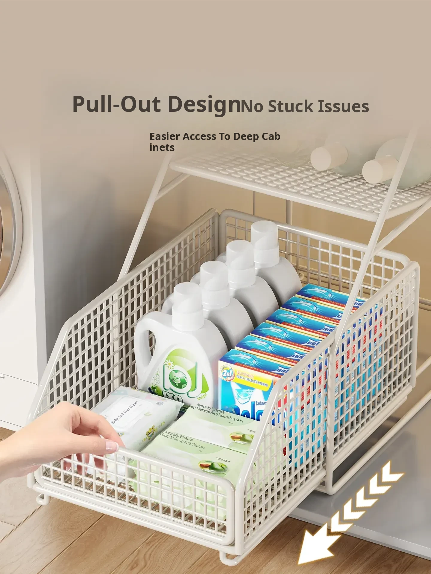 Multi-Layer Under-Sink Storage Rack for Bathroom - Pull-Out Organizer with Extra Deep Baskets for Efficient Space Saving and Easy Access to Your Toiletries and Essentials!
