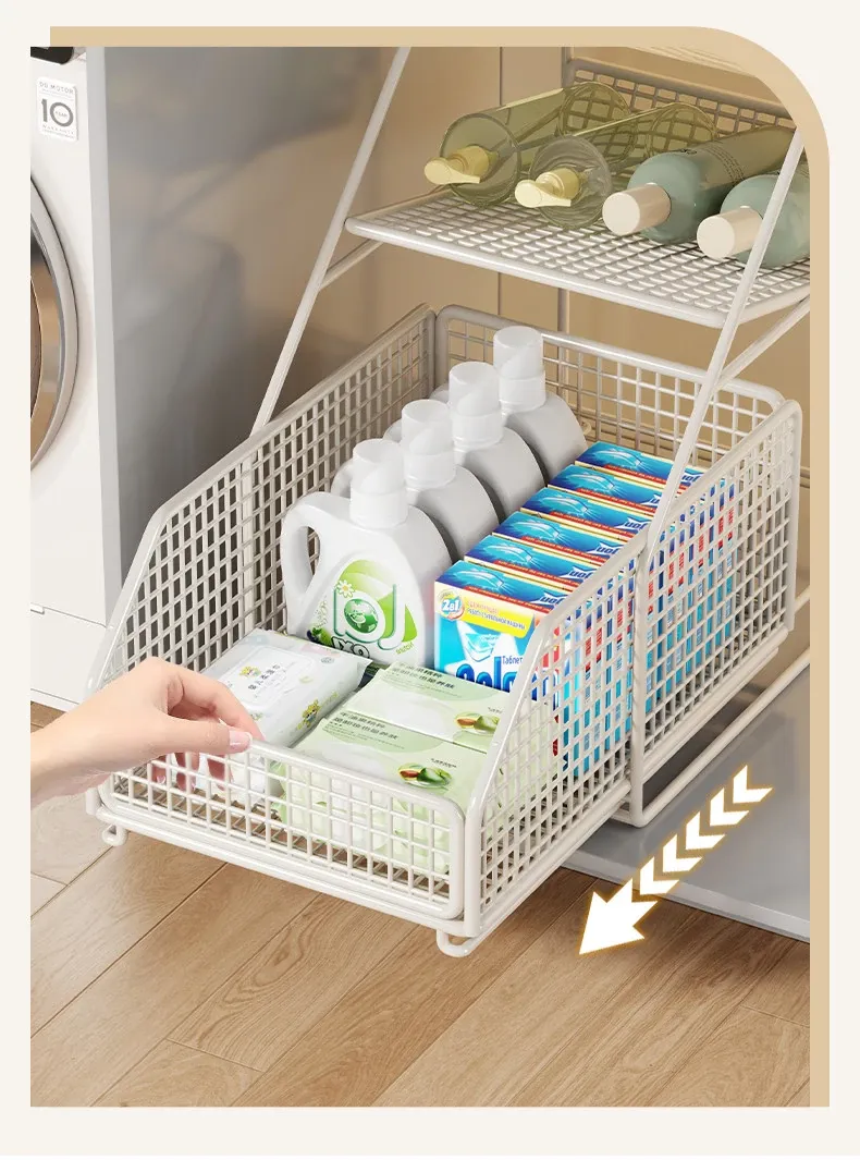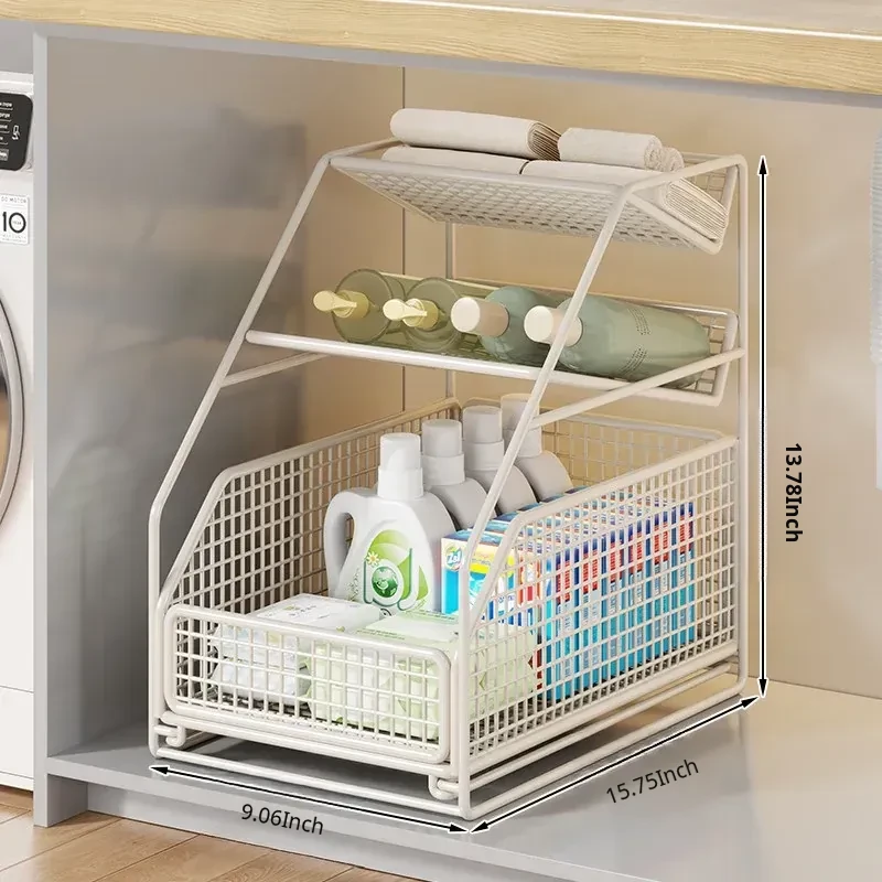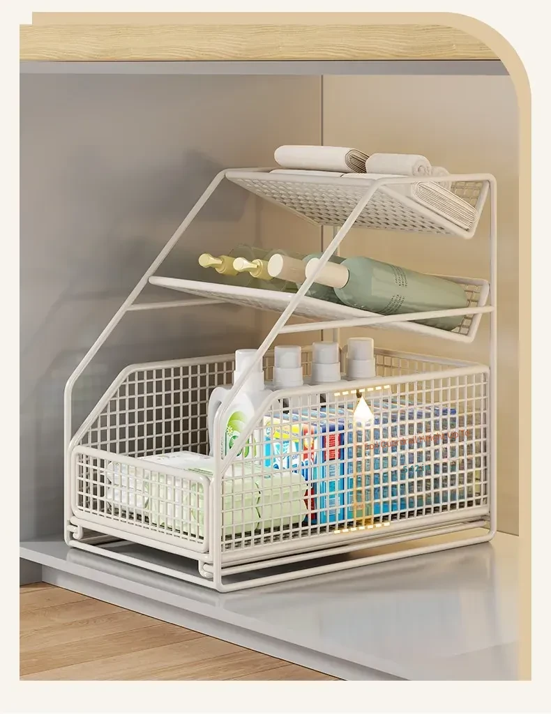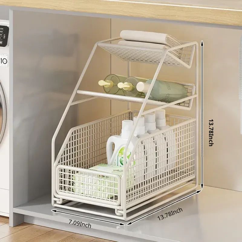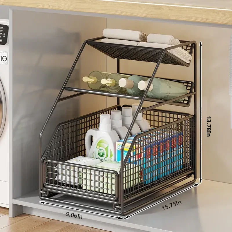 Multi-Layer Under-Sink Storage Rack for Bathroom - Pull-Out Organizer with Extra Deep Baskets for Efficient Space Saving and Easy Access to Your Toiletries and Essentials!