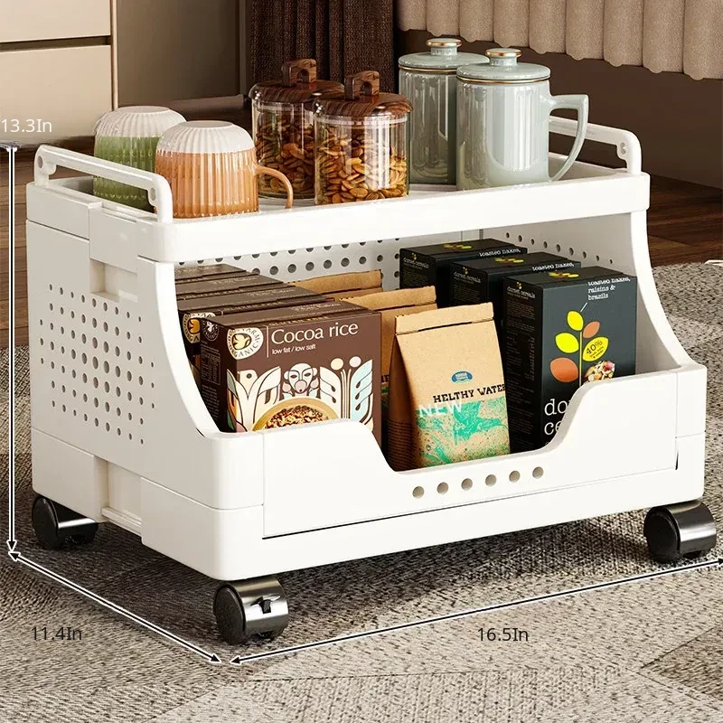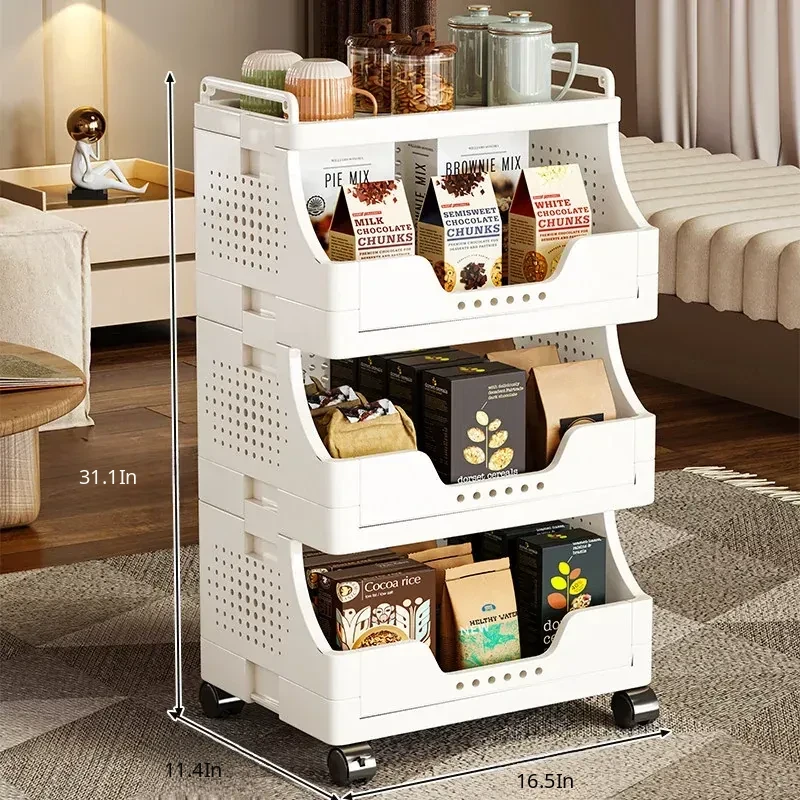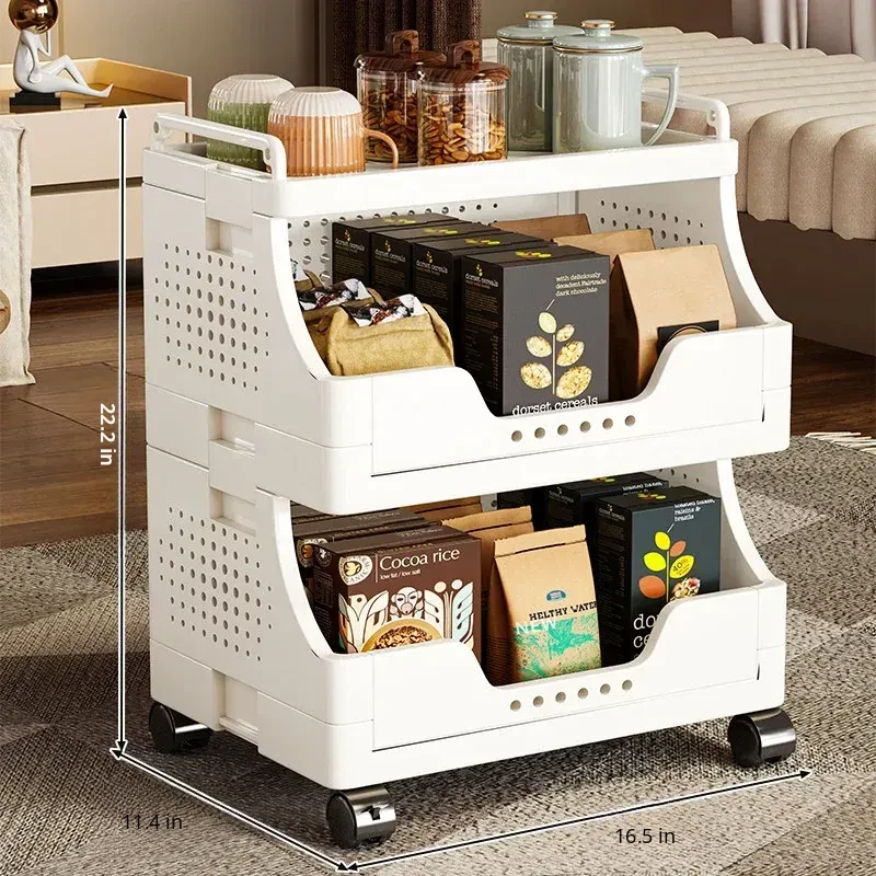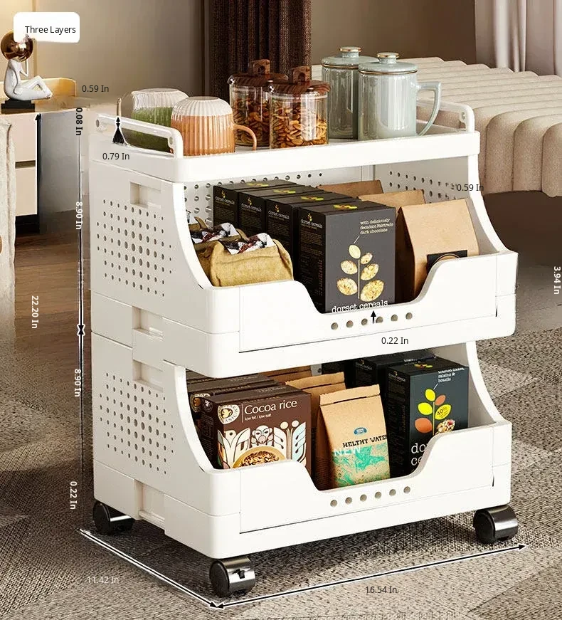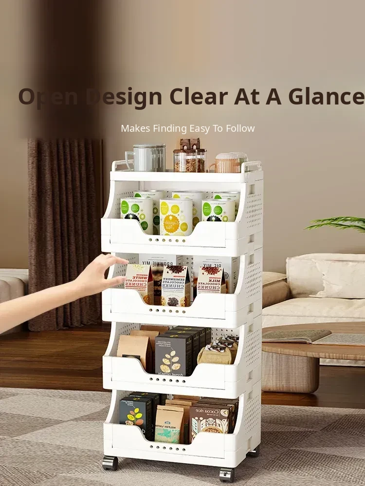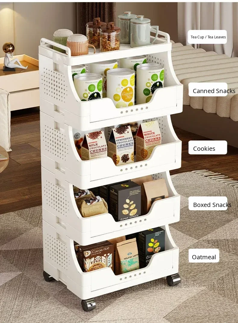 Multi-Tier Rolling Snack Cart - Versatile Storage Rack with Wheels for Living Room, Mobile Bookshelf & Organizer Cabinet