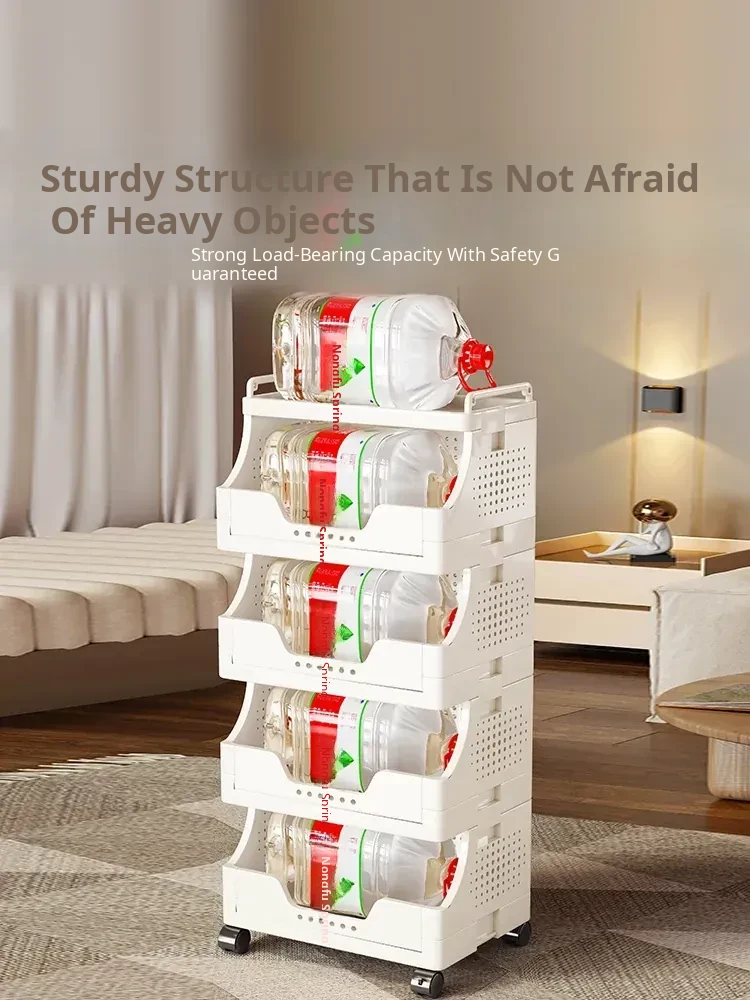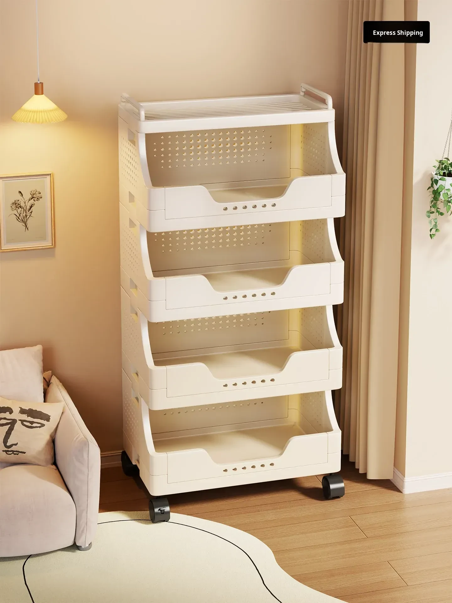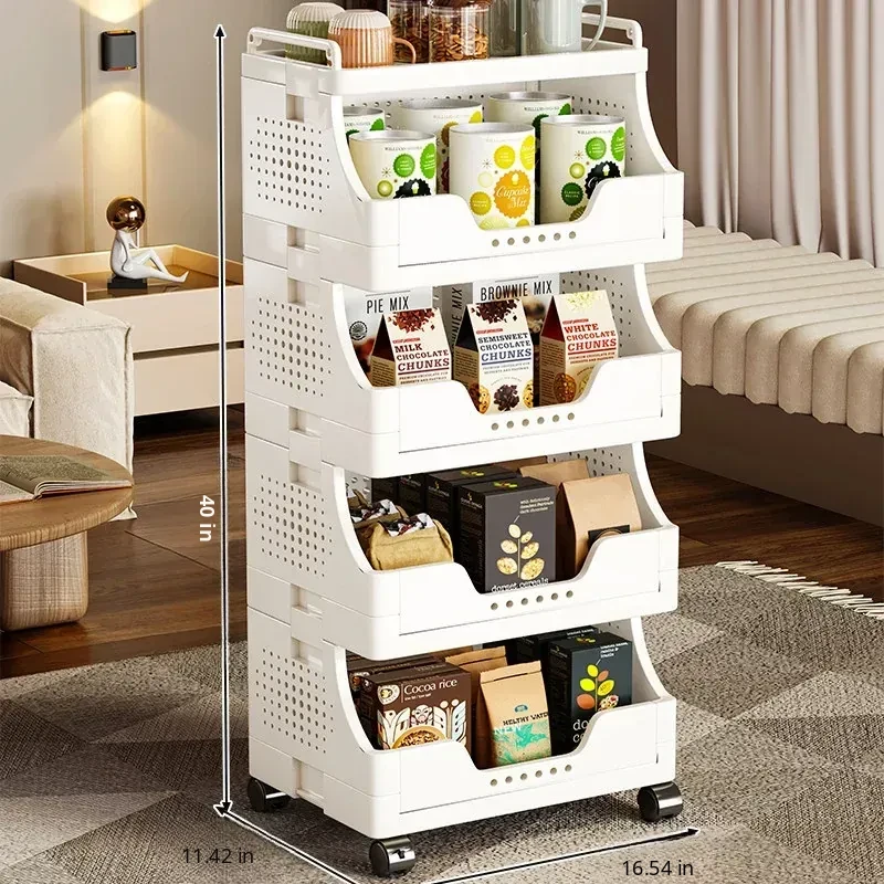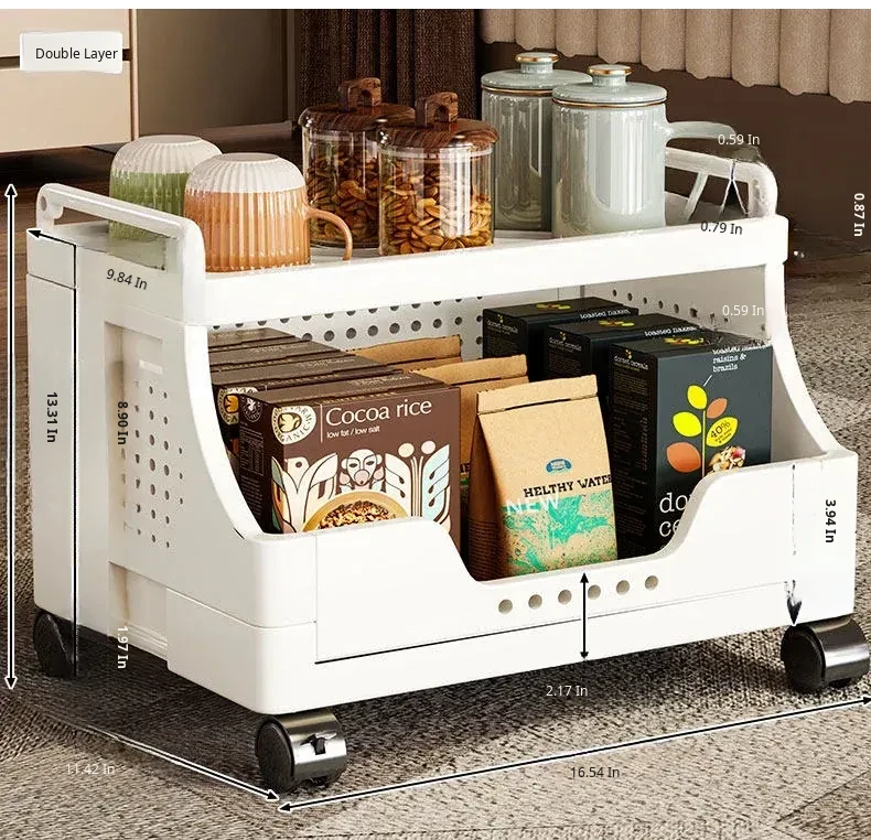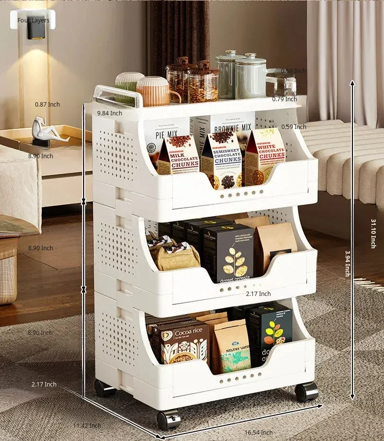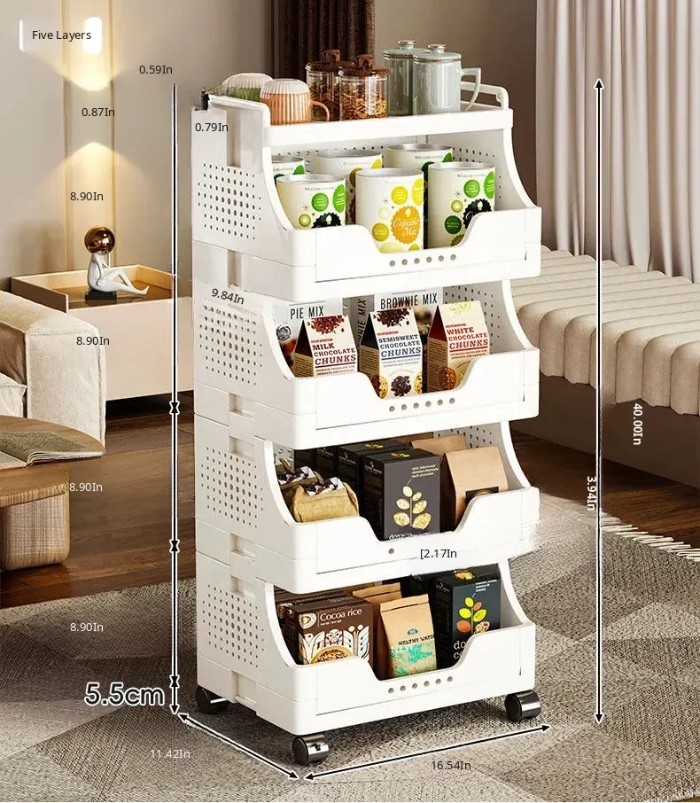 Multi-Tier Rolling Snack Cart - Versatile Storage Rack with Wheels for Living Room, Mobile Bookshelf & Organizer Cabinet