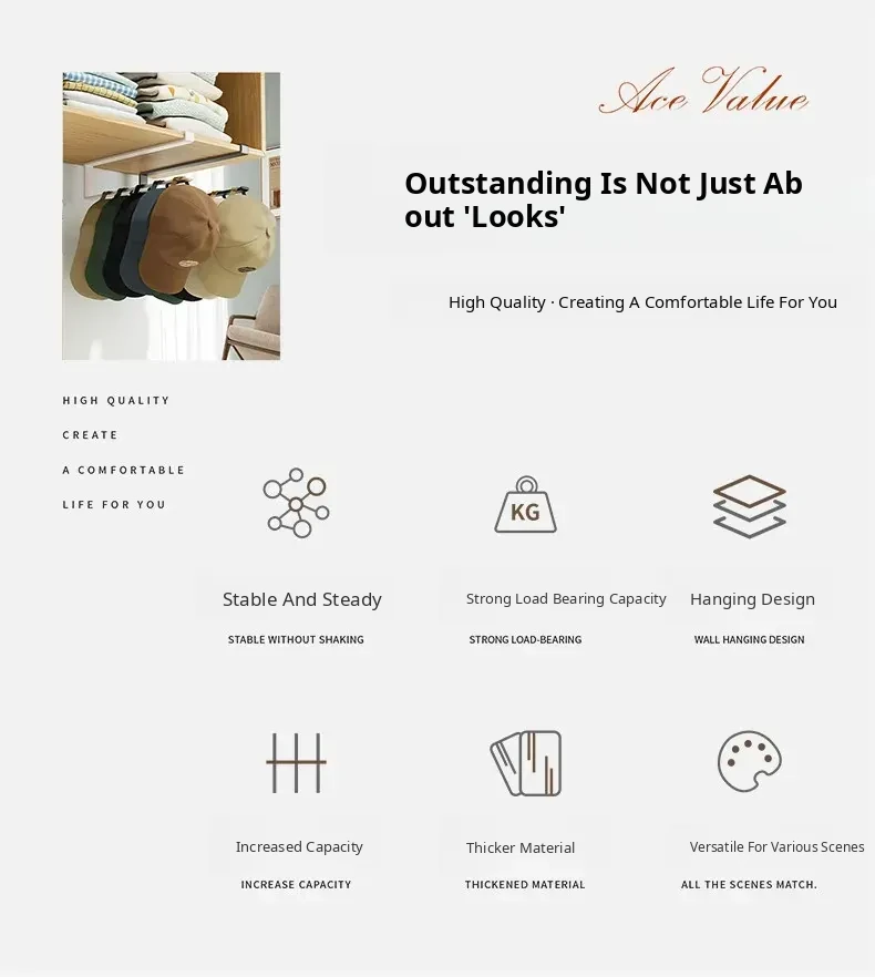 No-Drill Baseball Cap Rack - Space-Saving Hat Organizer for Door or Closet - Stylish and Functional Hanging Design for Home Storage Solutions