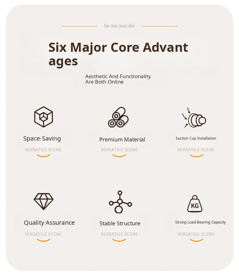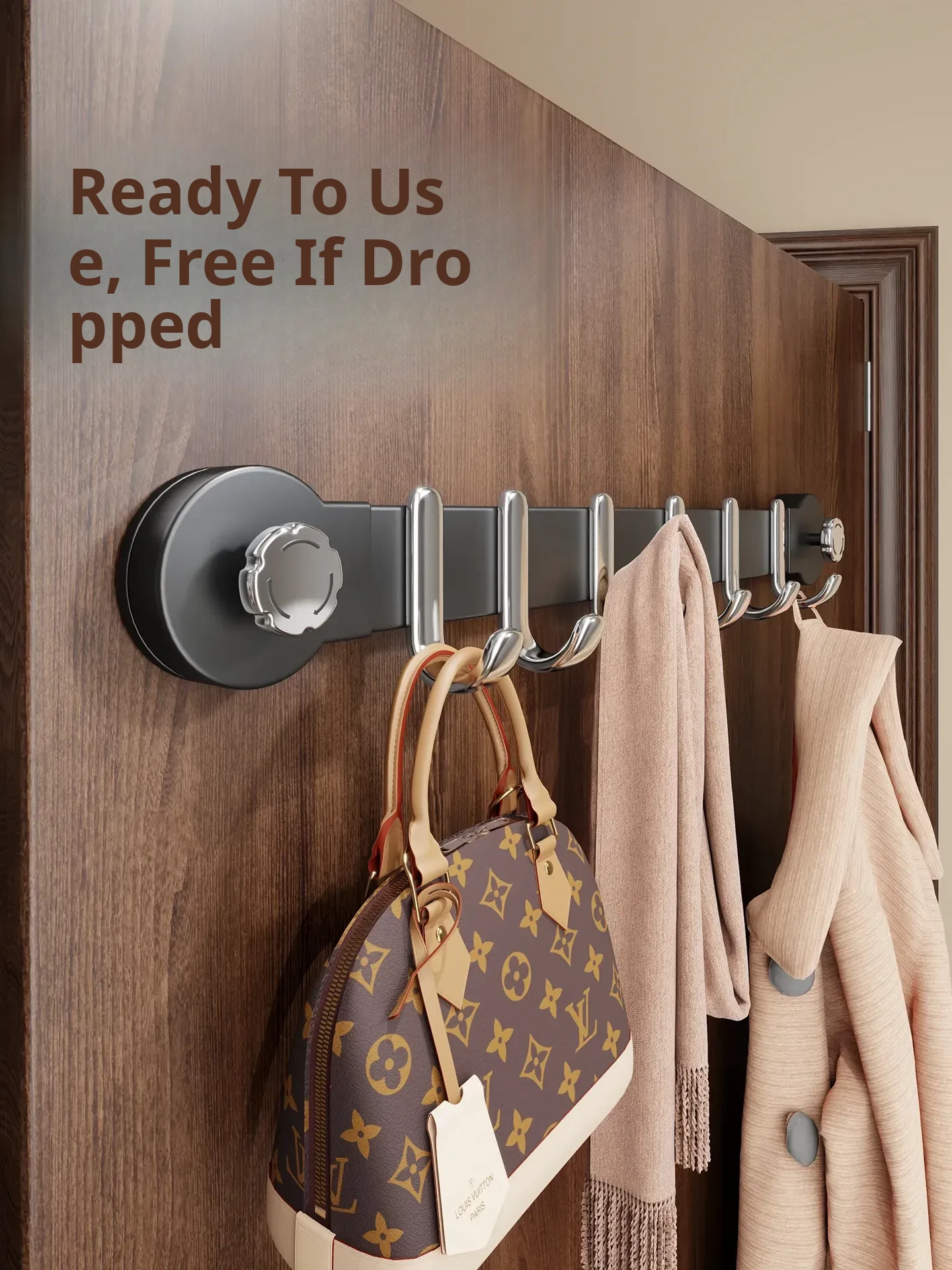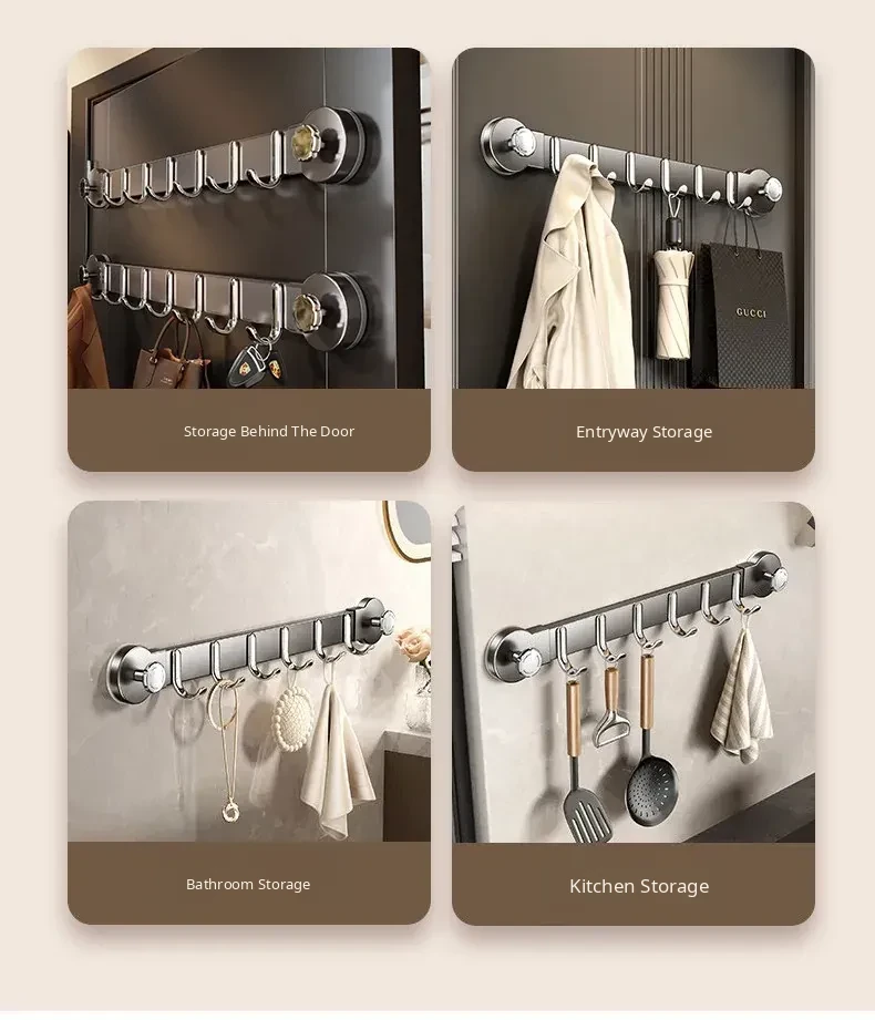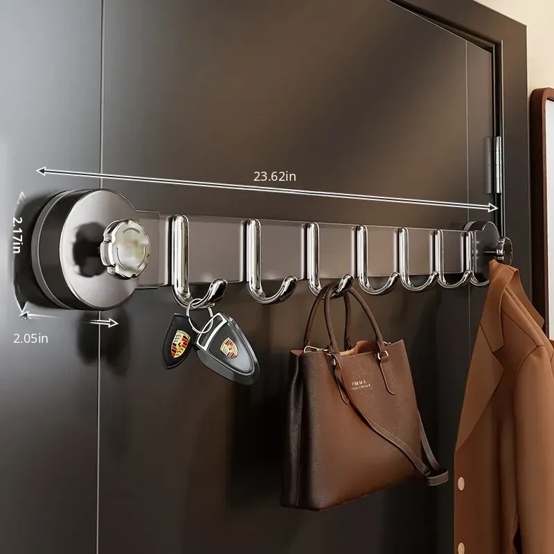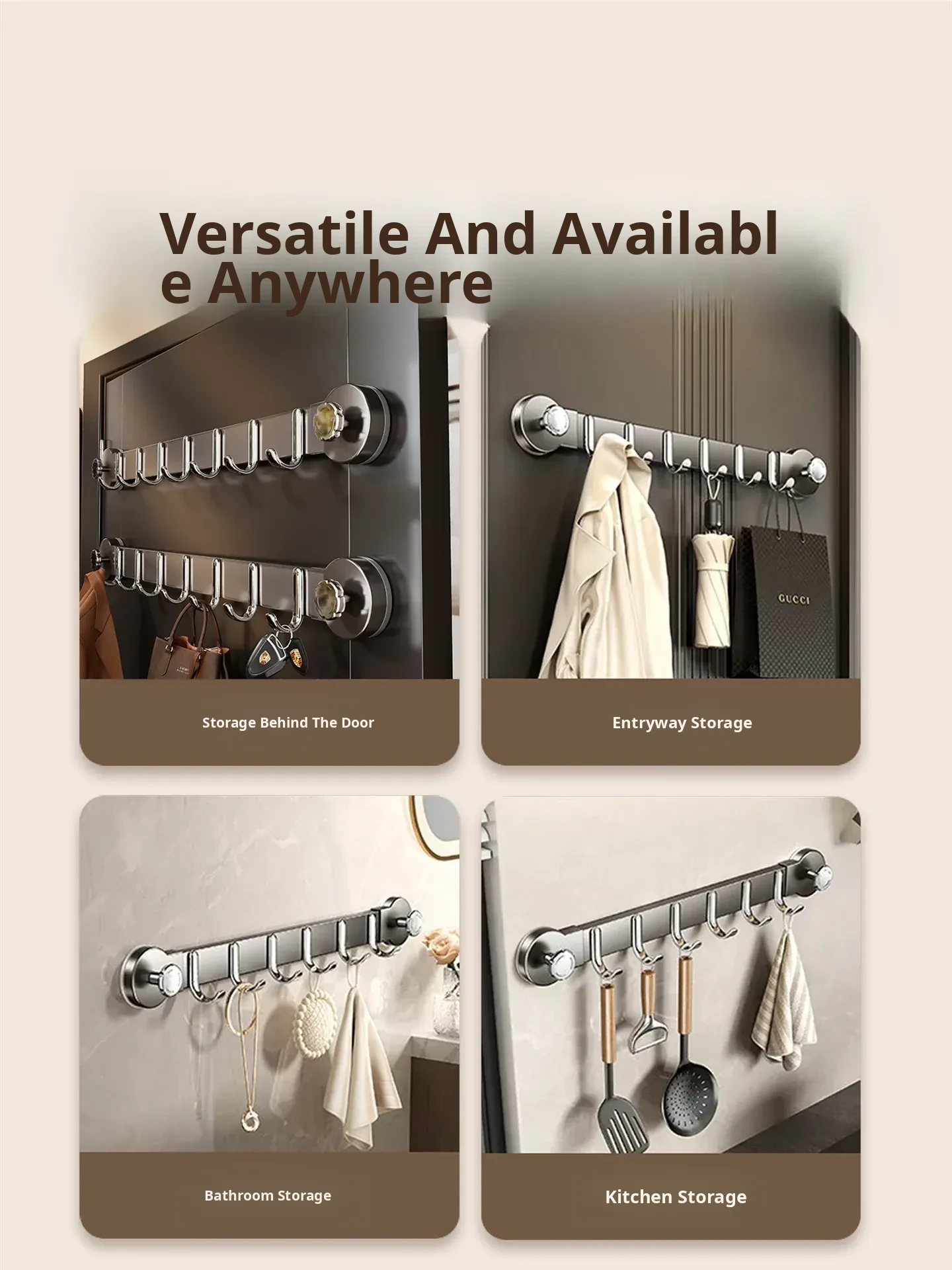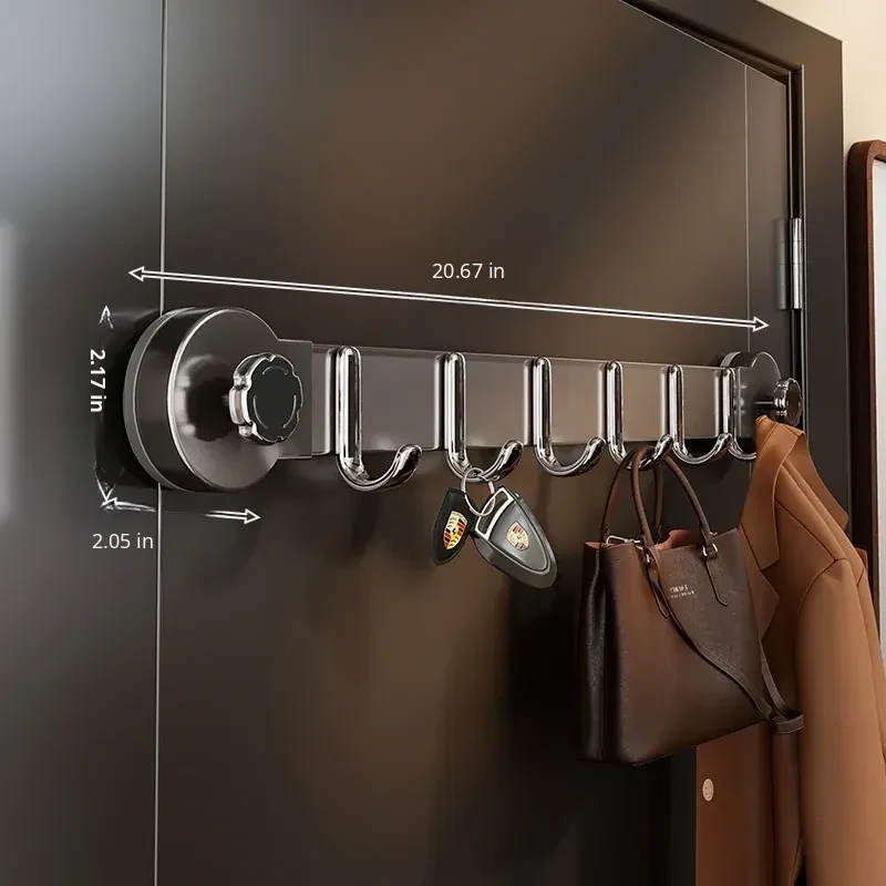 No-Drill Over-Door Hooks - Multi-Functional Wall-Mounted Storage Rack with Suction Cups - 7 Hooks for Home Organization and Coat Hanging