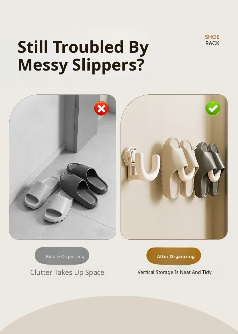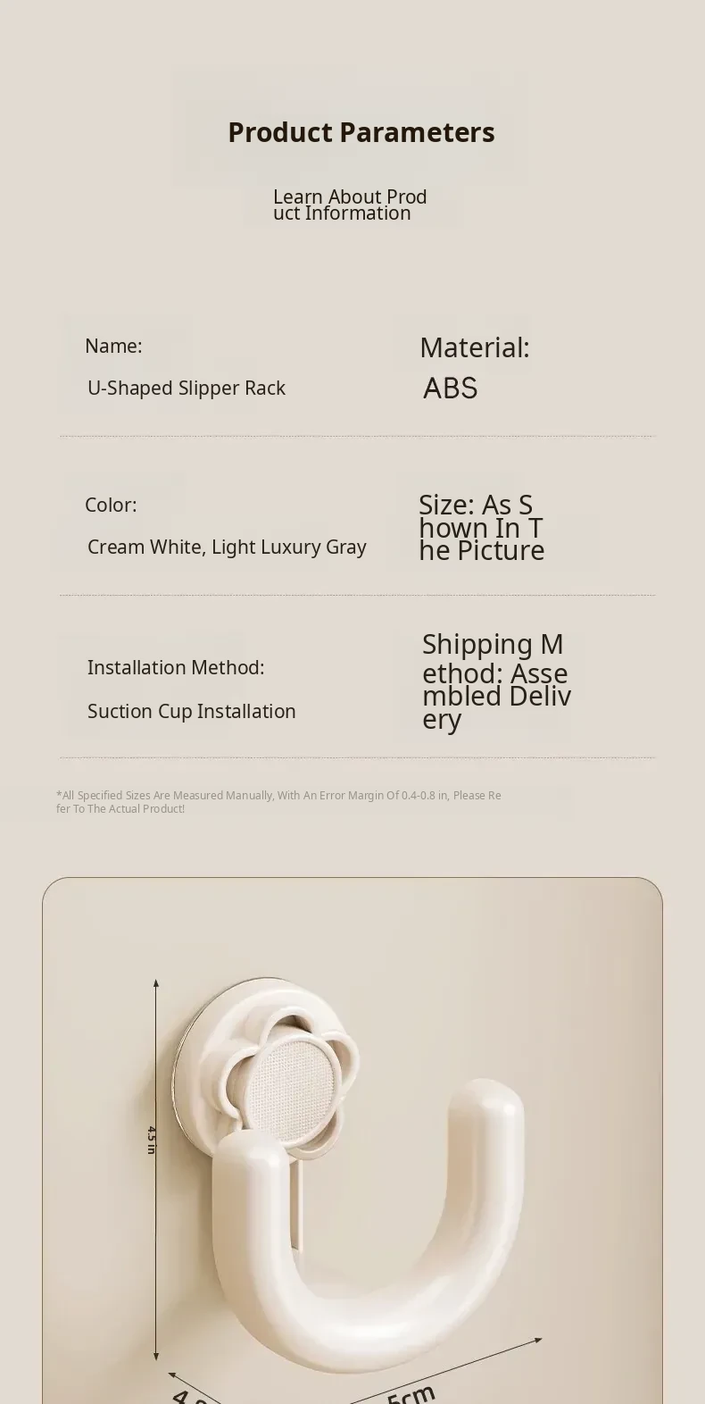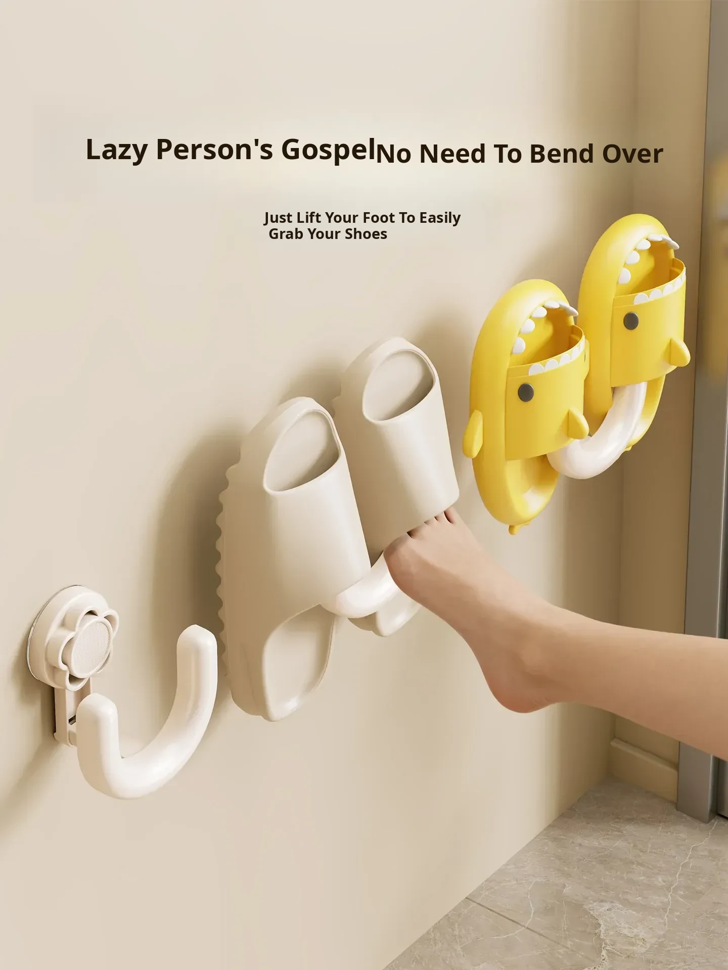 No-Drill Wall-Mounted U-Shaped Bathroom Slipper Rack - Space-Saving Suction Hook Organizer for Toilets and Restrooms, Perfect for Keeping Your Bathroom Neat and Tidy!