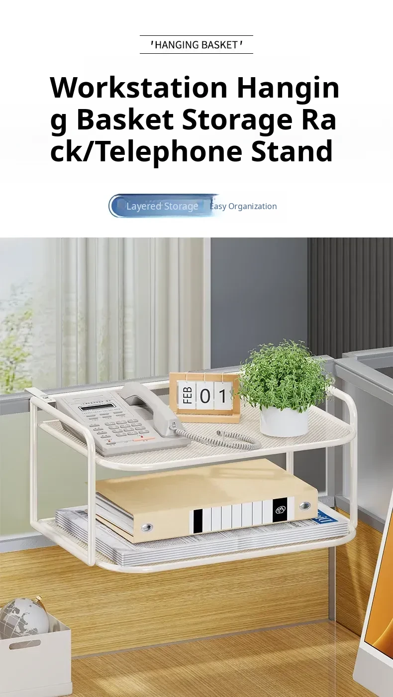 Office Desk Phone Stand - Desktop Organizer for Documents and Supplies, Wall-Mounted Router Storage Box with Privacy Screen - Perfect for a Clutter-Free Workspace