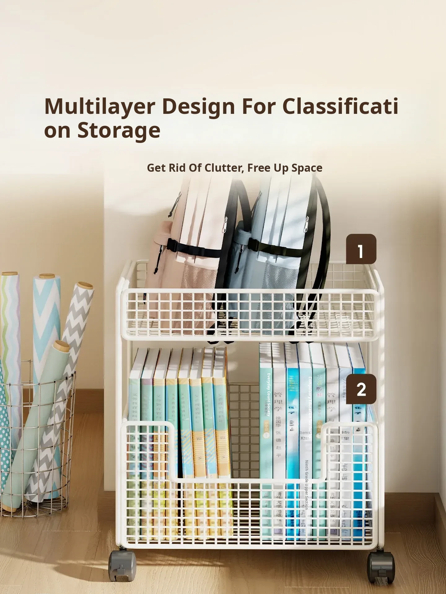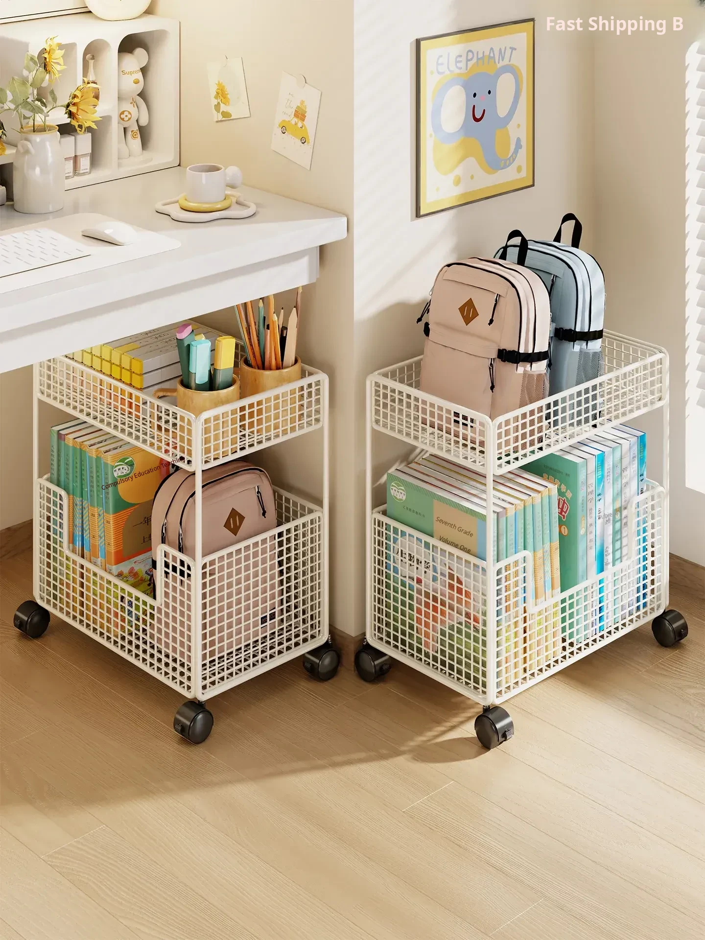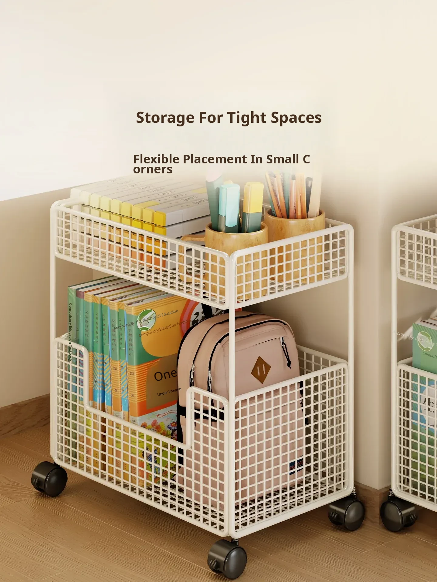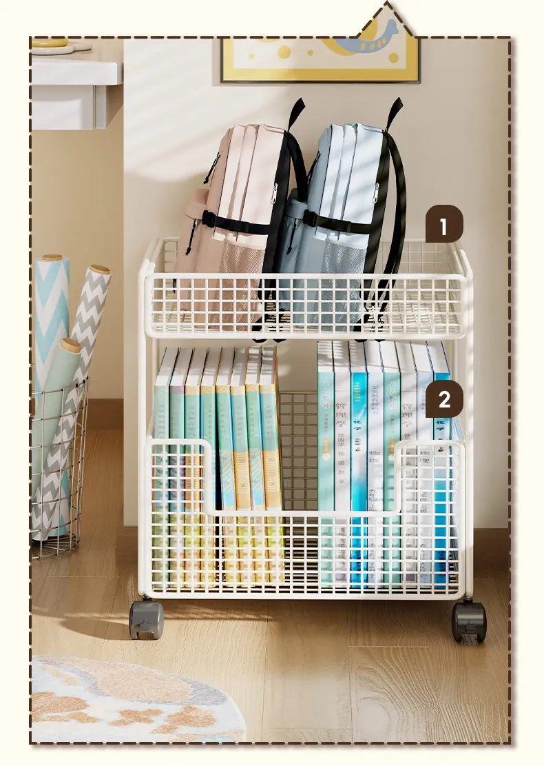 Portable Book Bag Storage Rack - Mobile Cart for Organizing Books Under Desk with Wheels - Perfect Home Solution for Keeping Your Backpack Neat and Tidy!