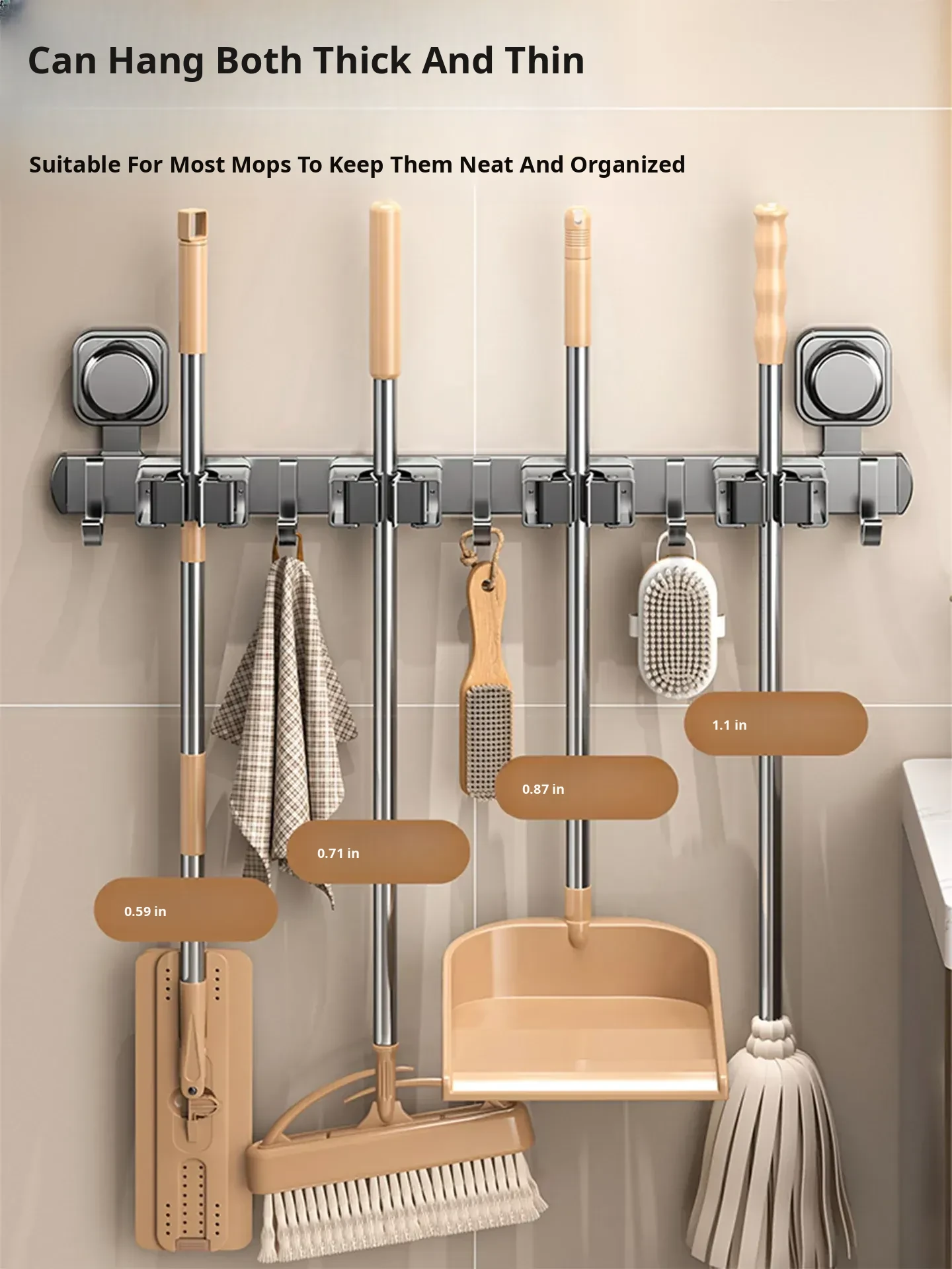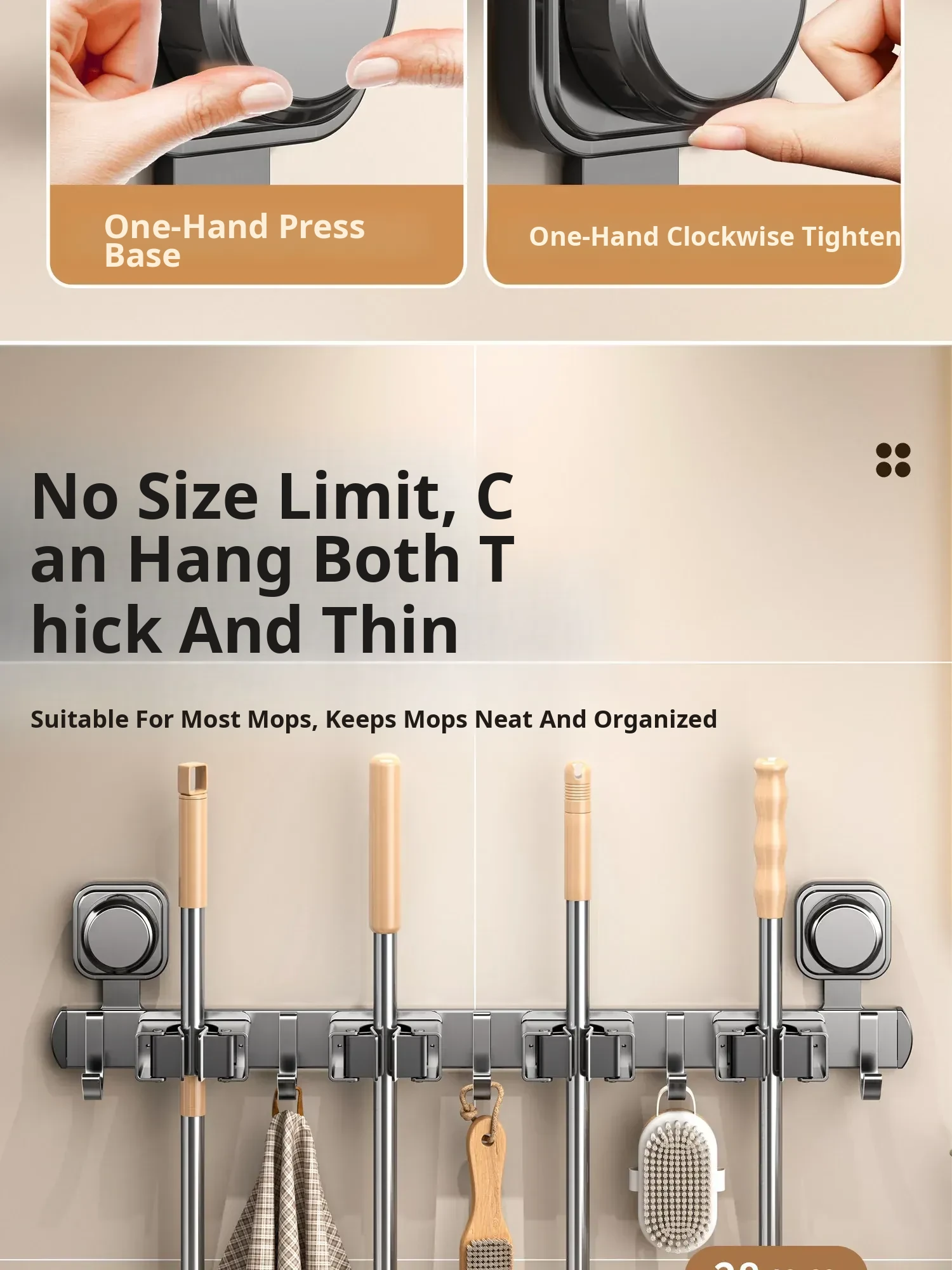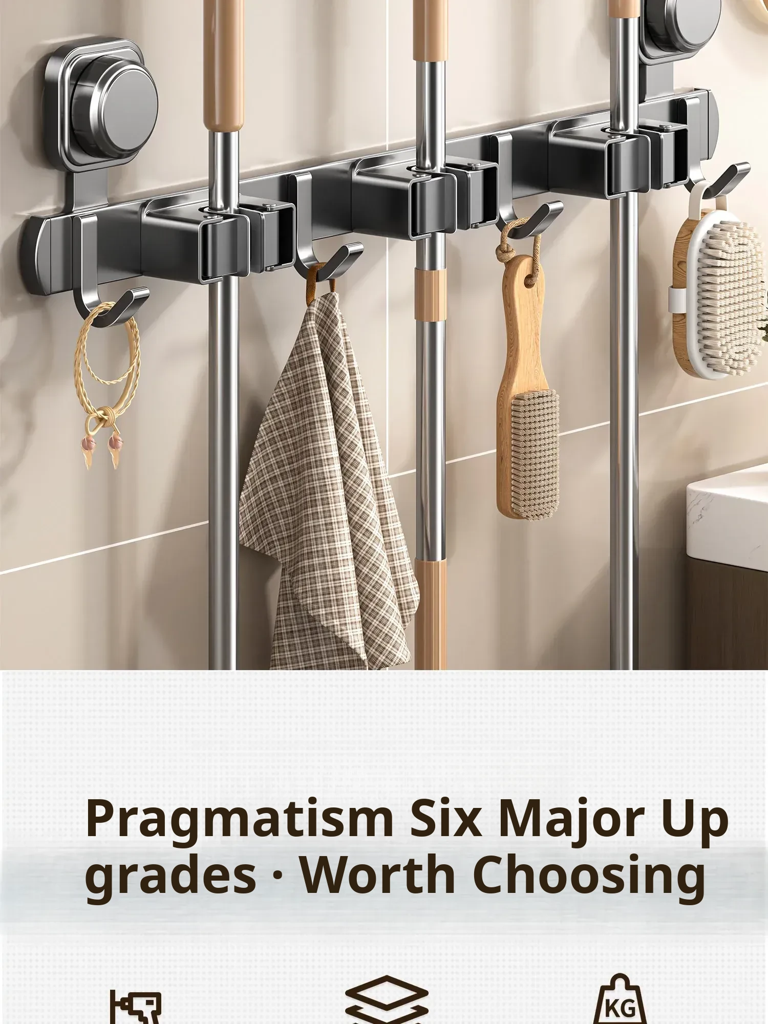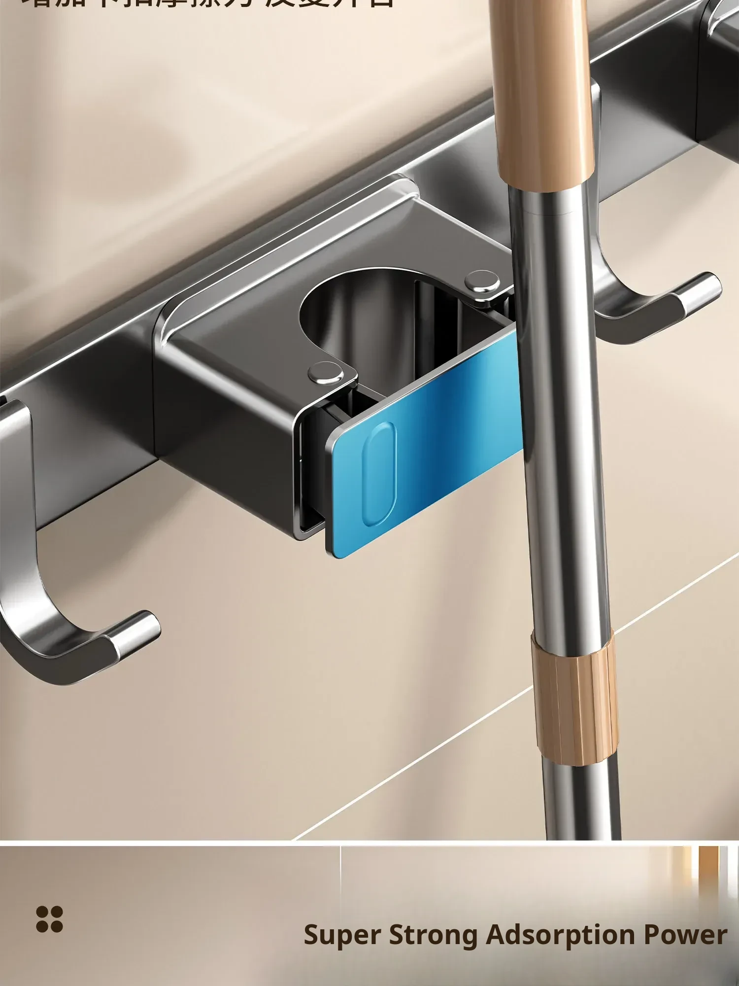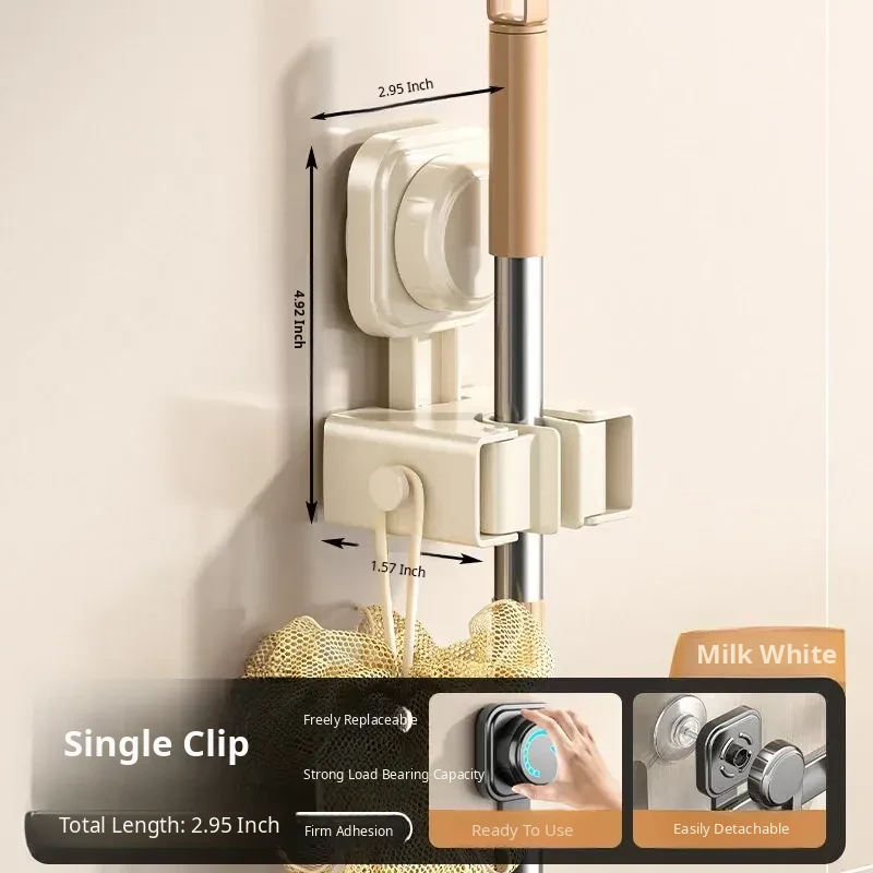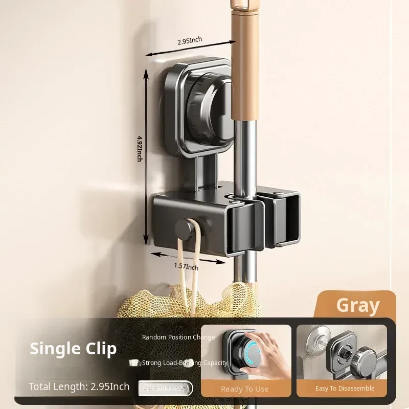 Powerful Suction Mop Wall-Mounted Holder - No Drill Storage Rack for Brooms and Mops, Perfect for Home Bathrooms and Kitchens, Easy Organization and Space-Saving Solution