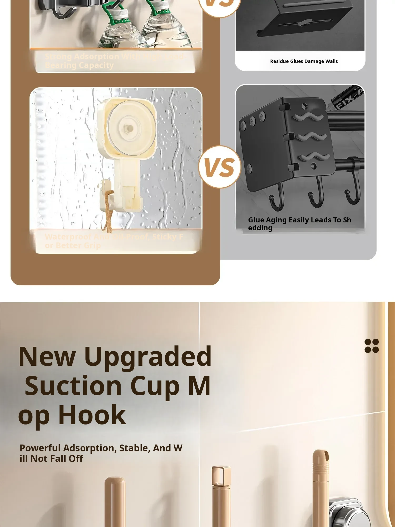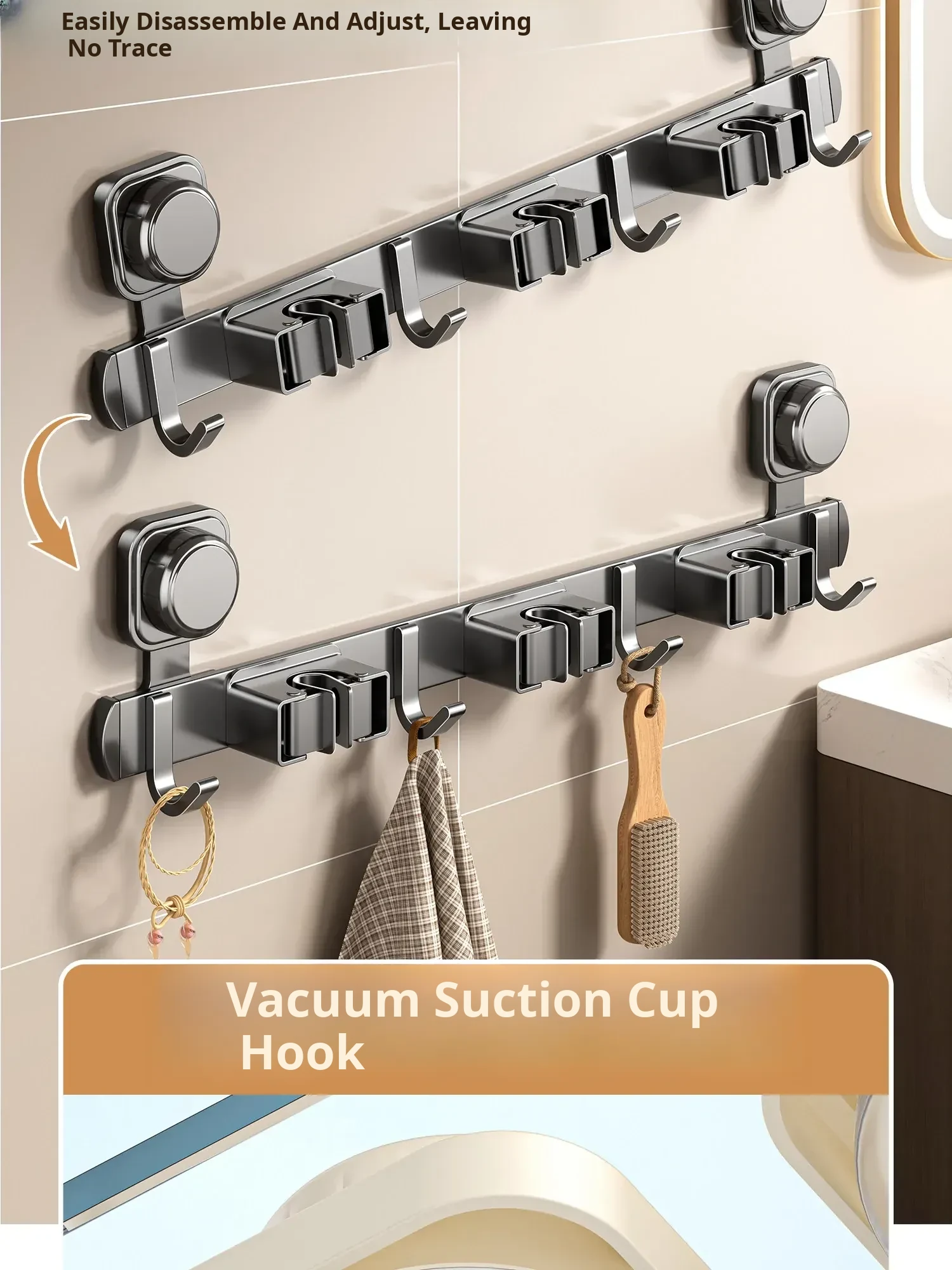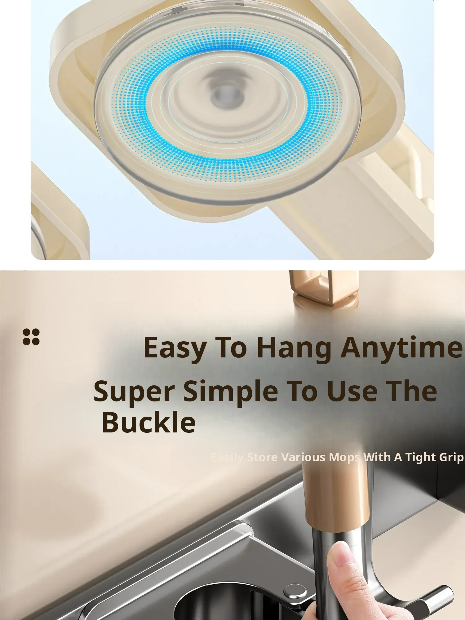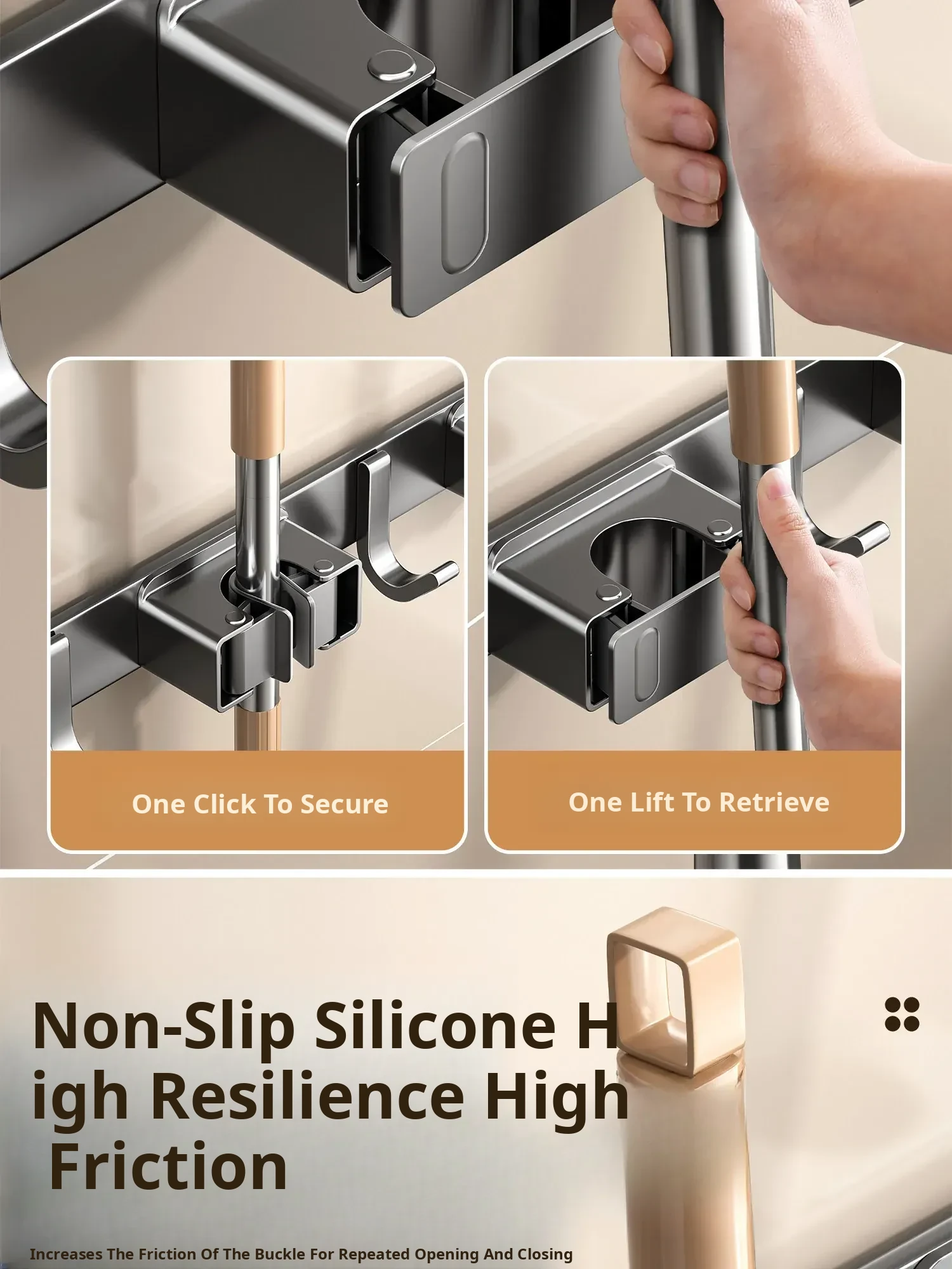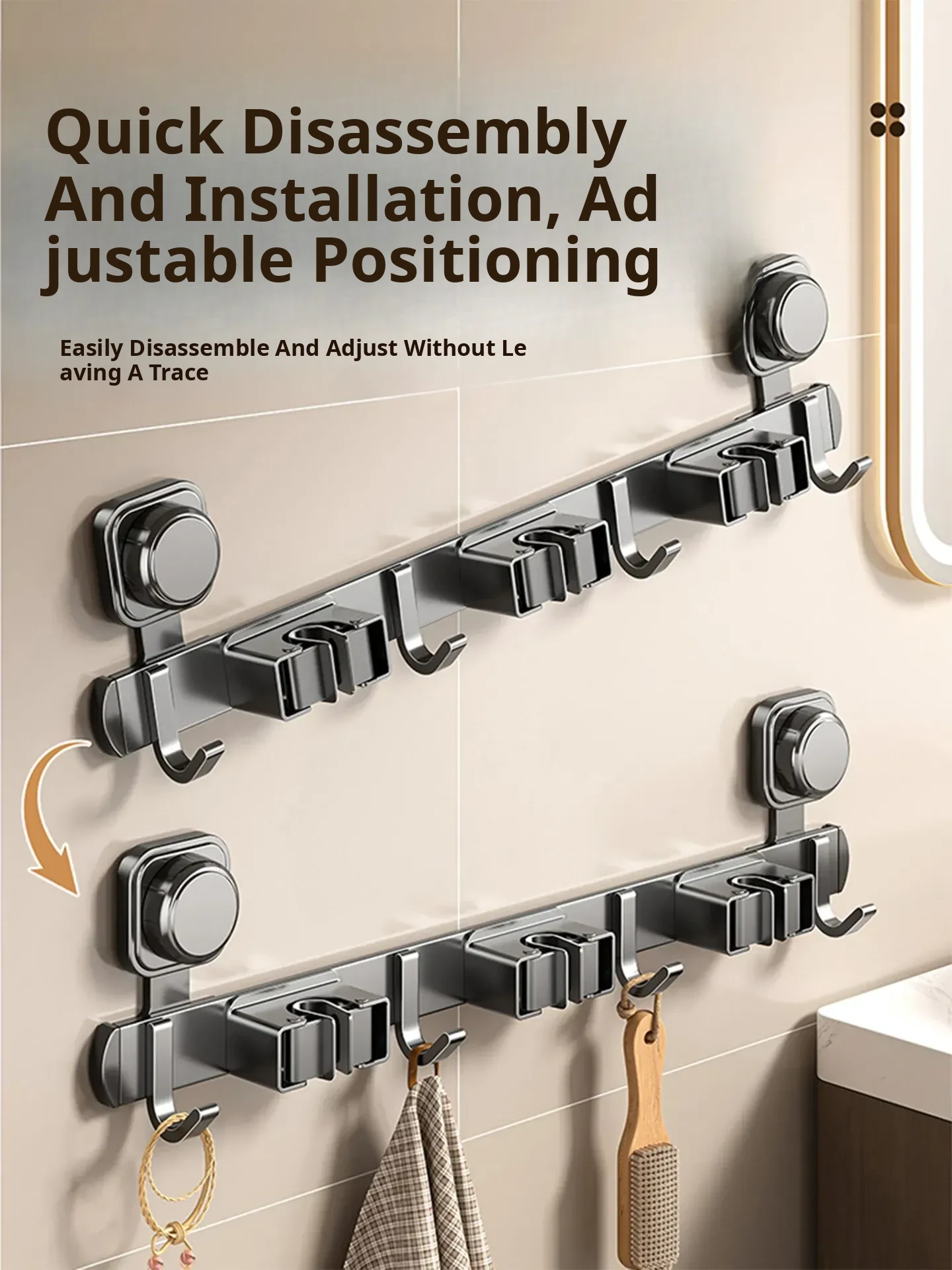 Powerful Suction Mop Wall-Mounted Holder - No Drill Storage Rack for Brooms and Mops, Perfect for Home Bathrooms and Kitchens, Easy Organization and Space-Saving Solution