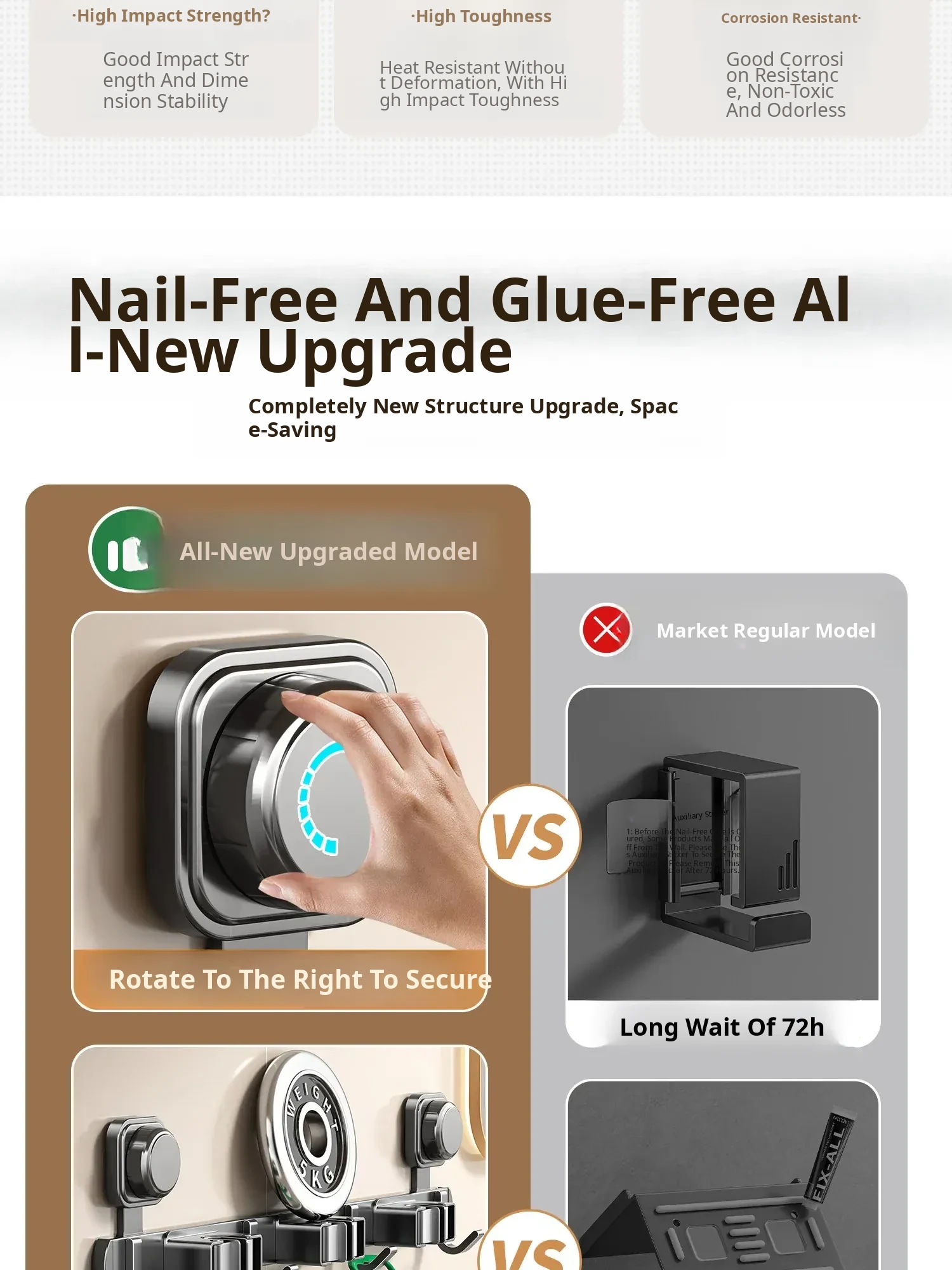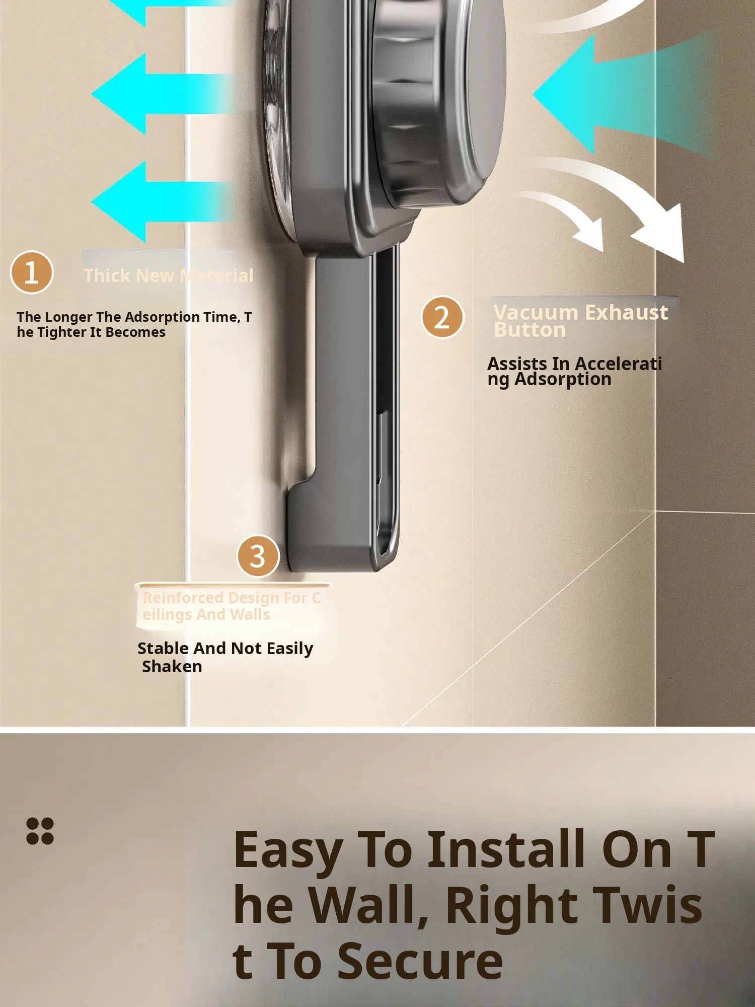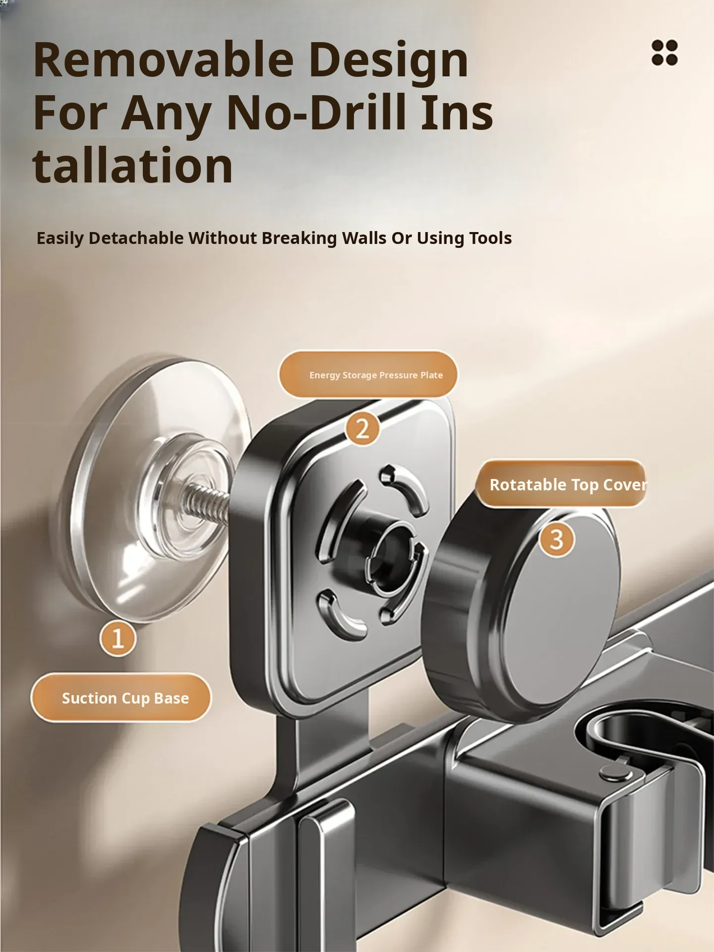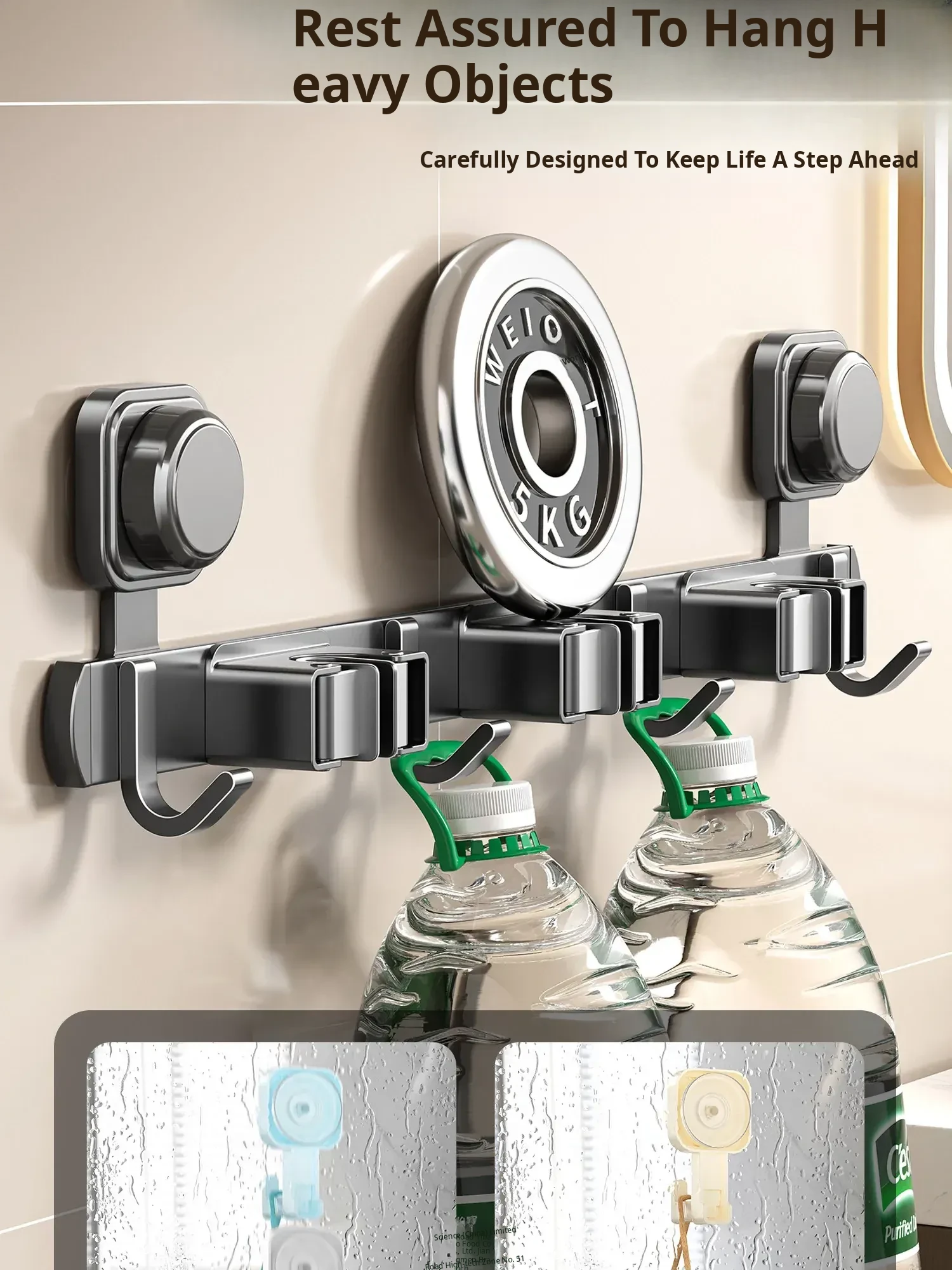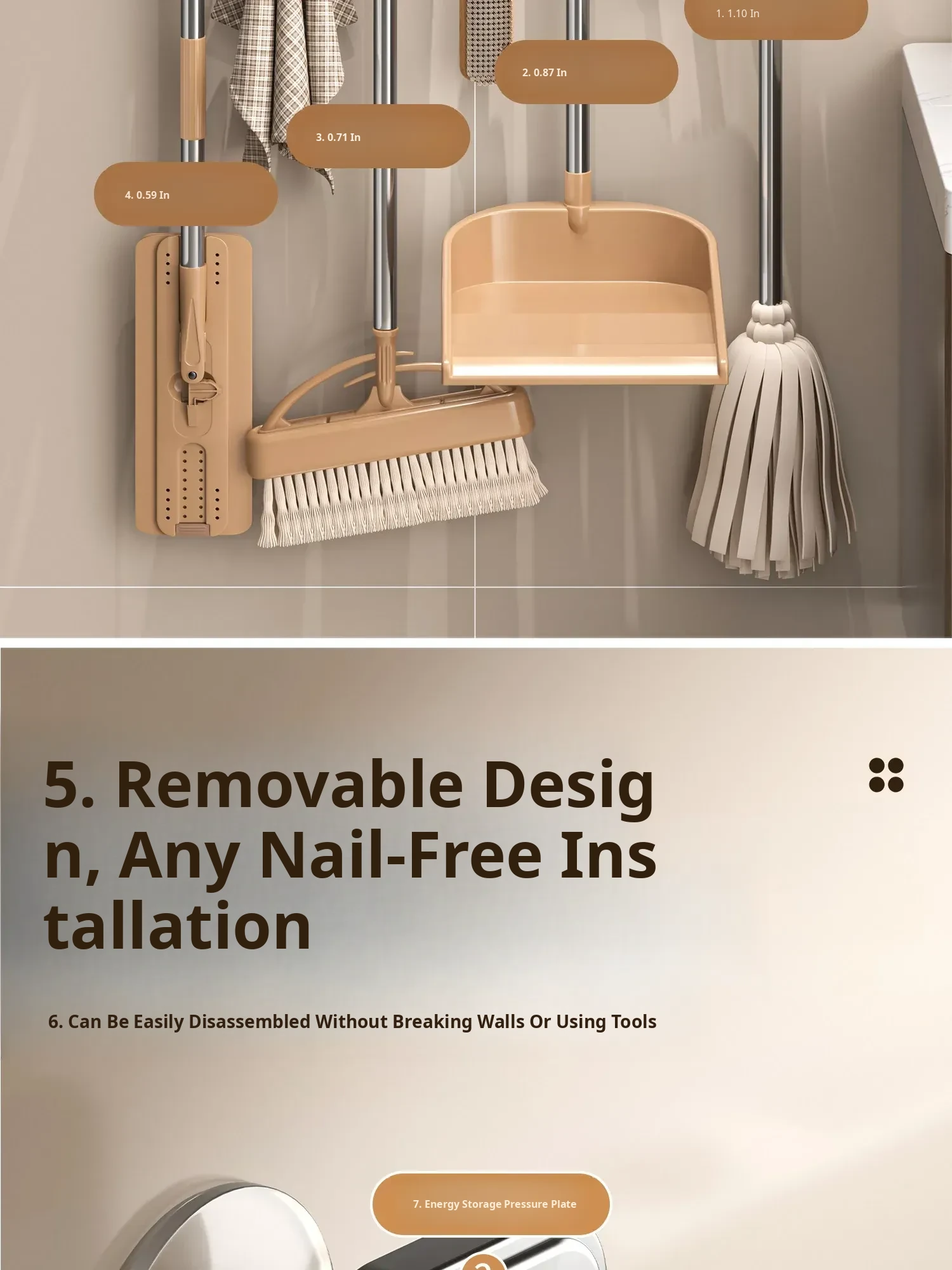 Powerful Suction Mop Wall-Mounted Holder - No Drill Storage Rack for Brooms and Mops, Perfect for Home Bathrooms and Kitchens, Easy Organization and Space-Saving Solution