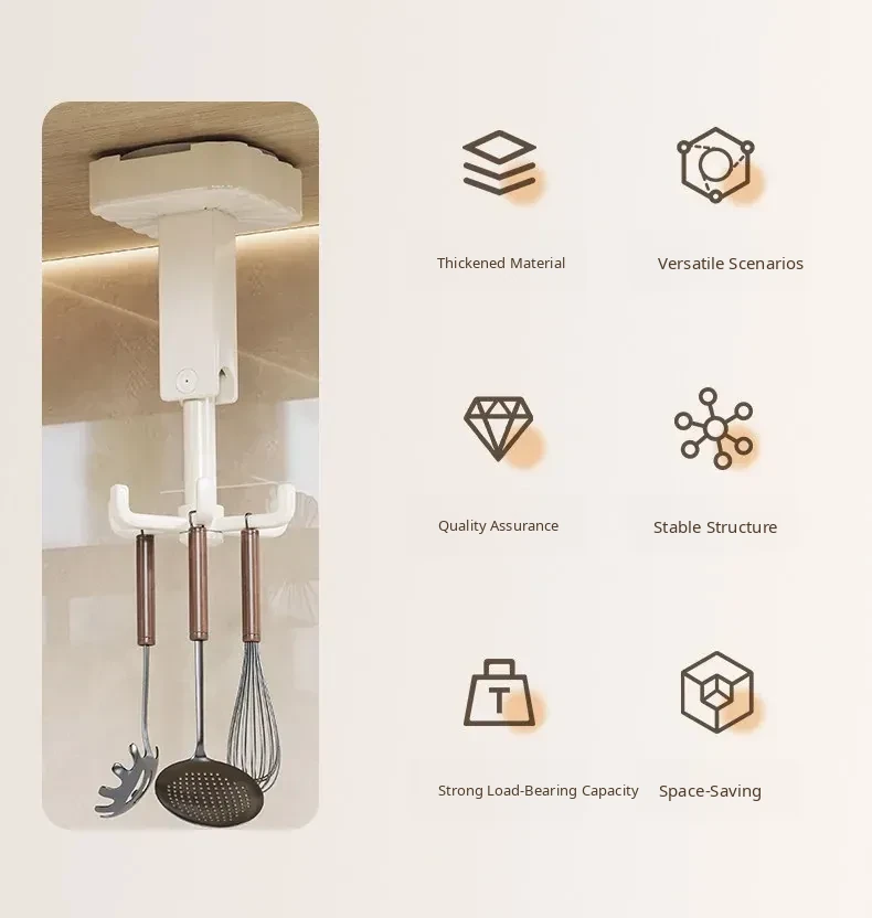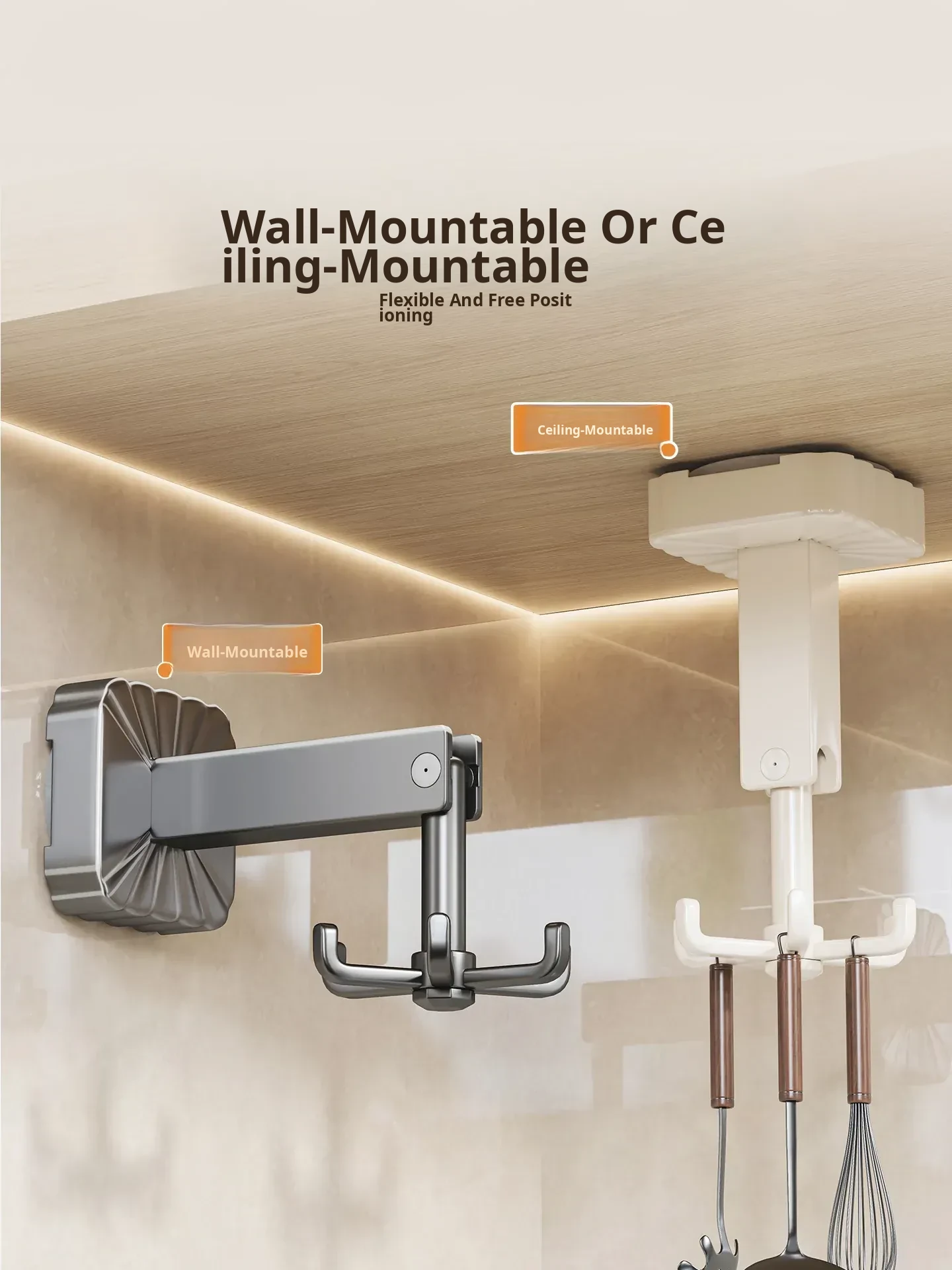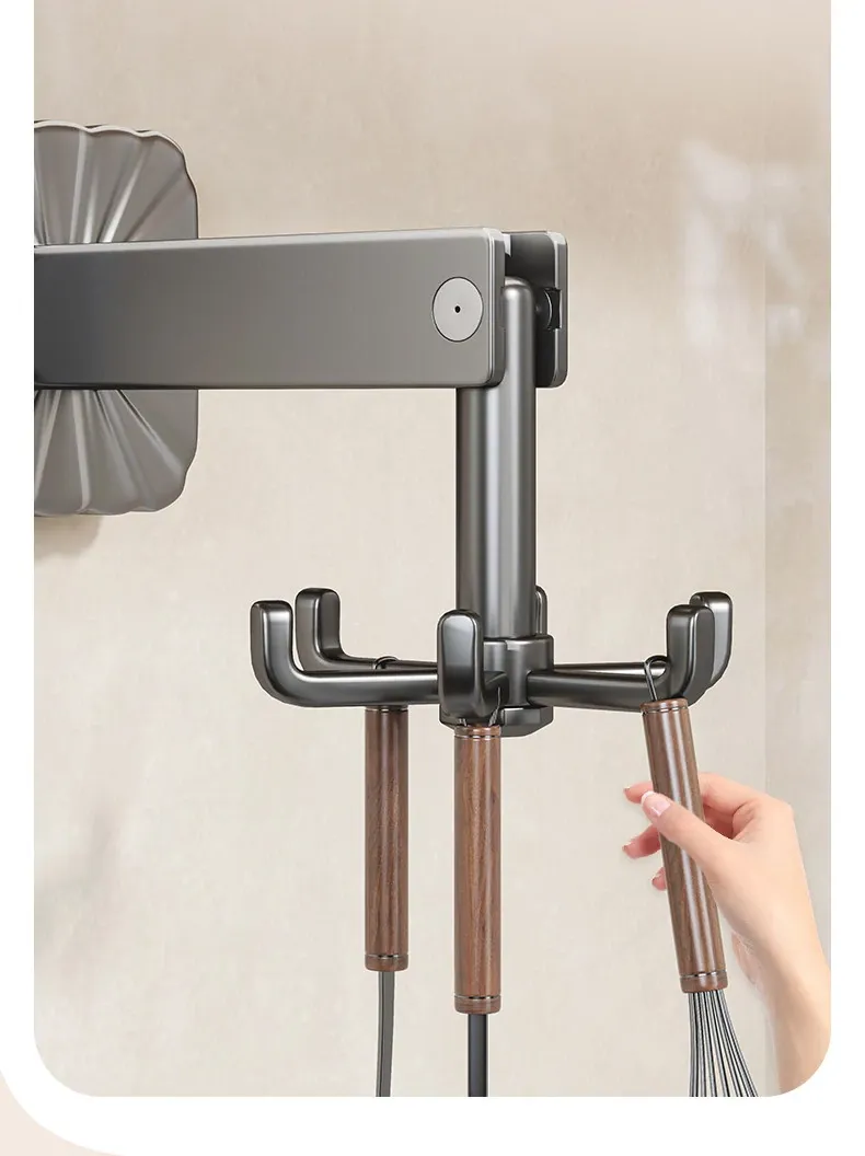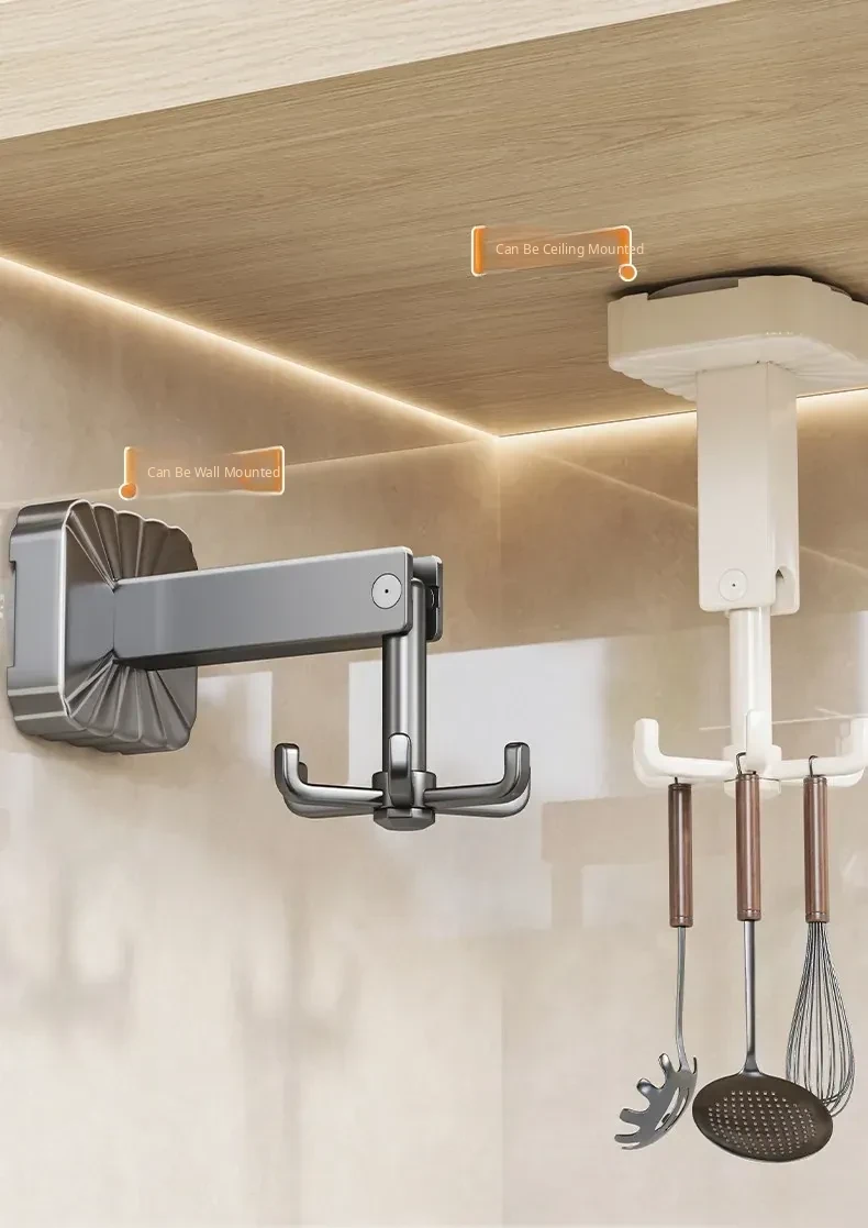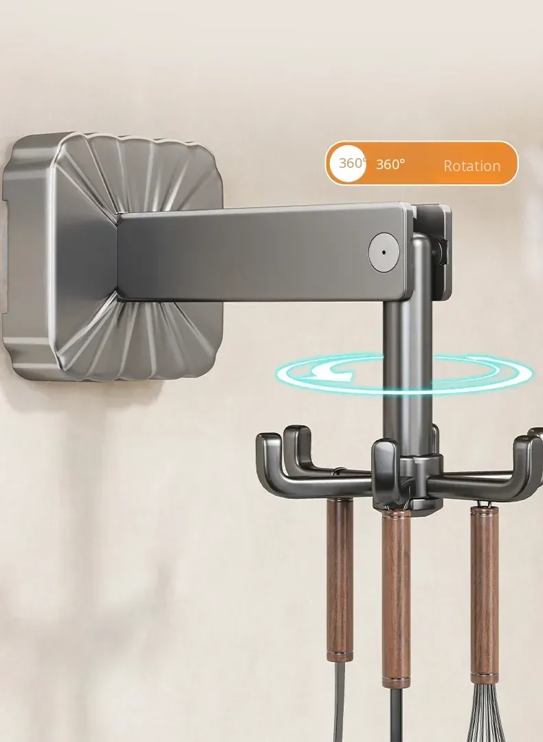 Rotating Suction Hook Wall-Mounted Kitchen Storage Rack - No Drill Organizer for Ladles and Spatulas, Ideal for Space-Saving and Easy Access!