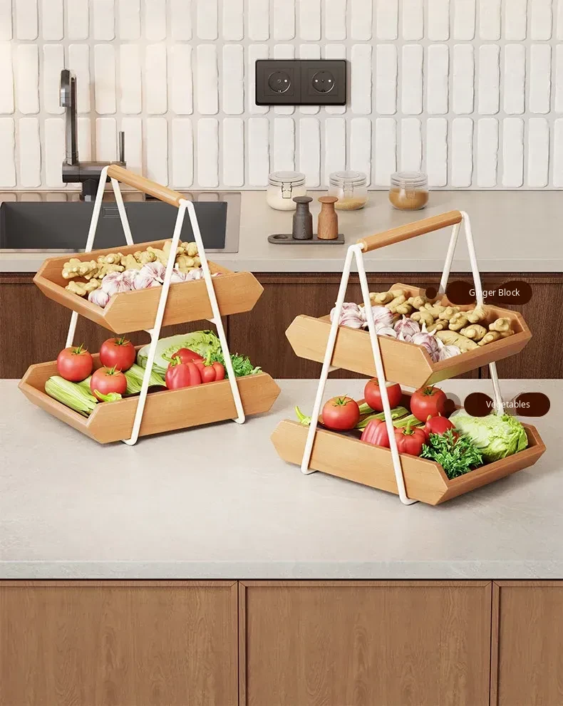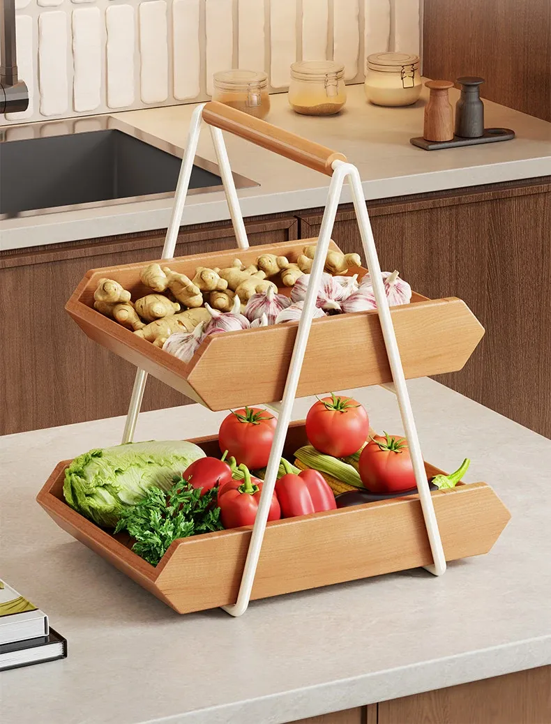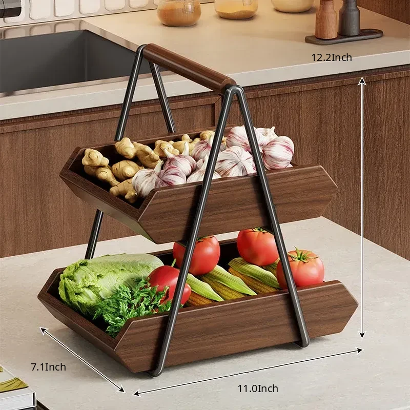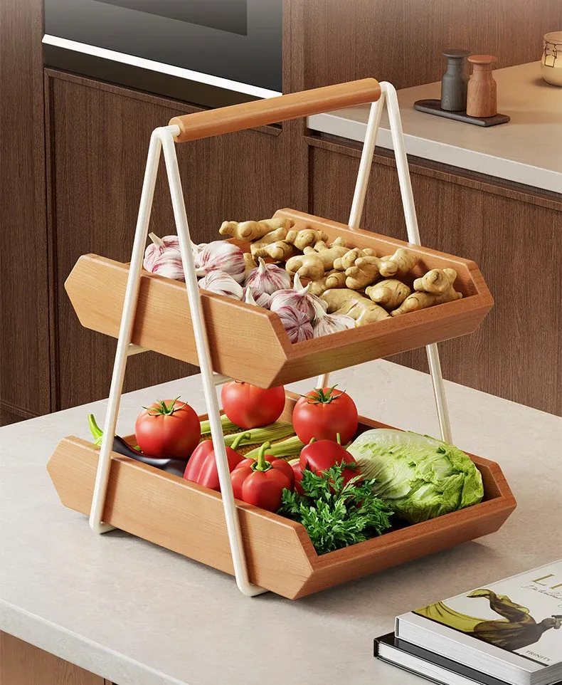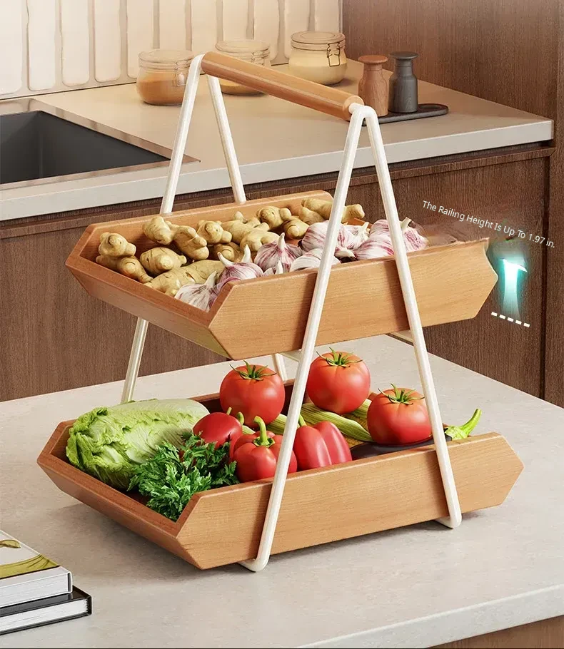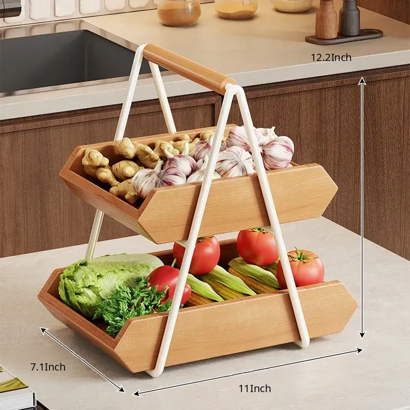 Solid Wood Kitchen Vegetable Rack - Versatile Storage for Ginger, Garlic, Fruits, and More! Perfect for Home, Living Room, Dining Table, Cup, Snacks, and Key Organizer. Stylish and Functional Solution for Your Space!