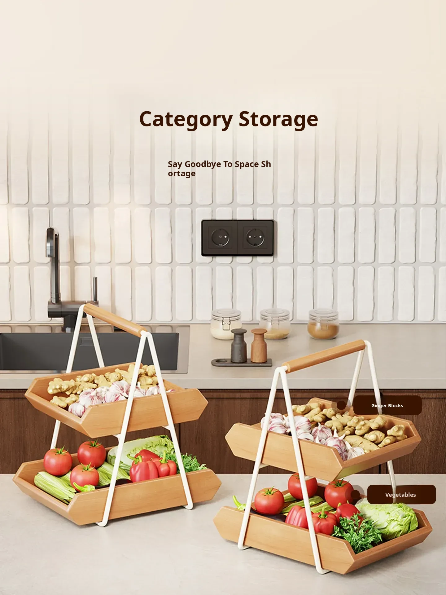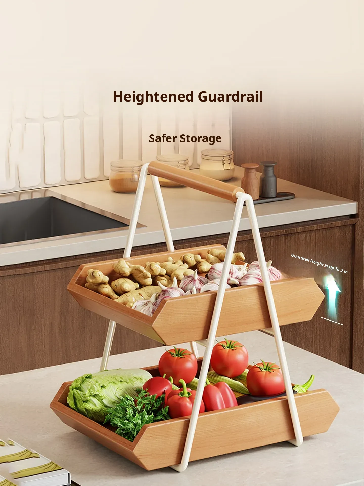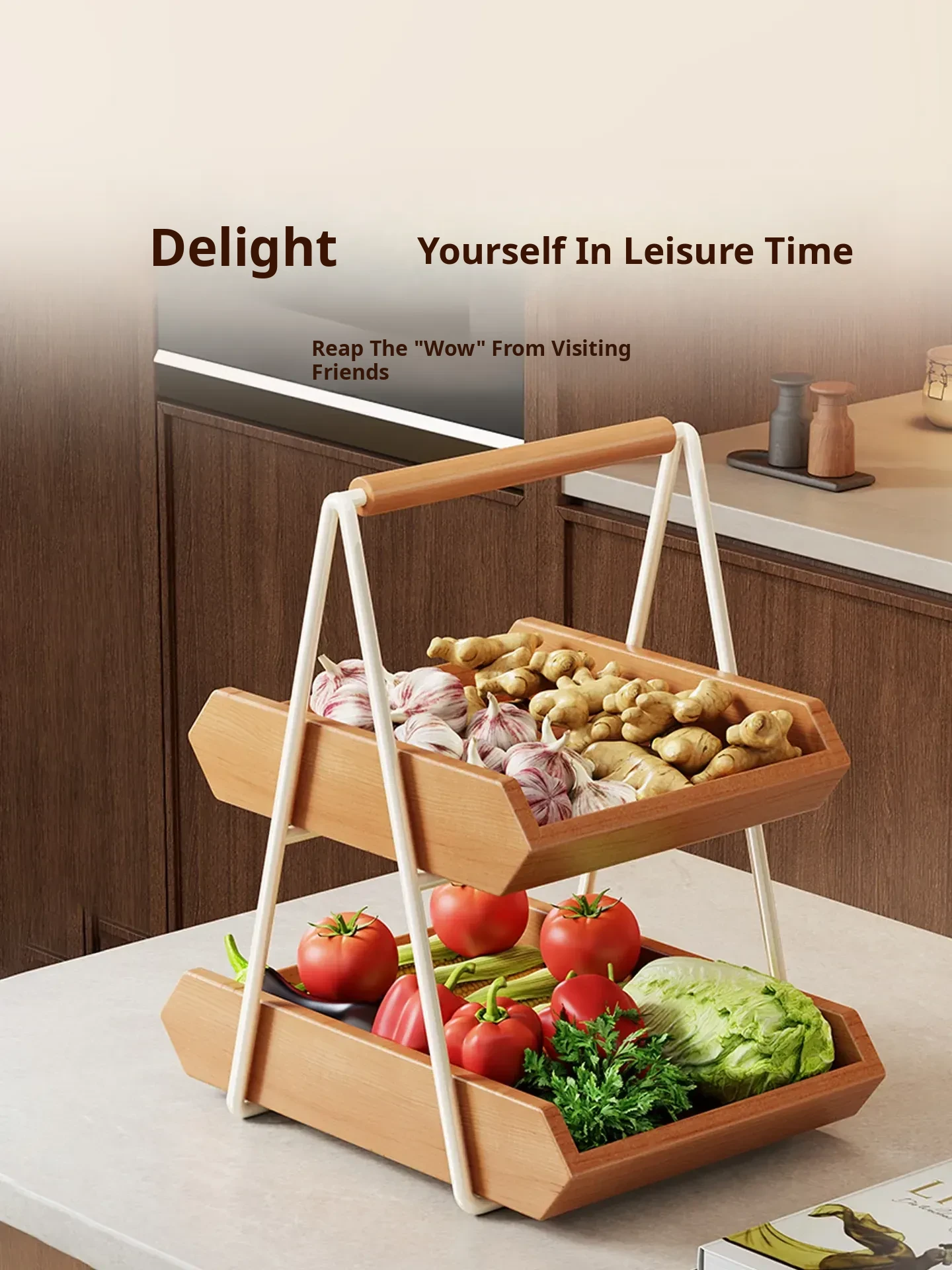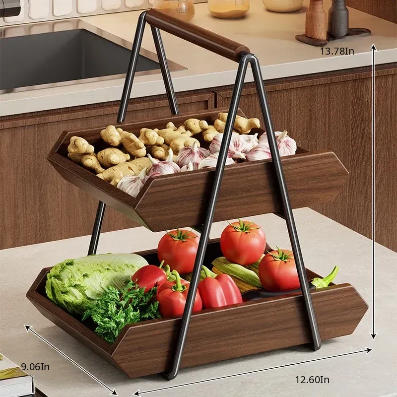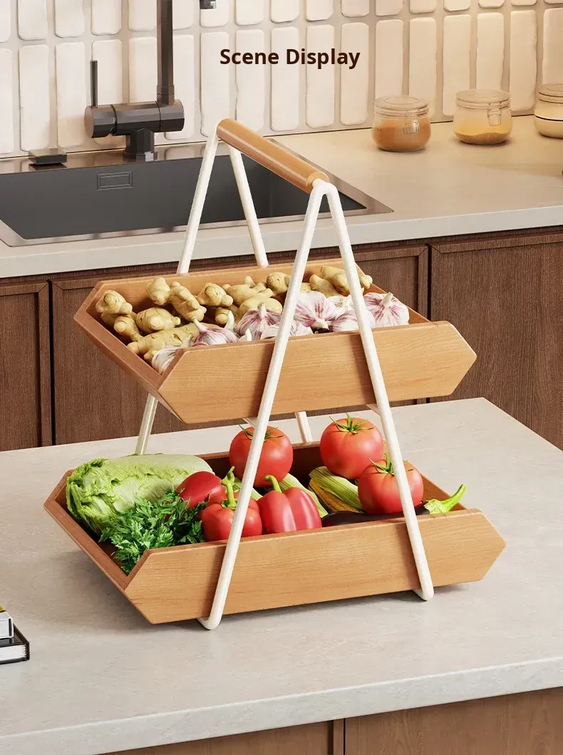 Solid Wood Kitchen Vegetable Rack - Versatile Storage for Ginger, Garlic, Fruits, and More! Perfect for Home, Living Room, Dining Table, Cup, Snacks, and Key Organizer. Stylish and Functional Solution for Your Space!