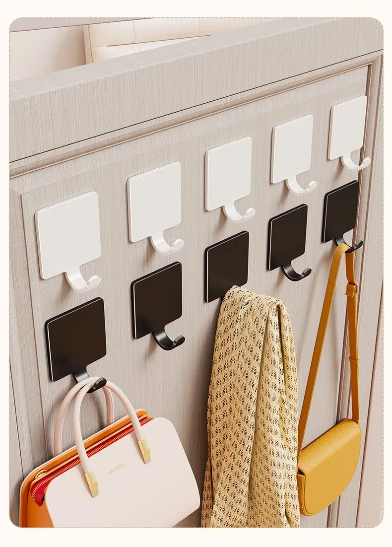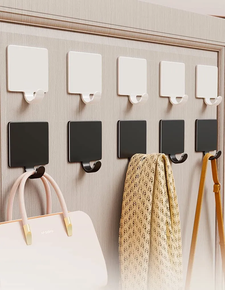 Strong Adhesive No-Drill Towel Hooks for Bathroom and Kitchen - Wall-Mounted Clothes Hangers for Easy Organization Behind Doors and on Walls