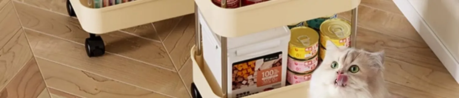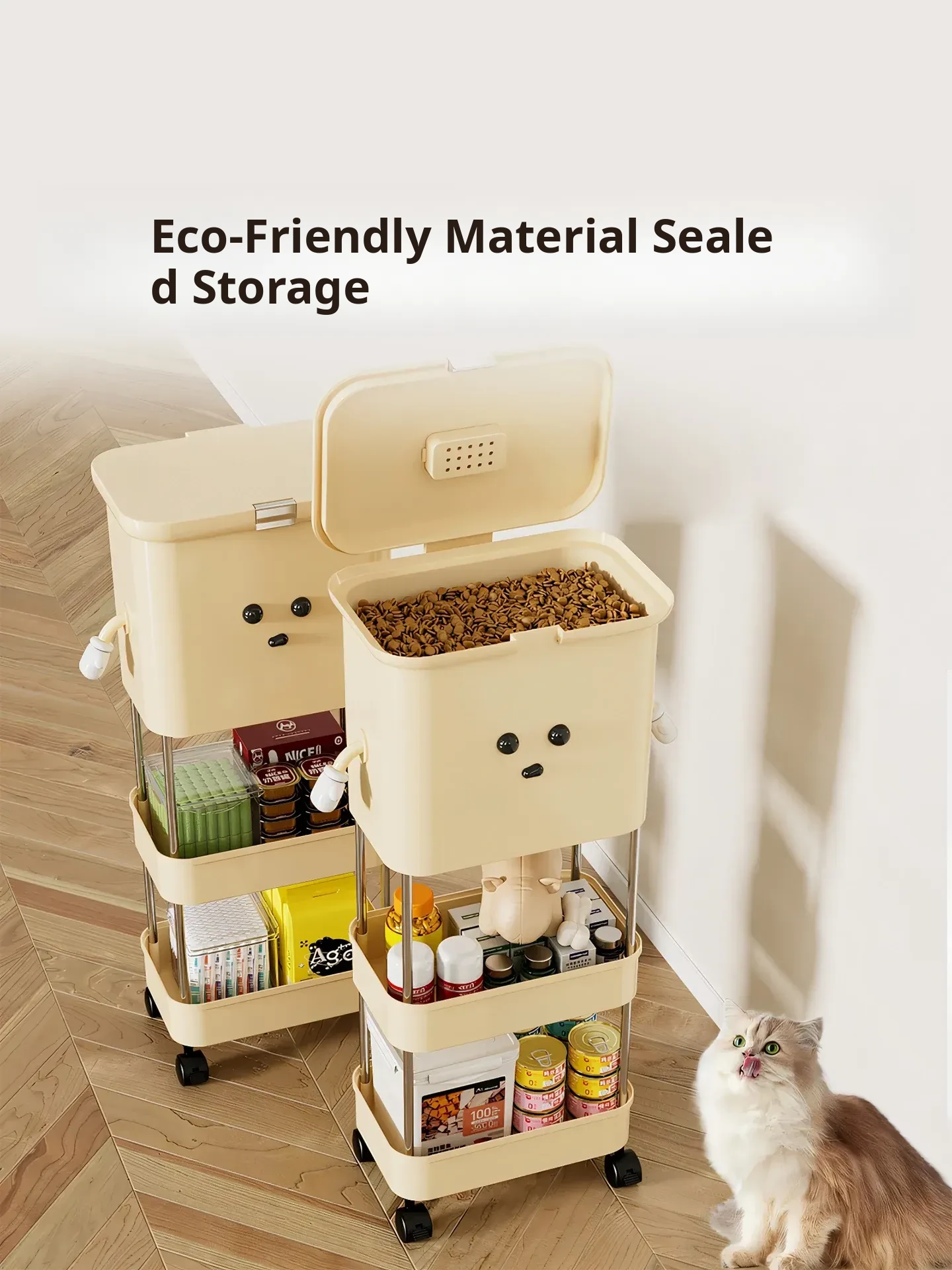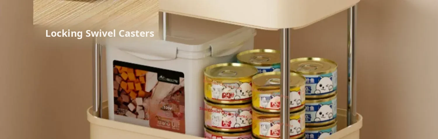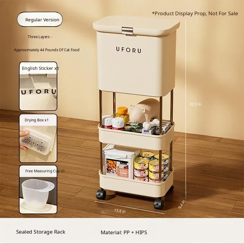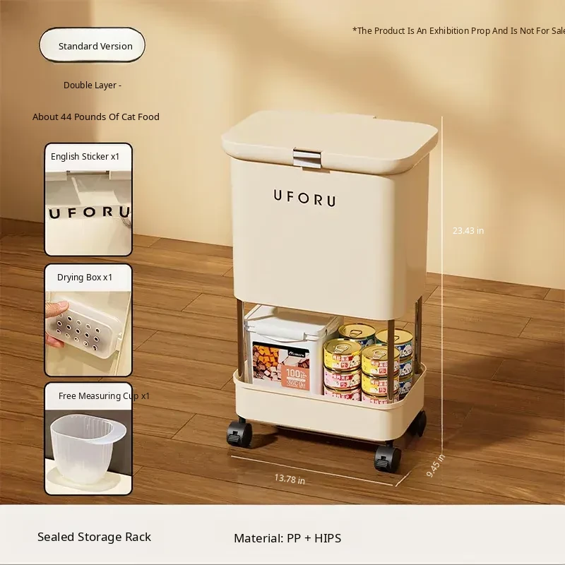 Upgraded Two-Tier Food Storage Container, Cream White [with Lockable Universal Wheels, Storage Space Below]