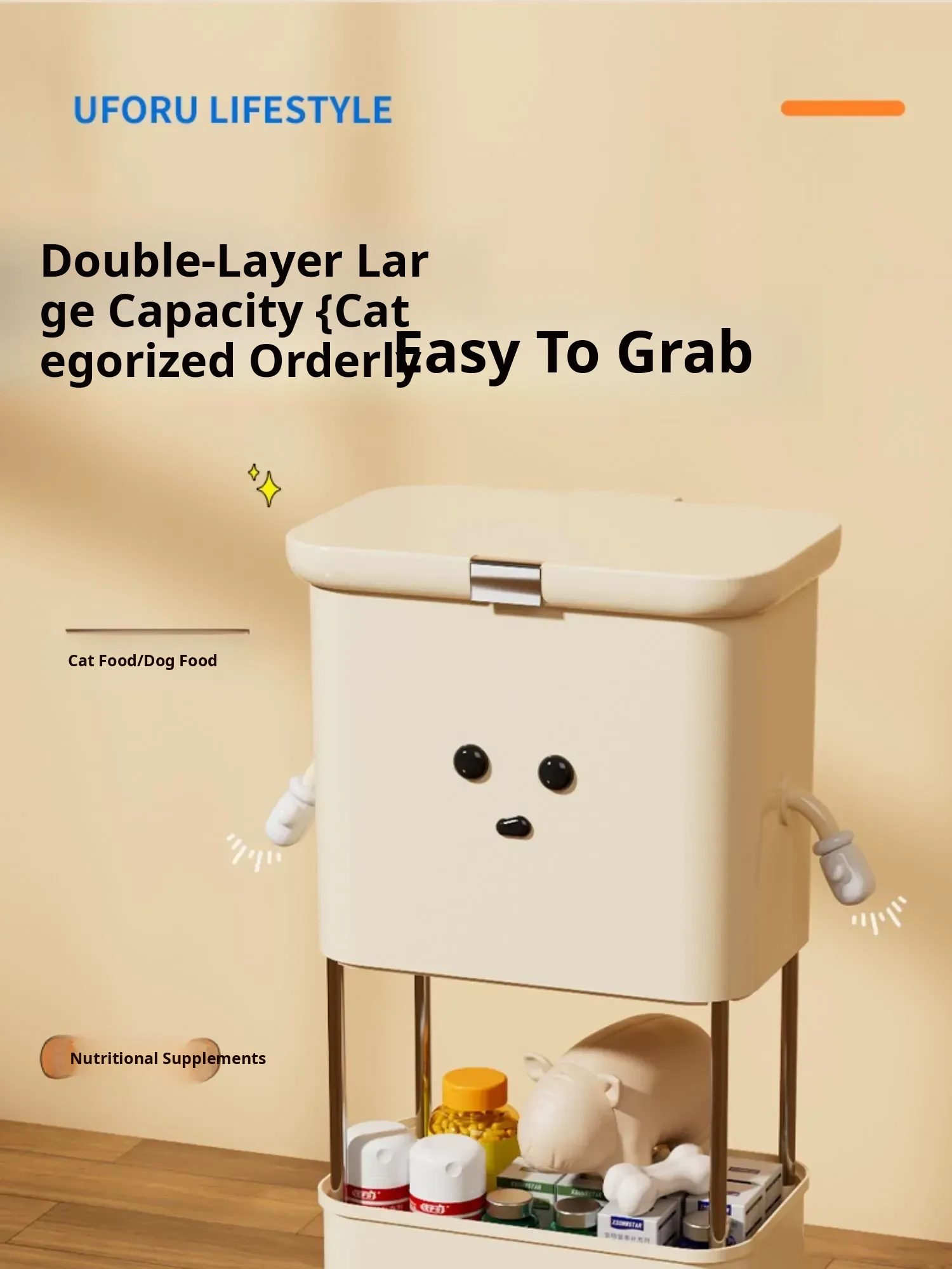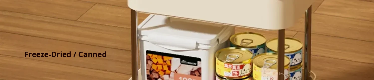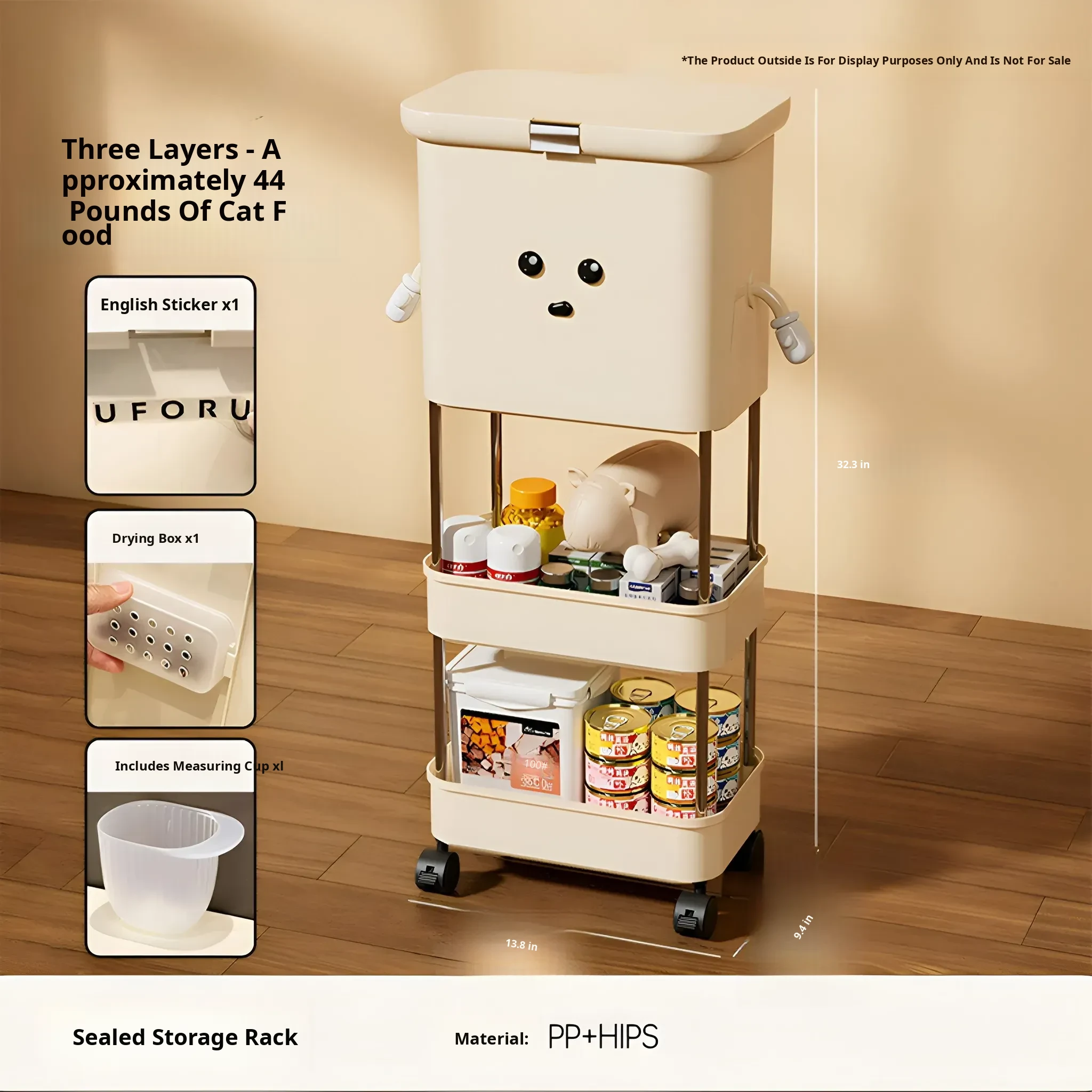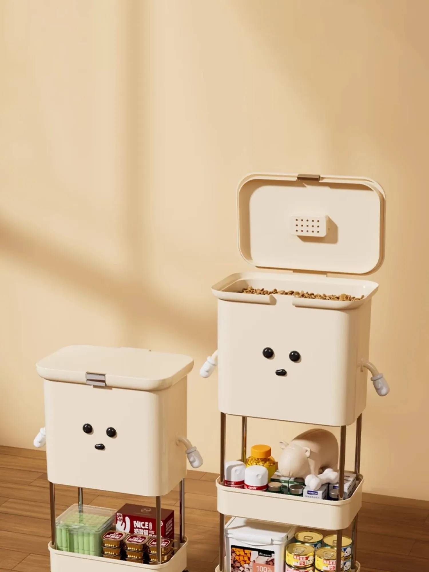 Upgraded Two-Tier Food Storage Container, Cream White [with Lockable Universal Wheels, Storage Space Below]