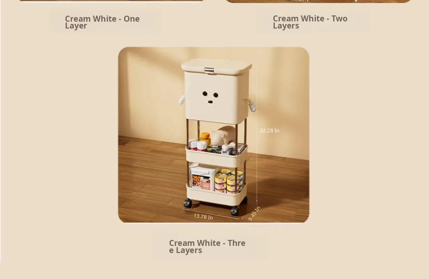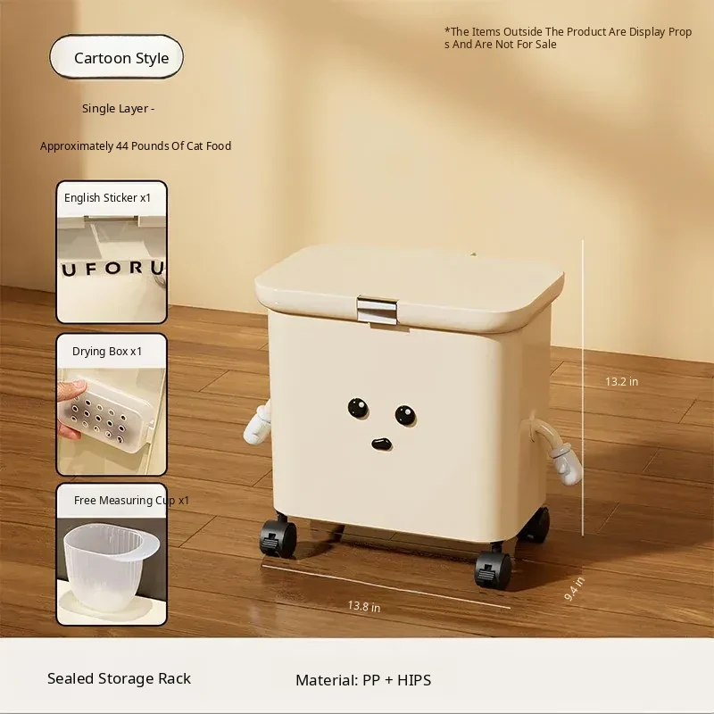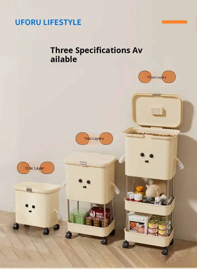 Upgraded Grain Storage - Cream White, Single Tier [with Lockable Universal Wheels, Storage Space Below]